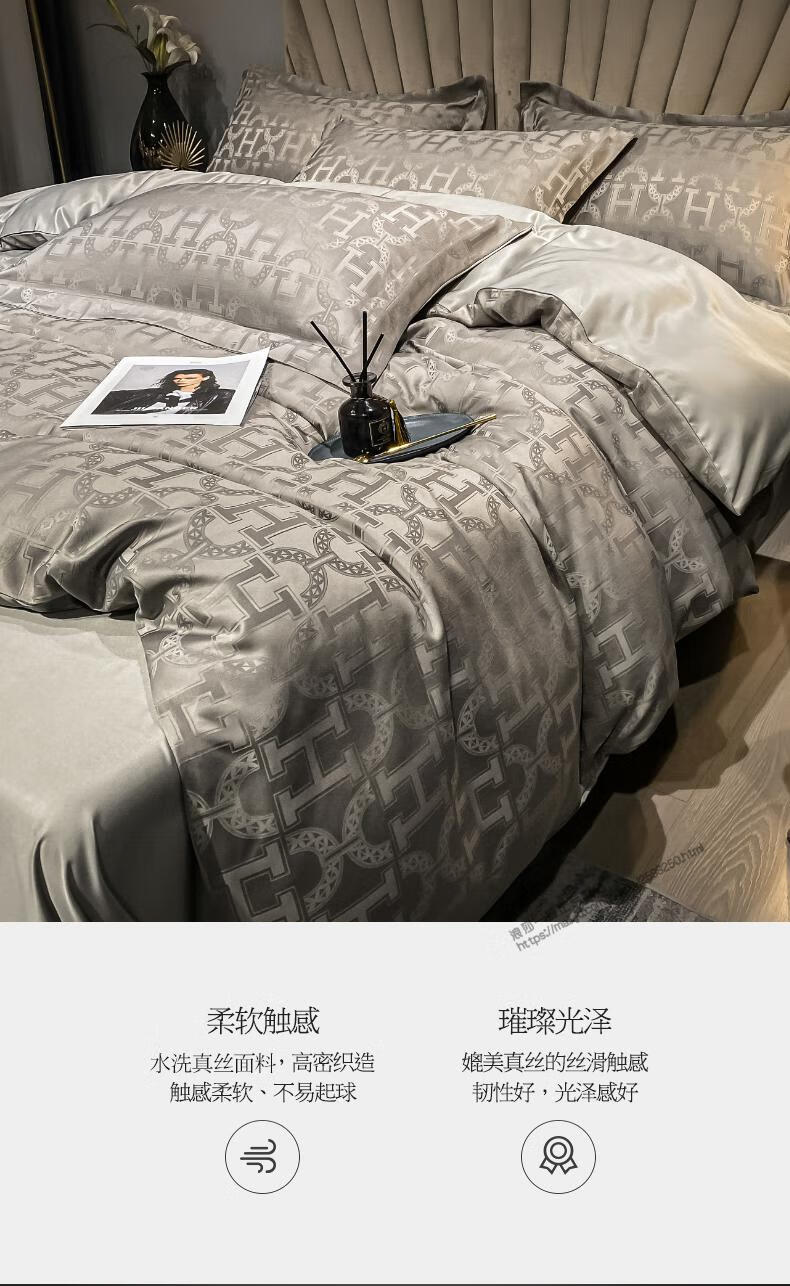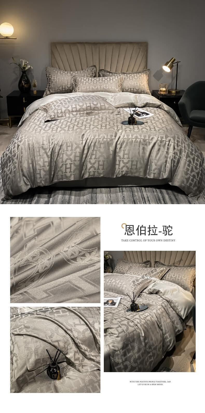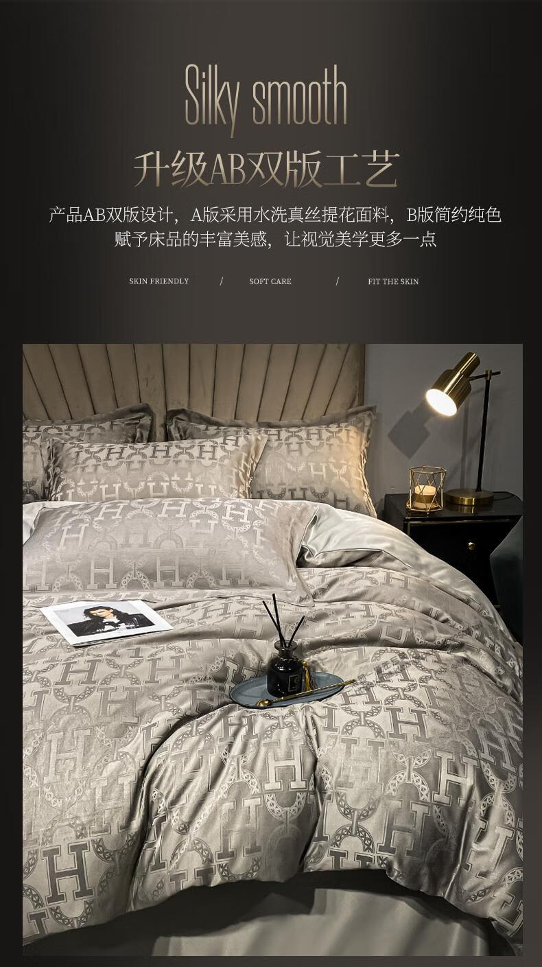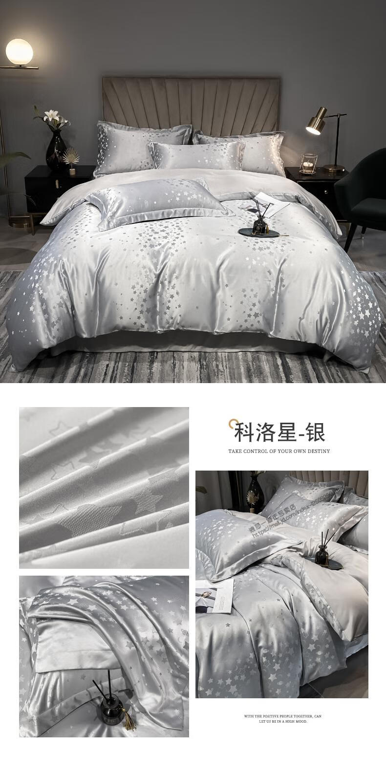 Yalu washed silk bed four-piece ice silk quilt cover summer single and double home bedding sheet three-piece set Embera-blue (skin-friendly and breathable, silky and naked sleeping grade) 1.5m four-piece set bed sheet style (quilt cover 200*230cm)