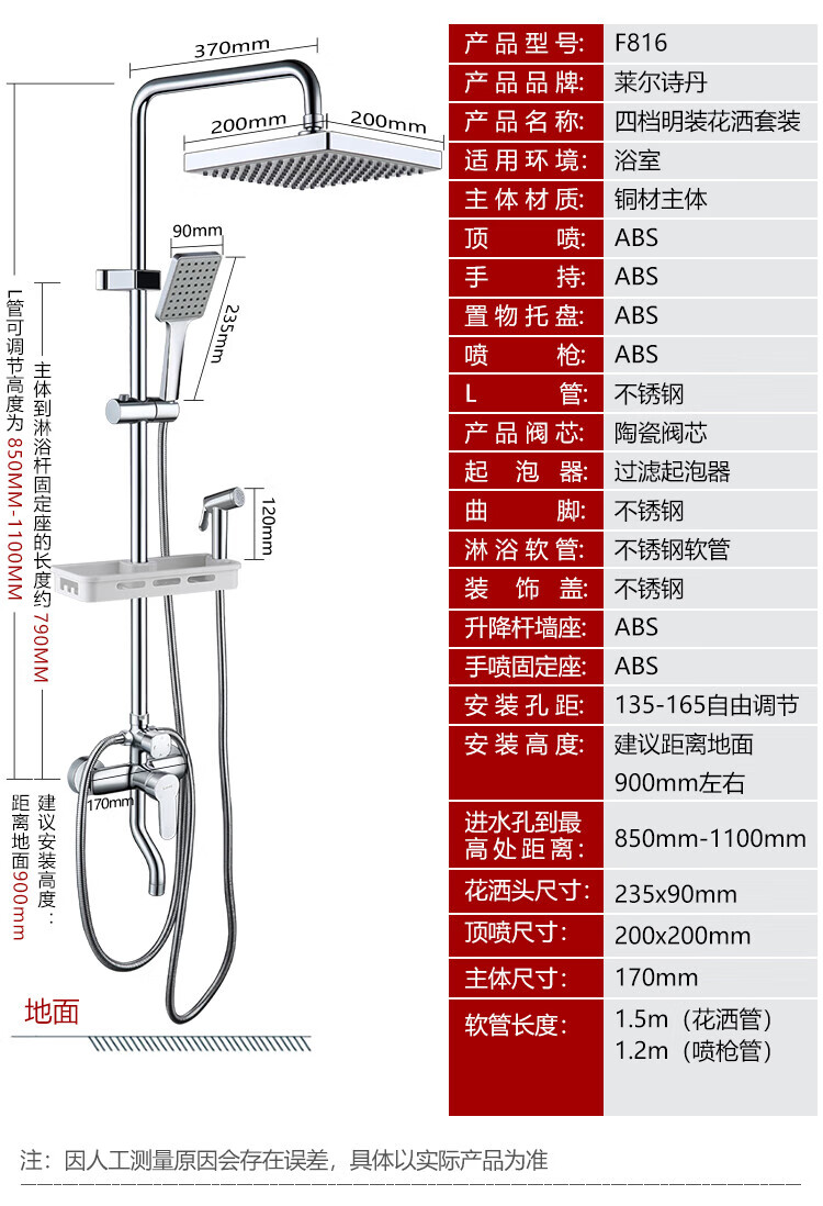 Larsd shower set, square spray gun shower set, full copper body faucet, supercharged shower set F816