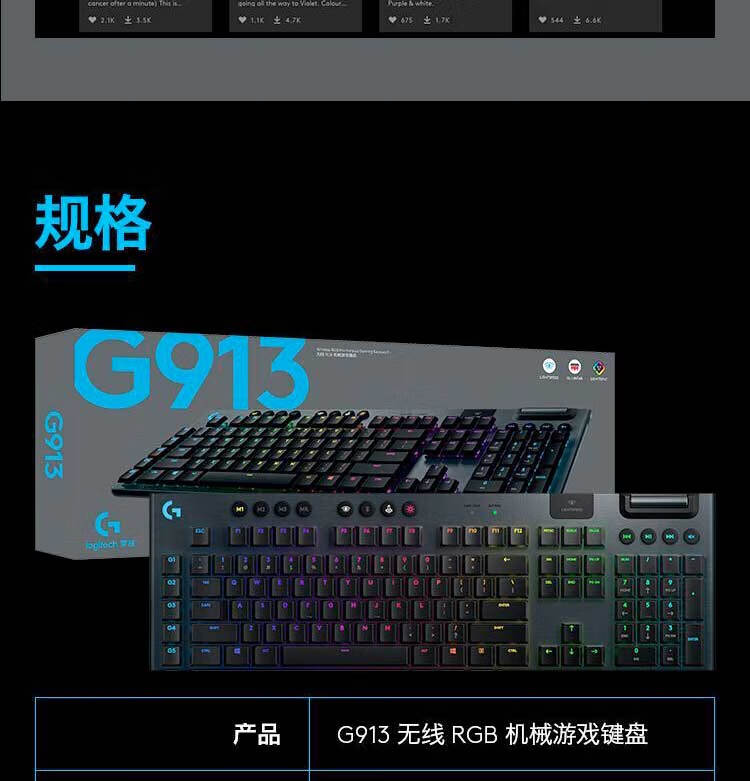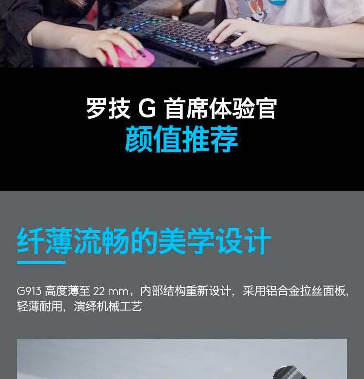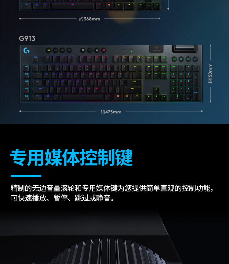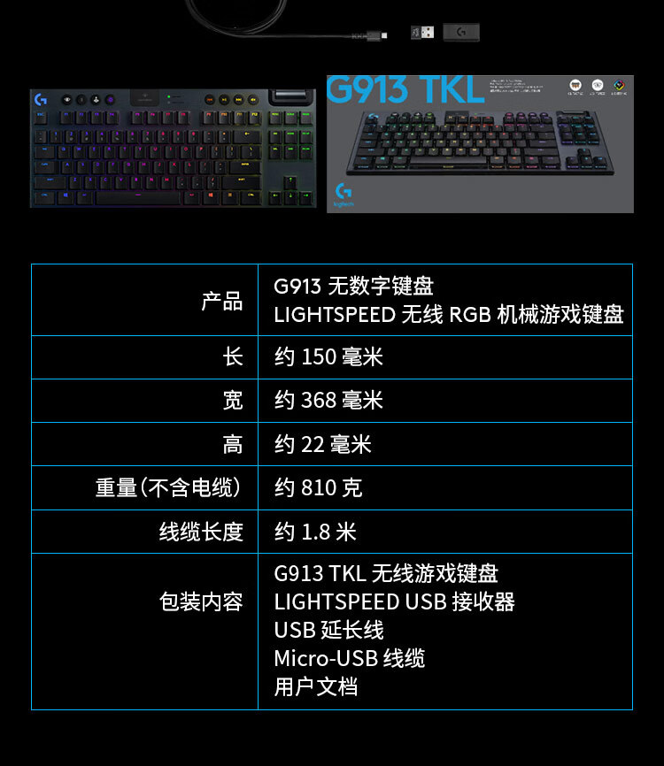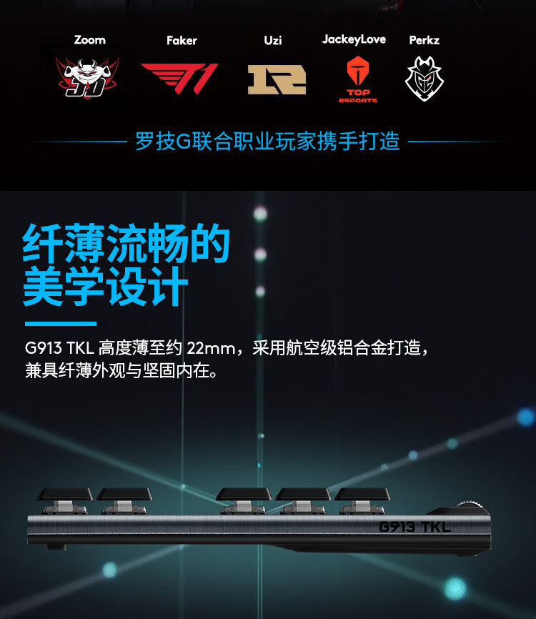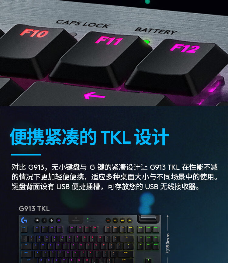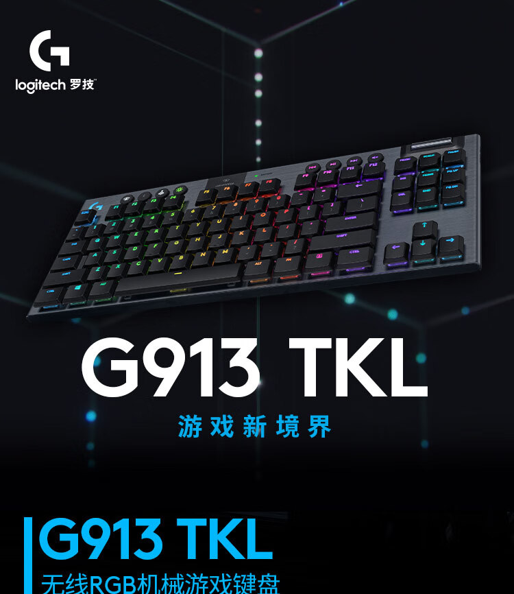 Logitech (G)G913/G913TKL Wireless Bluetooth Wired Three-Mode Mechanical Keyboard Short Axle 87-key Compact Design No Number Keyboard Full keyboard Design Thin and Light Aluminum Alloy G913TKL [Three-Mode-87-key Tea Roller]