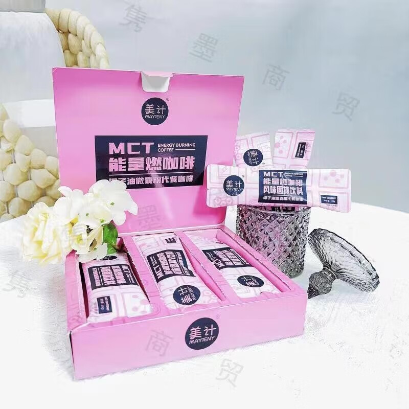 Meiji Café quema energía Aceite de coco Microcápsula en polvo Café de reemplazo de comida Té húmedo de fibra antigua MCT Café quema energía Una caja de té húmedo con fibra [30 bolsas]