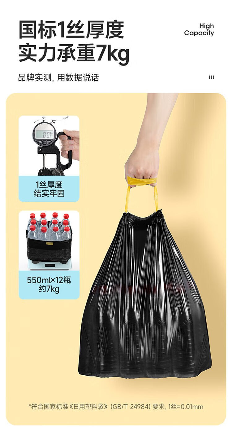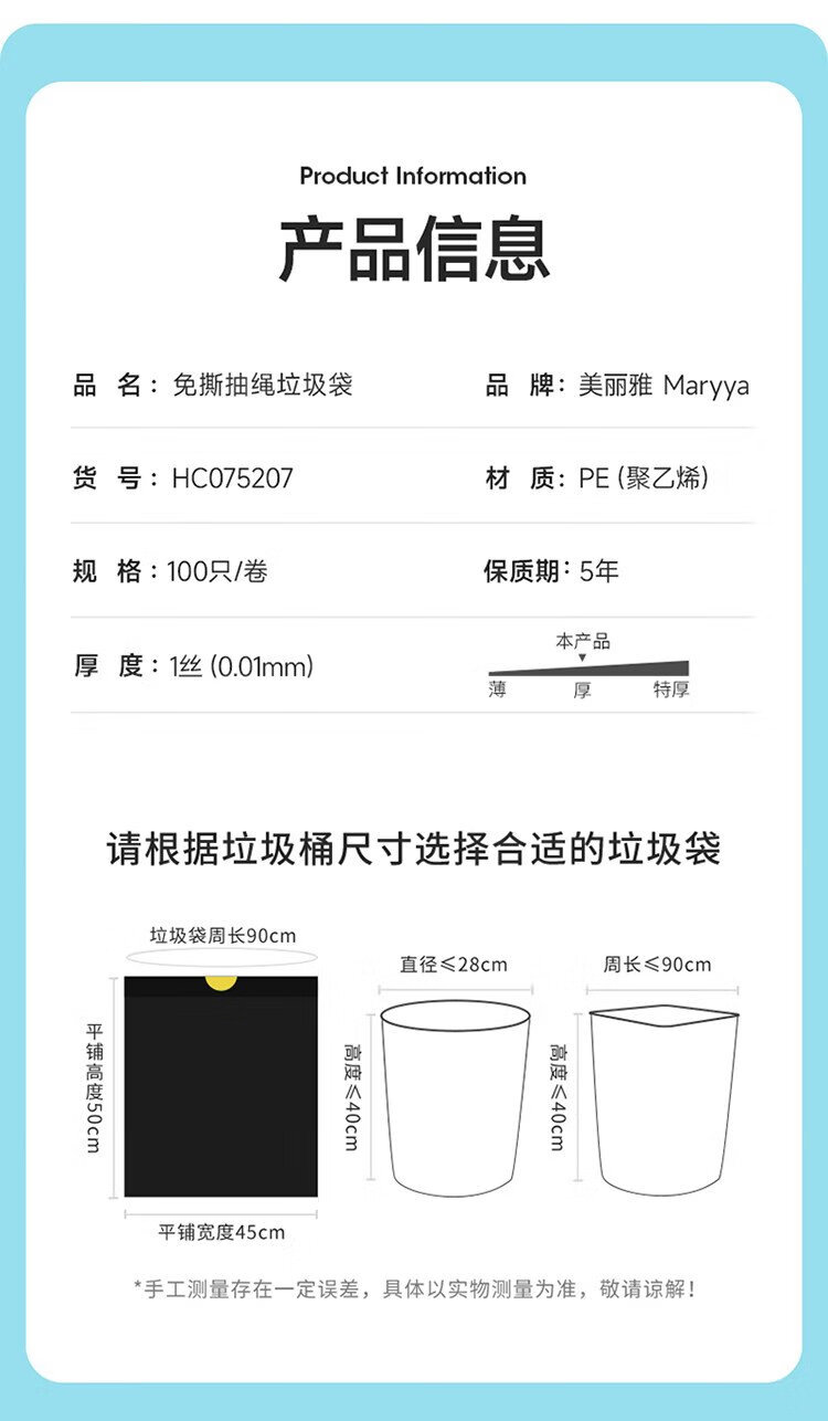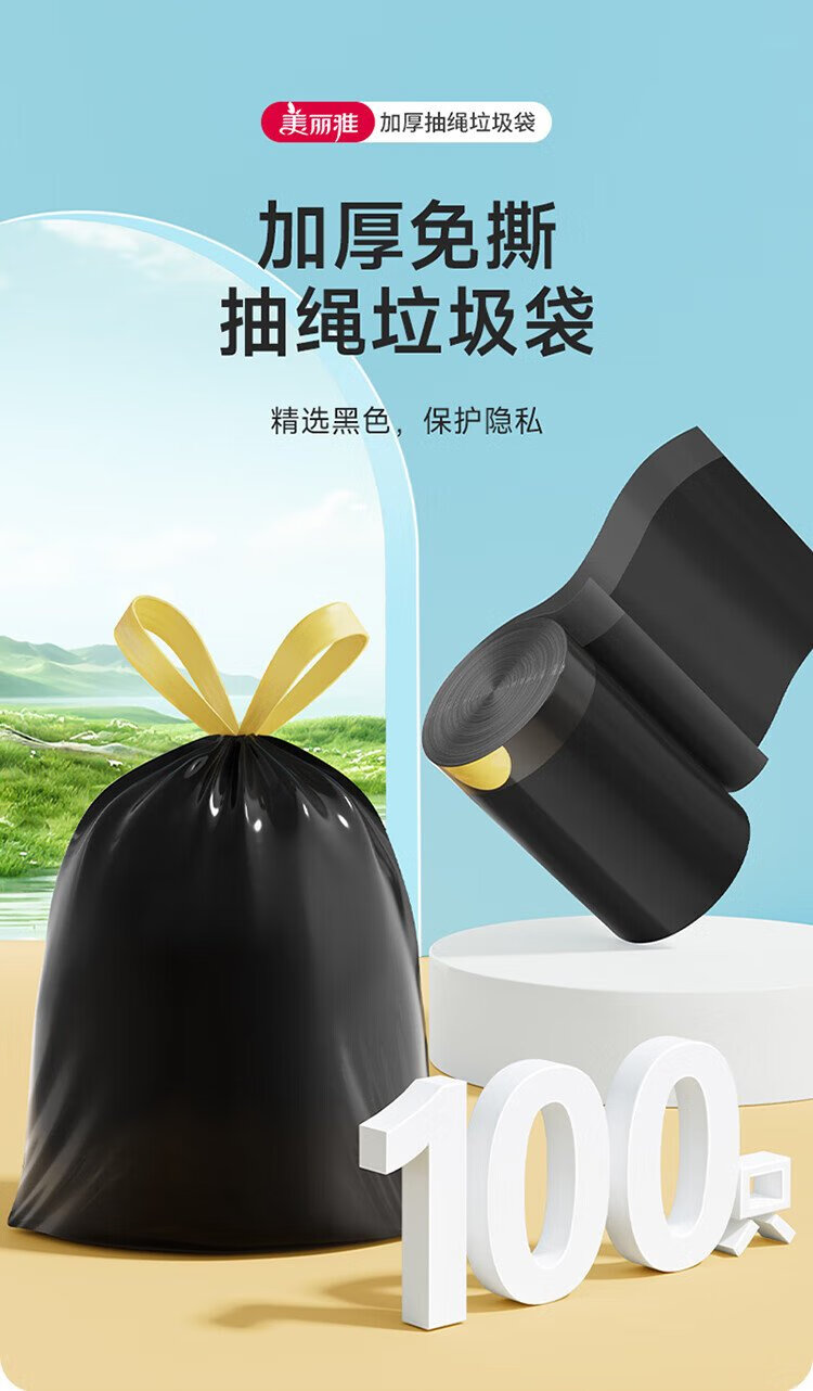 Meiya [same style as Ren Jialun] drawstring garbage bag black 45*50cm 100 pieces 1 silk tear-free kitchen home office