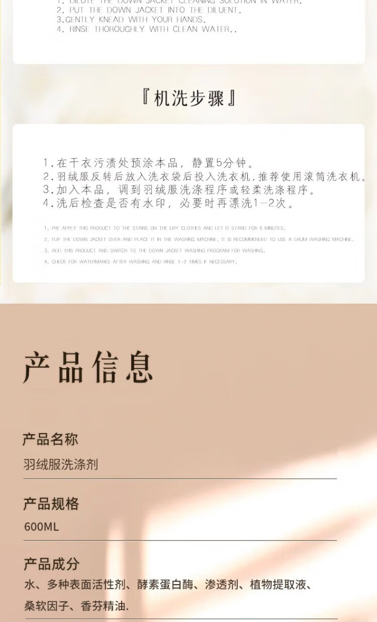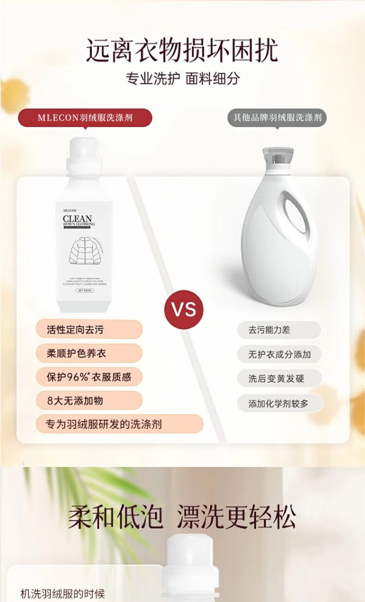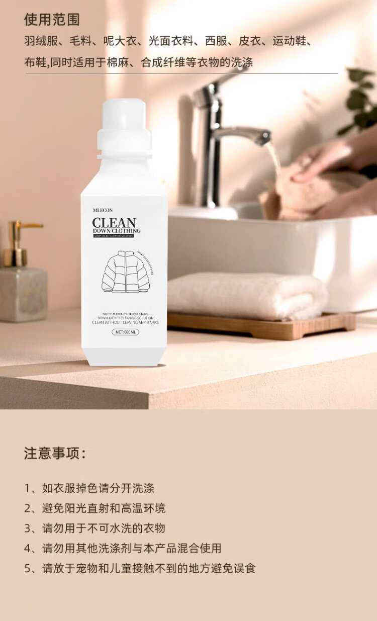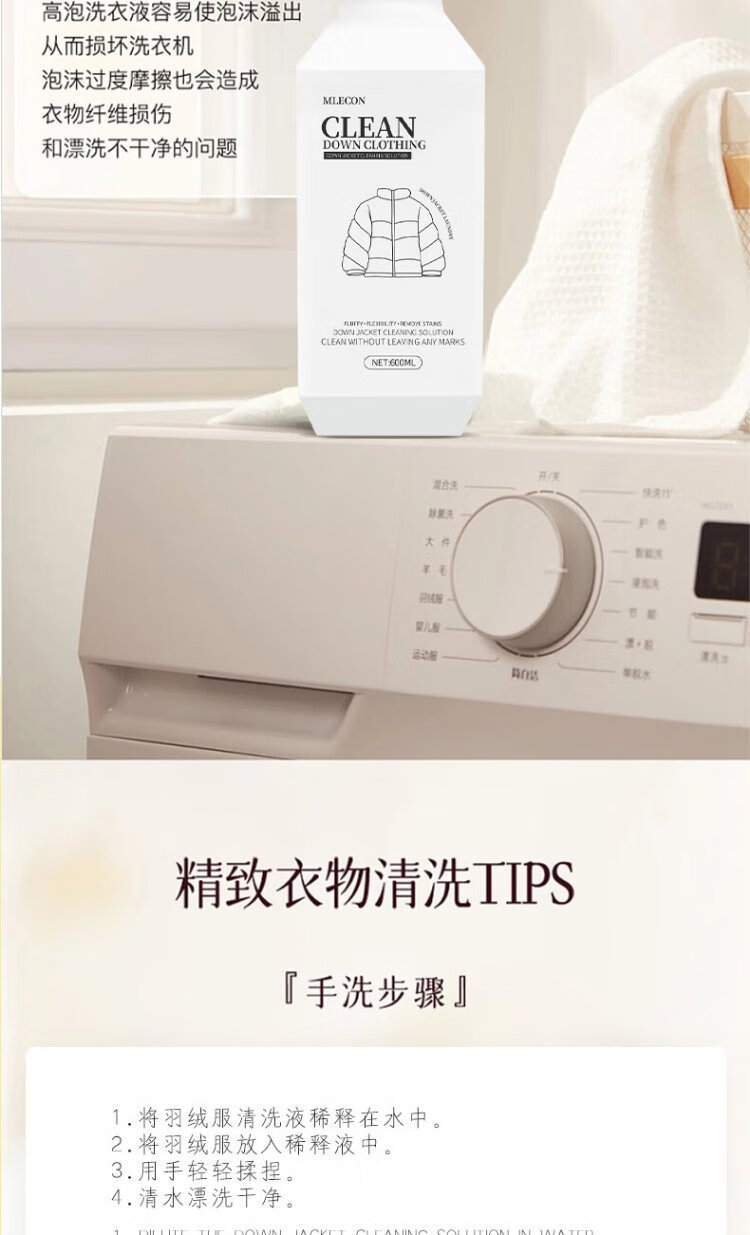 MLECON European down jacket cleaning agent for washing special detergent liquid washing machine fluffy washing detergent machine washing 600ml