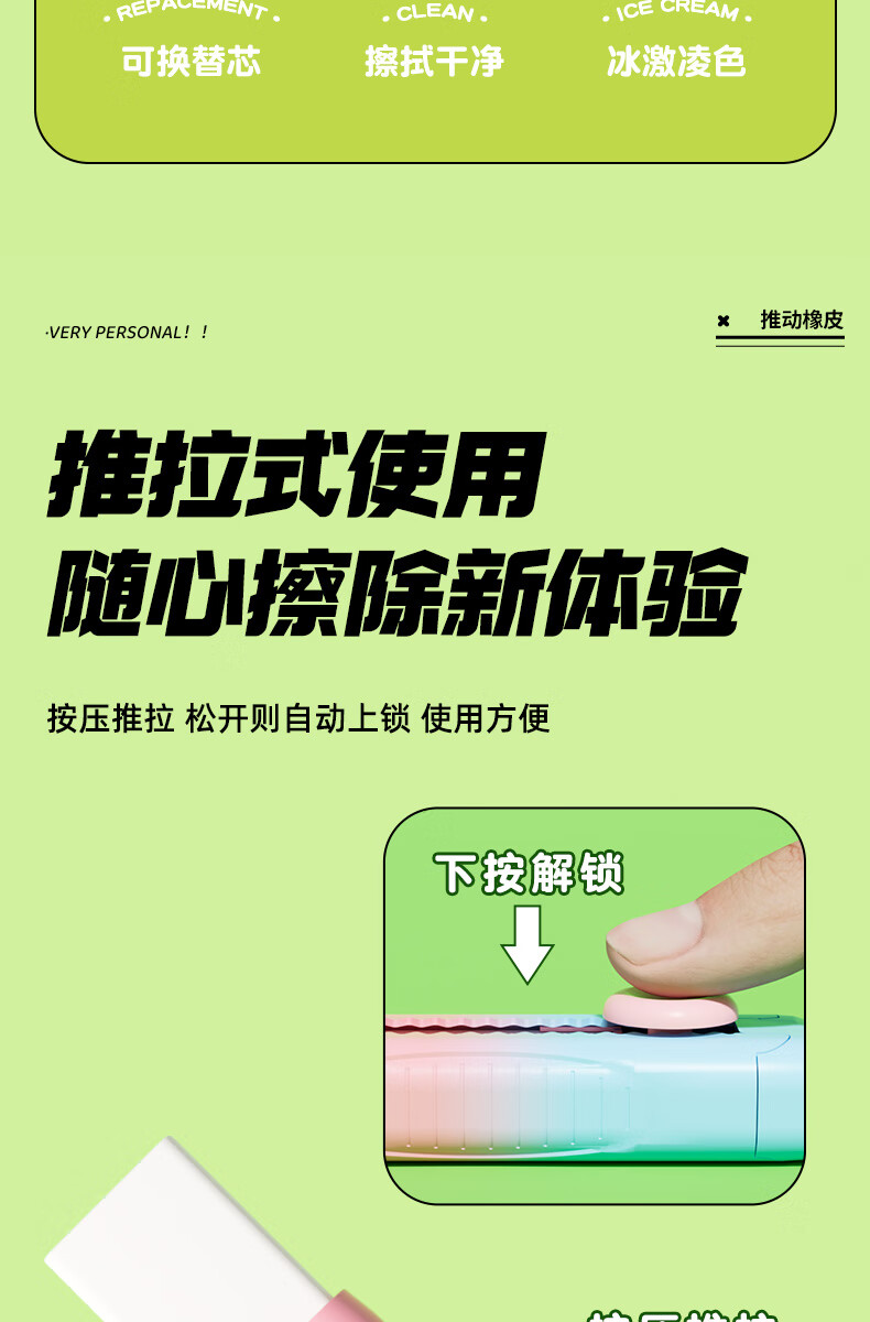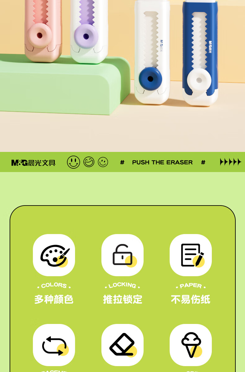 Morning Light Eraser Ice Cream Colored Push-Pull Elephant Skin for Primary School Students Examination Special No Traces Clean Creative Push Telescopic Elephant Skin Art Painting Pencil Children Kindergarten Push Eraser Pink-Purple-Green-Blue 4 Pack Morning Light (M/G)