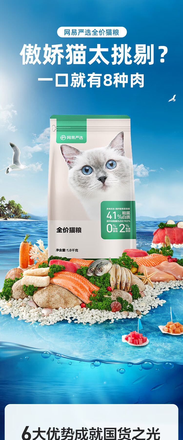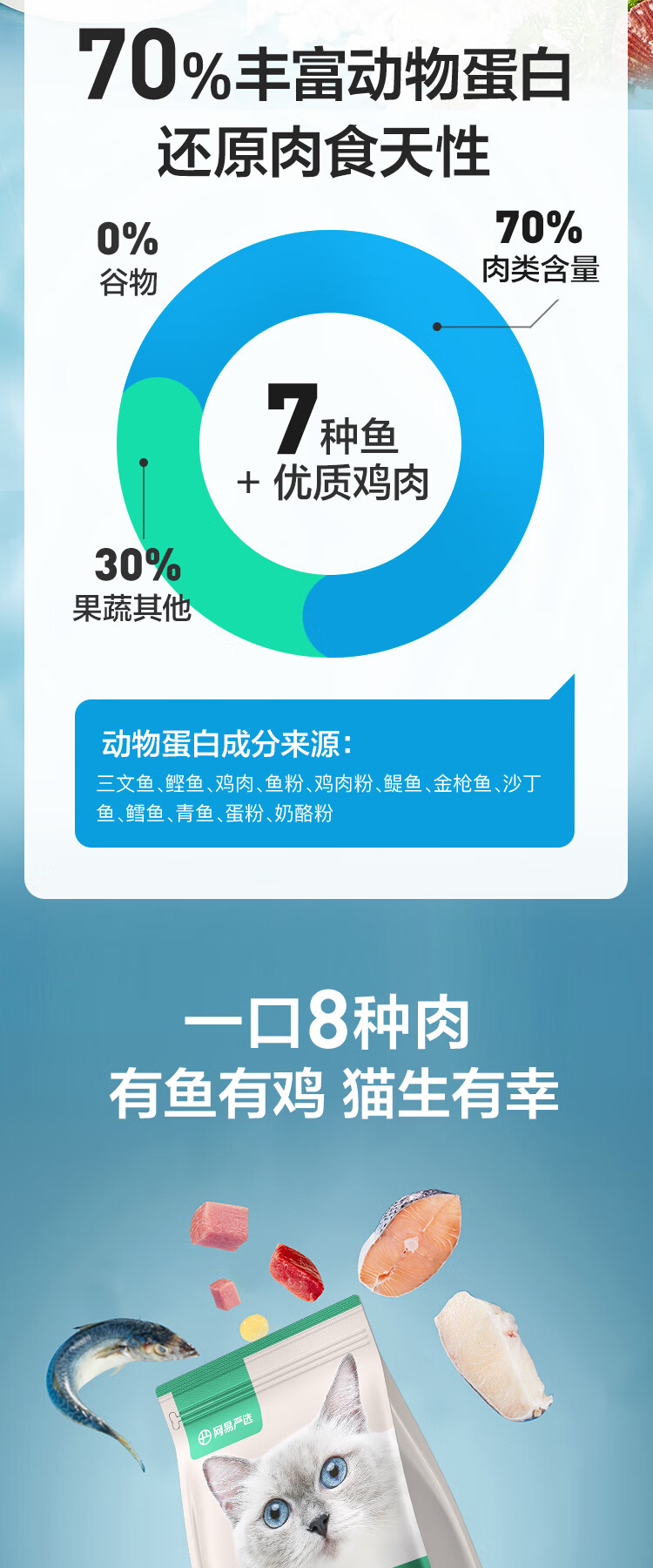 NetEase Yanxuan full price cat food Seven kinds of fish + chicken kitten adult cat universal pet cat staple food cat food Full price cat food 1.8kg