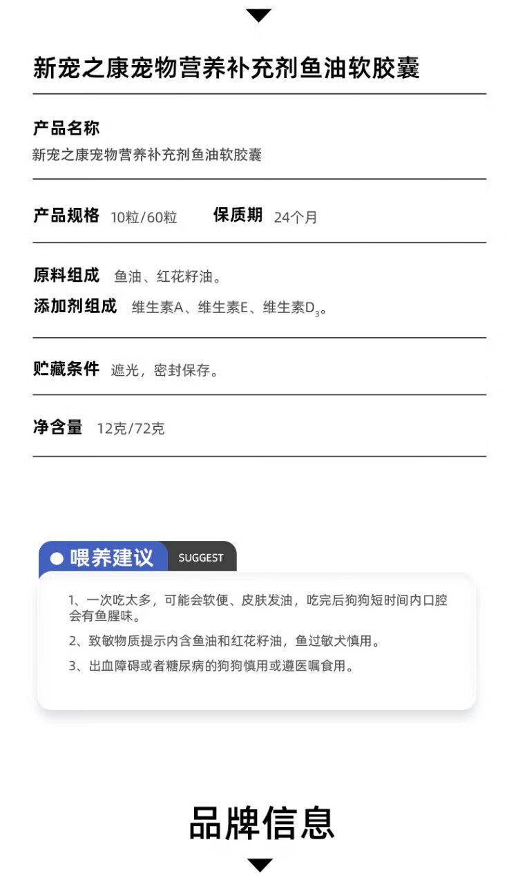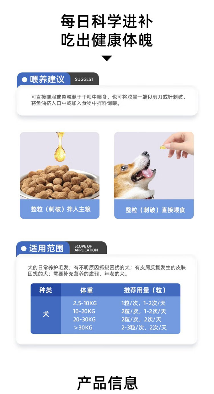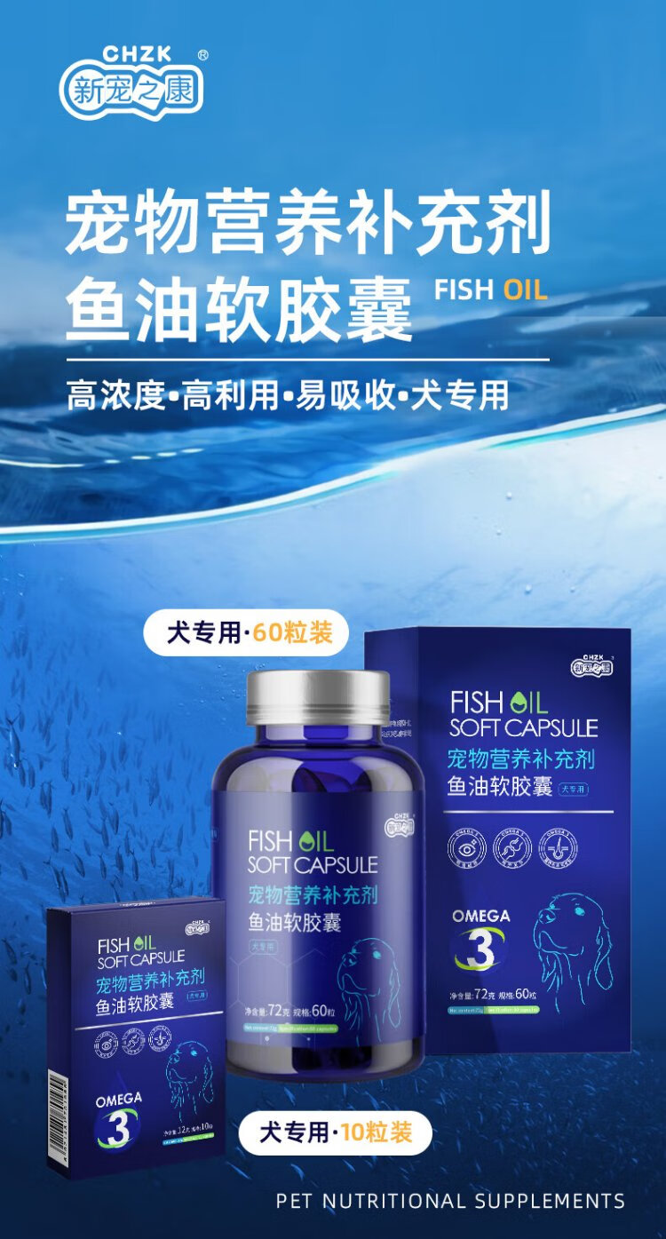 New Pets Zhikang Pet Fish Oil Soft Capsules 60 Dog Deep Sea Concentrated Hair and Skin Care Pet Nutritional Supplement