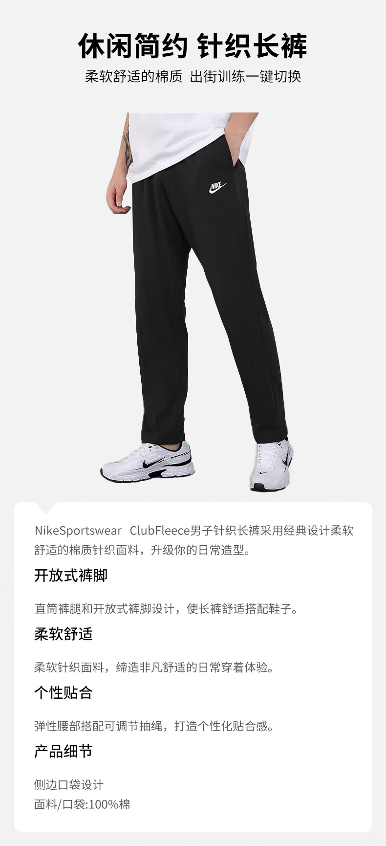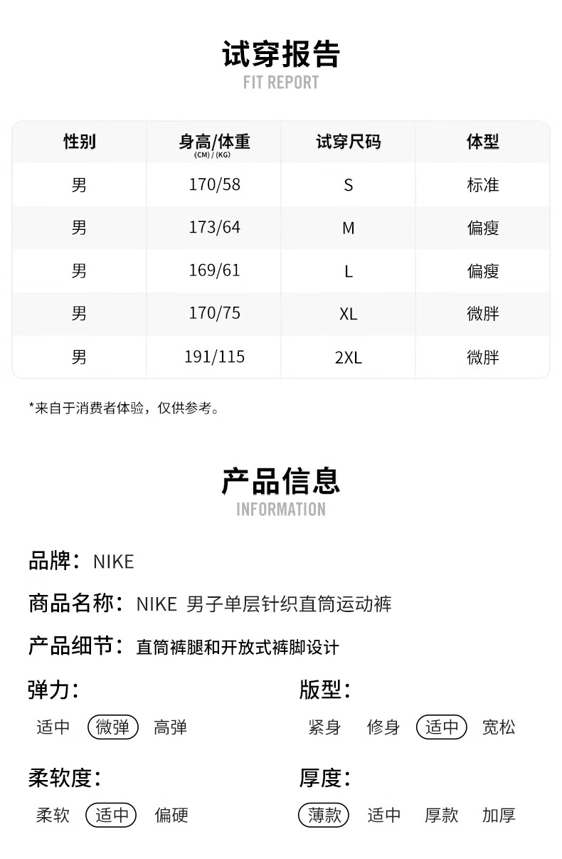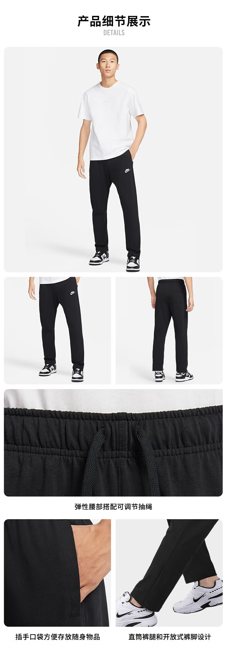 NIKE Men's Sports Pants Spring and Autumn Single-layer Knit Straight Casual BV2767-010 Black M