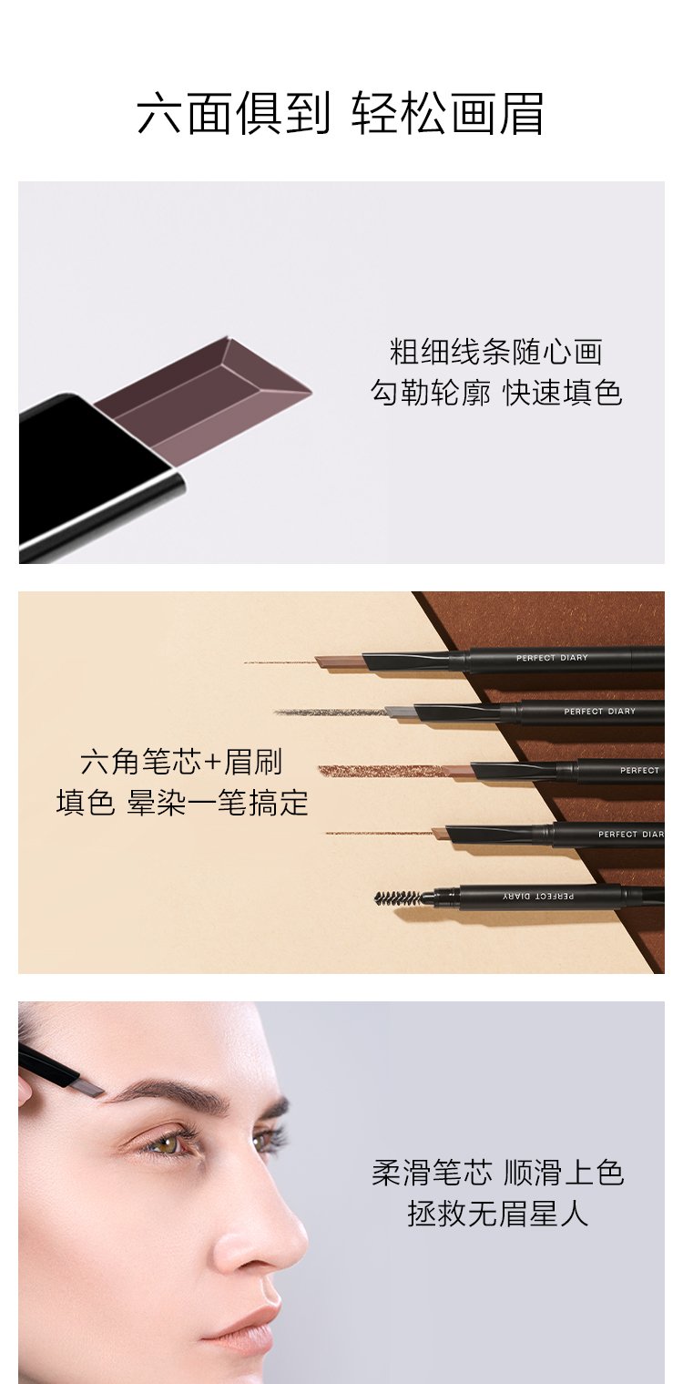 Perfect Diary Double-ended Hexagonal Eyebrow Pencil 03 Light Brown Waterproof and Sweatproof Smooth and Easy to Color Travel Portable Birthday and Valentine's Day Gift