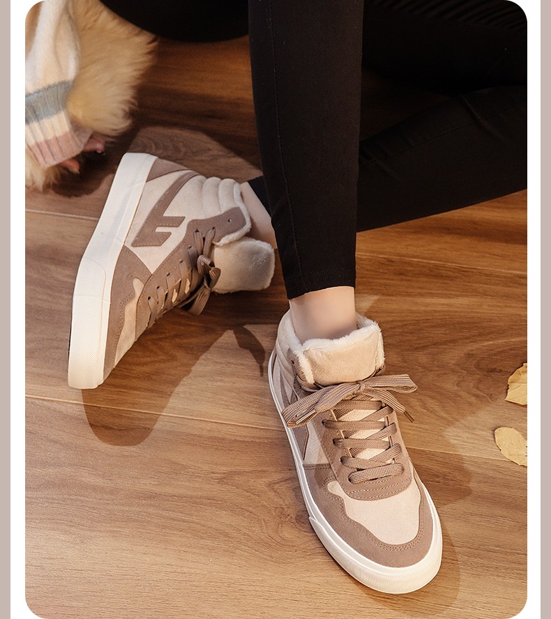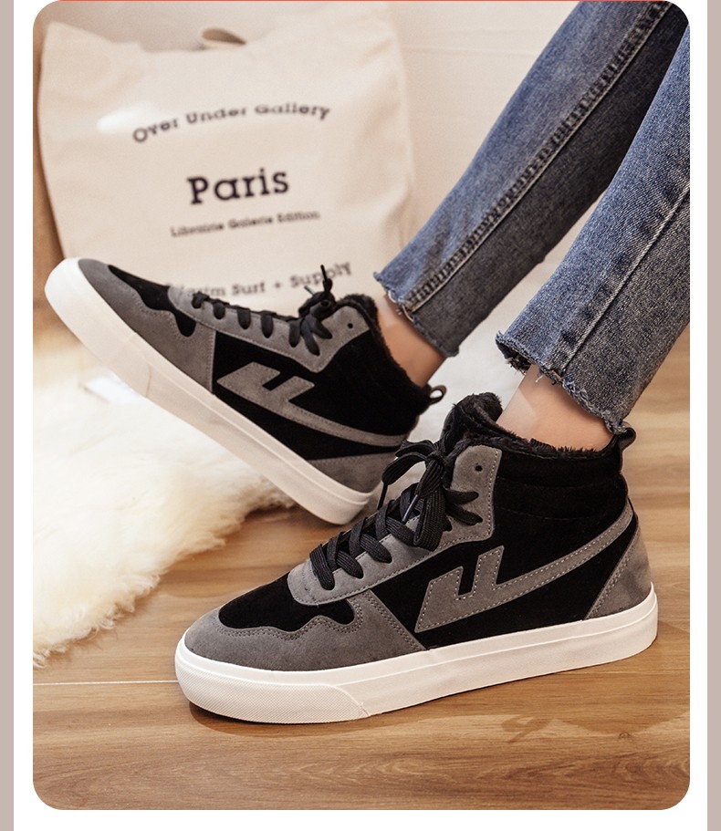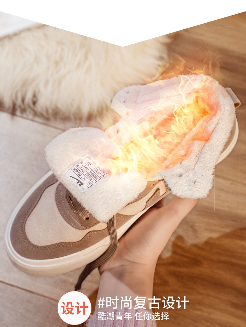 Pull back women's shoes, cotton shoes, women's winter 2024 autumn and winter new style plus velvet thickened high-top canvas shoes sneakers for couples two cotton shoes Mi Qianka-plus velvet 39 (245mm)