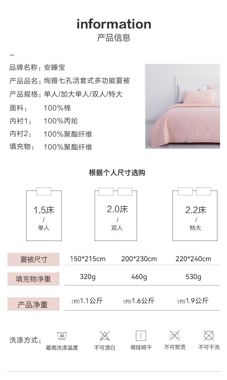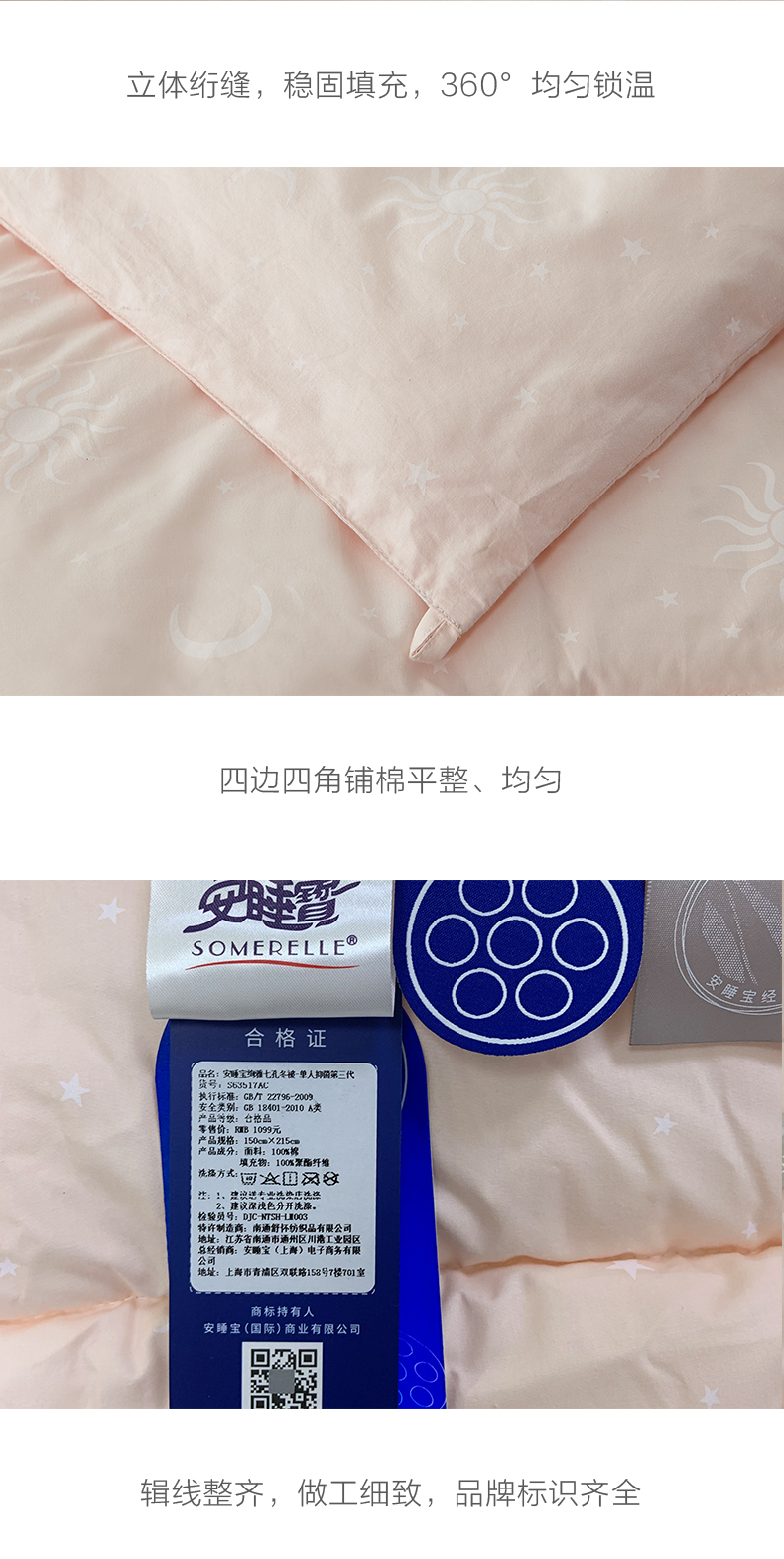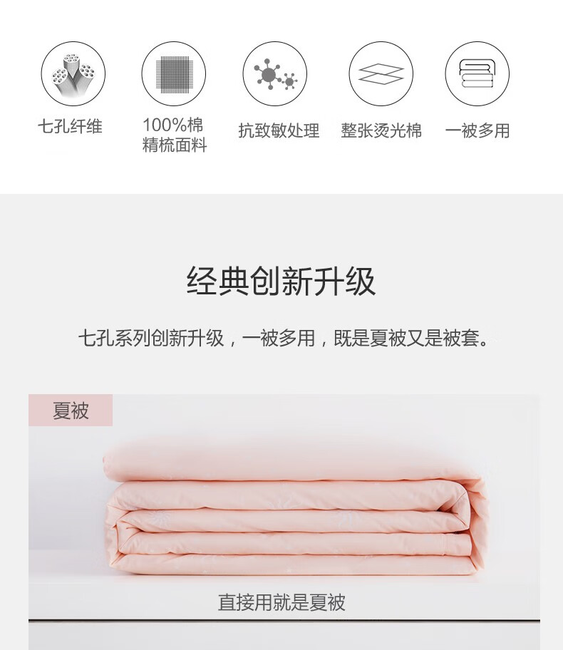 SOMERELLE quilt 100% cotton summer cool quilt INVISTA seven-hole fiber air-conditioning quilt winter quilt thickened core winter quilt Xuanya pink-winter quilt 200*230cm [antibacterial and zero-allergenic safety]