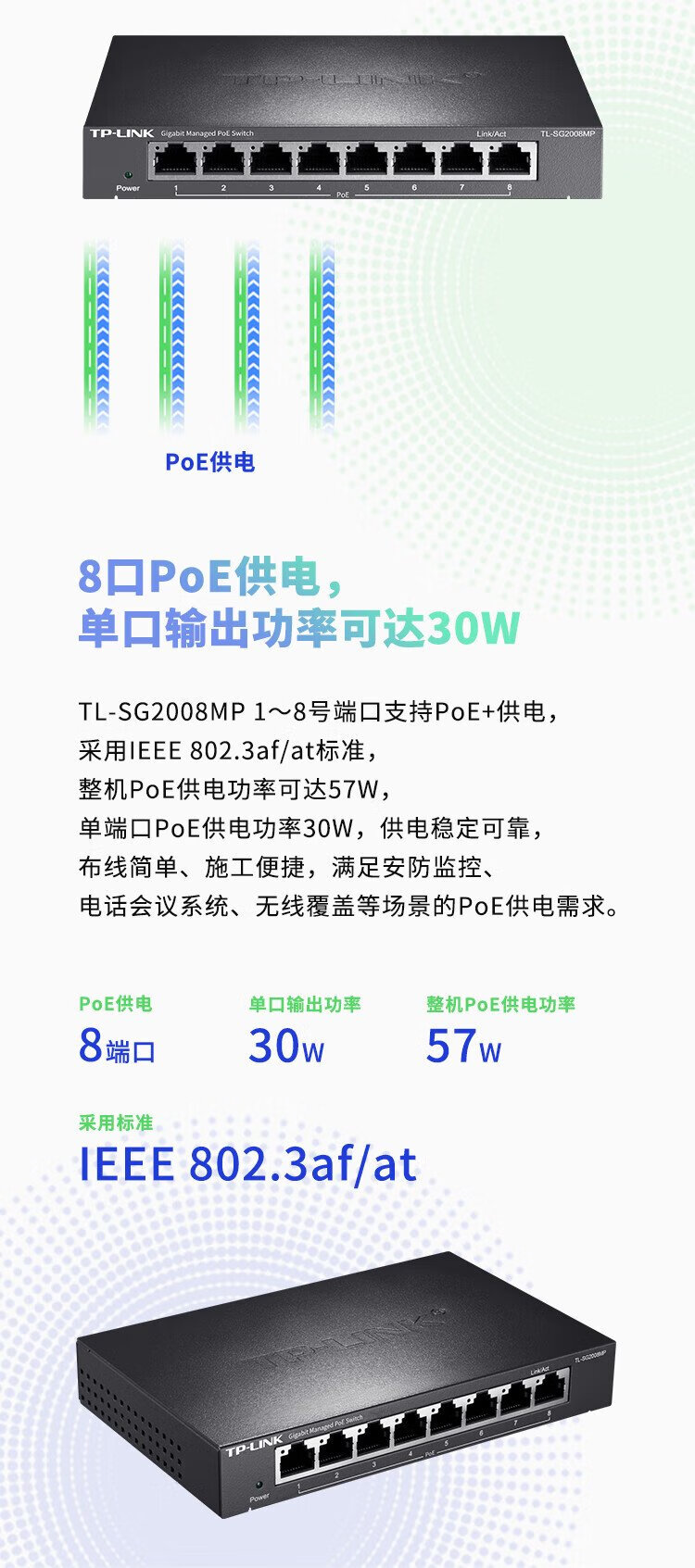 TP-LINK Full Gigabit Web Network Management 8-Port Gigabit PoE Power Splitter Splitter Hub PoE Switch TL-SG2008MP