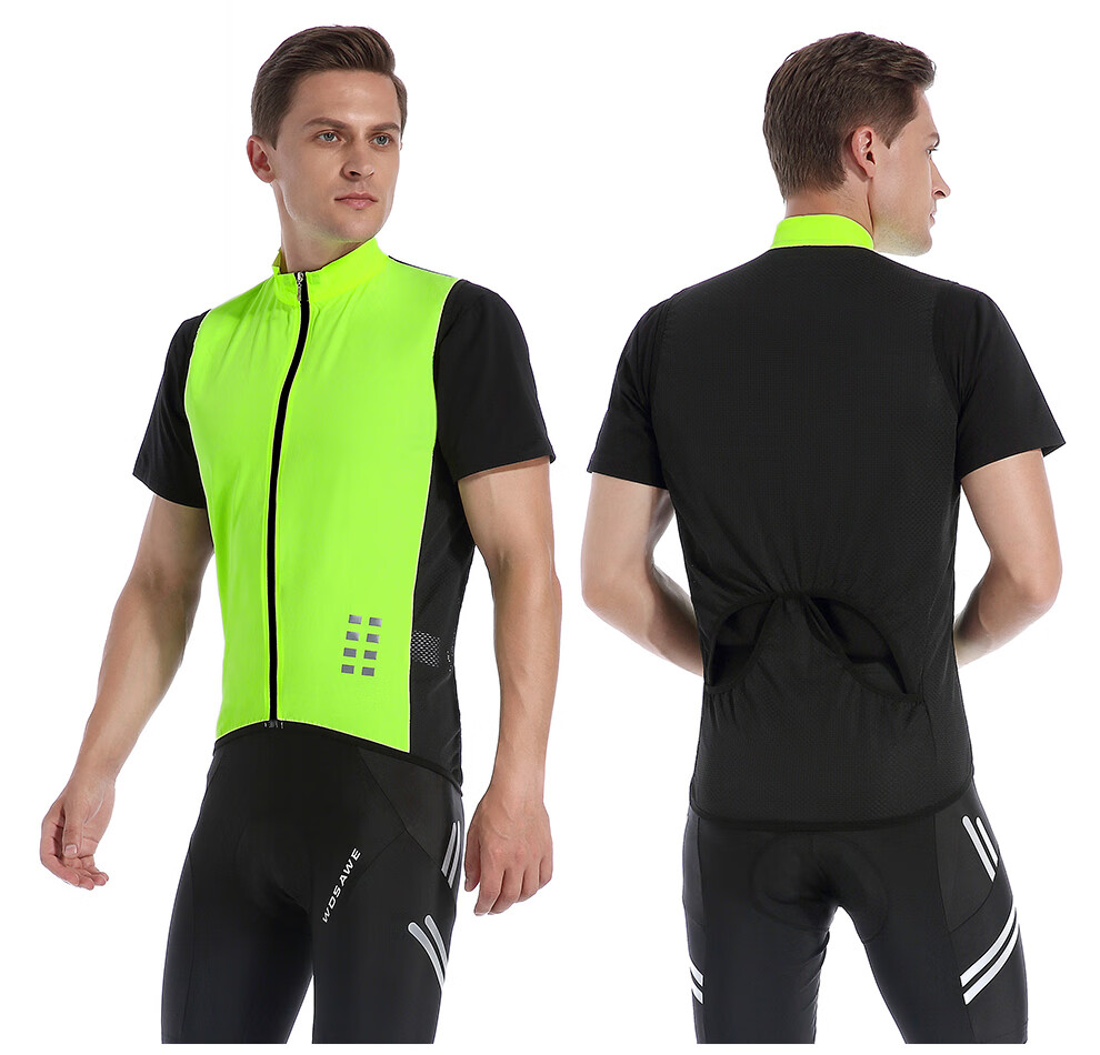 WOSAWE road cycling vest with fully hollow back, breathable mountain bike top, running and mountaineering night riding vest, green (hollow design on the back) XL