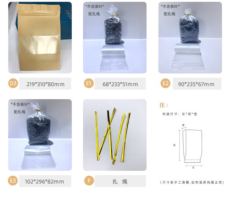 Xuancai tea bag tea bag tin foil bag transparent bag with tea inner bag for sale 100 pcs/bag 100 pcs inner bag A1 tea 25 long - about three liang