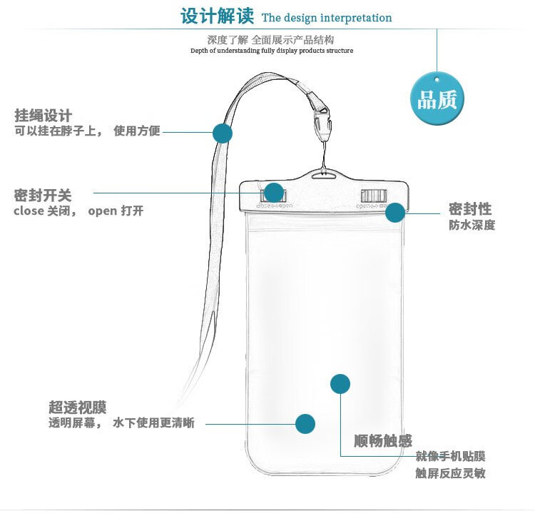 Zhongmo is suitable for mobile phone waterproof bags, take-out express, diving, swimming, hot spring photography, touch screen waterproof cases, rainproof cases, universal style suitable for most 7.2 inches and below, black
