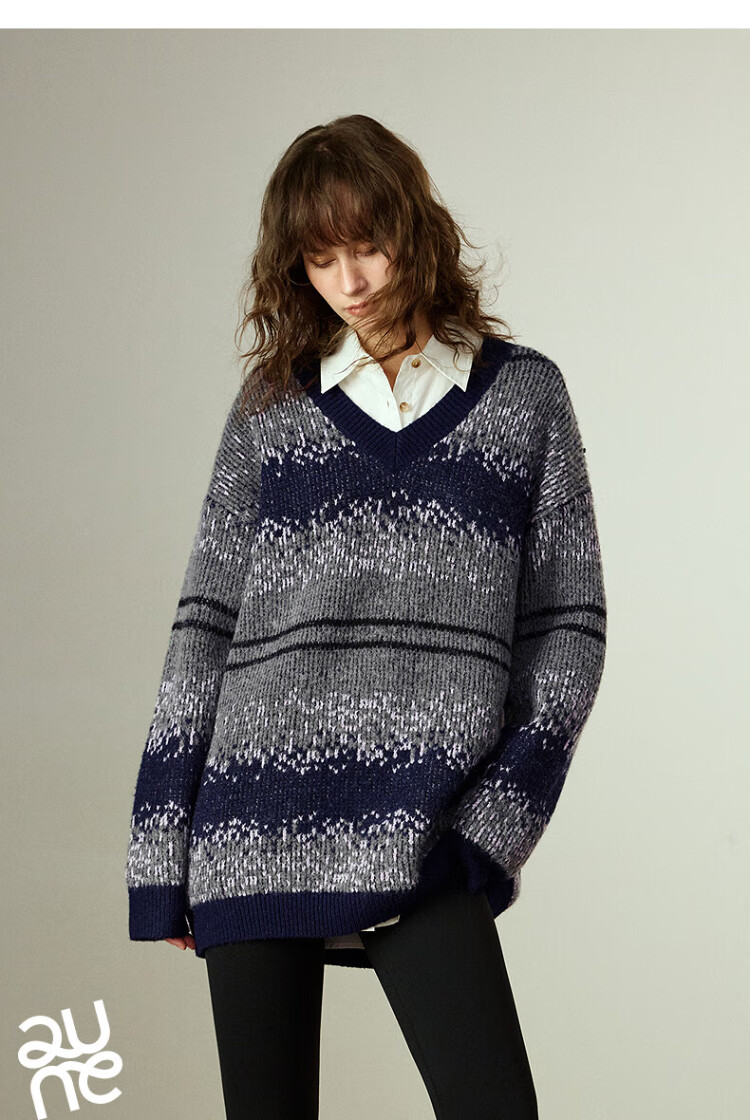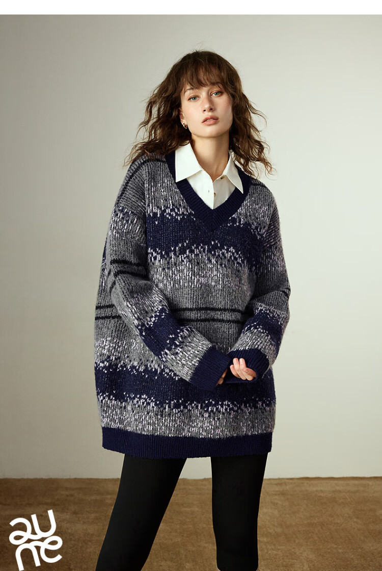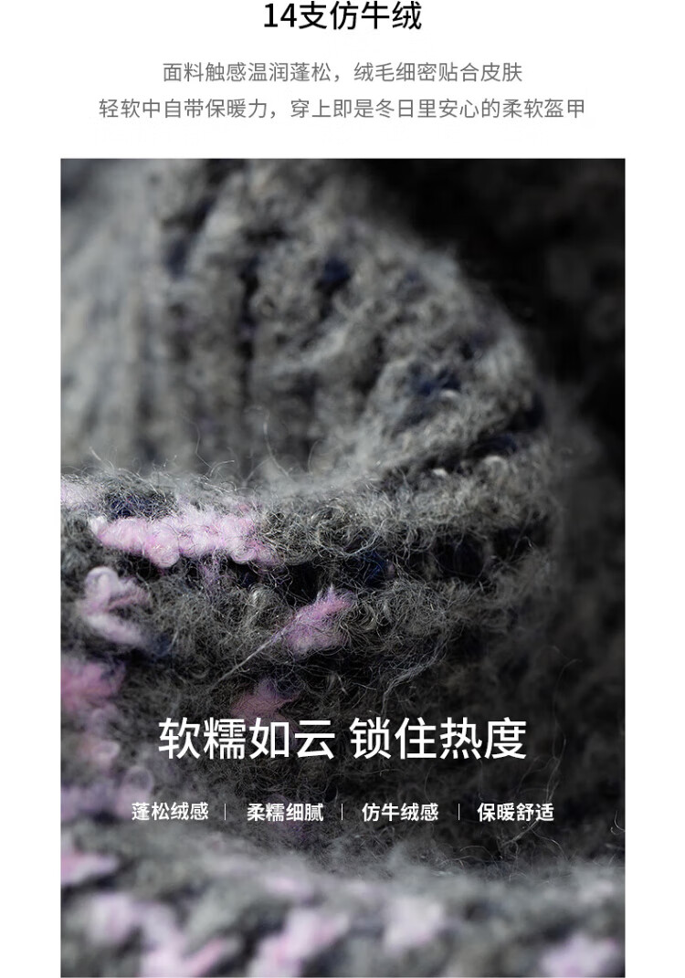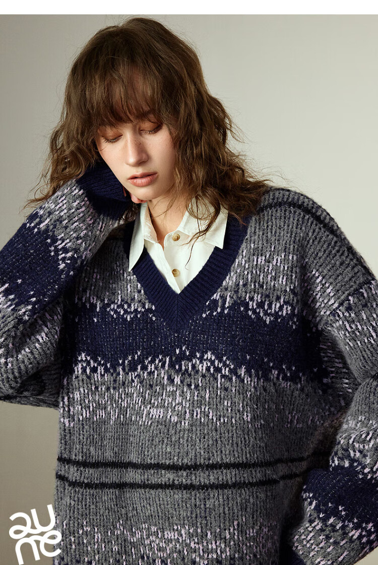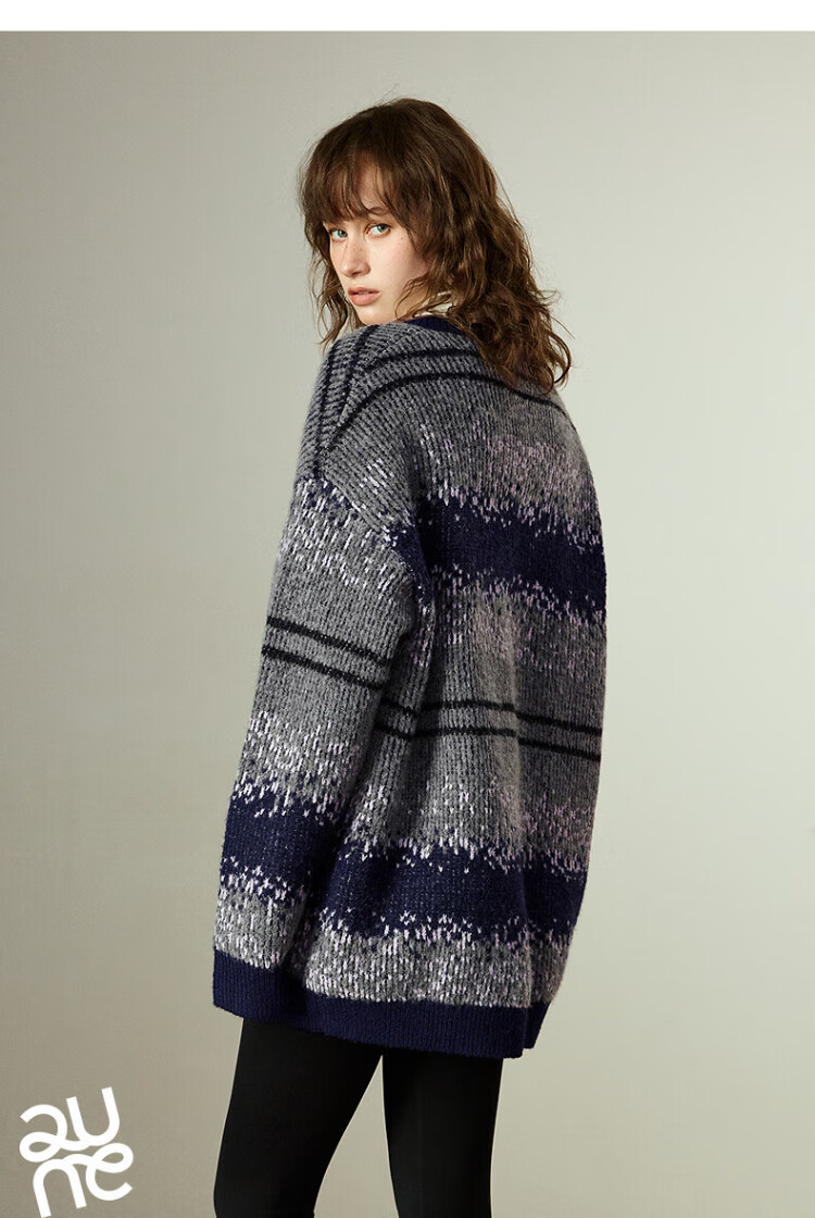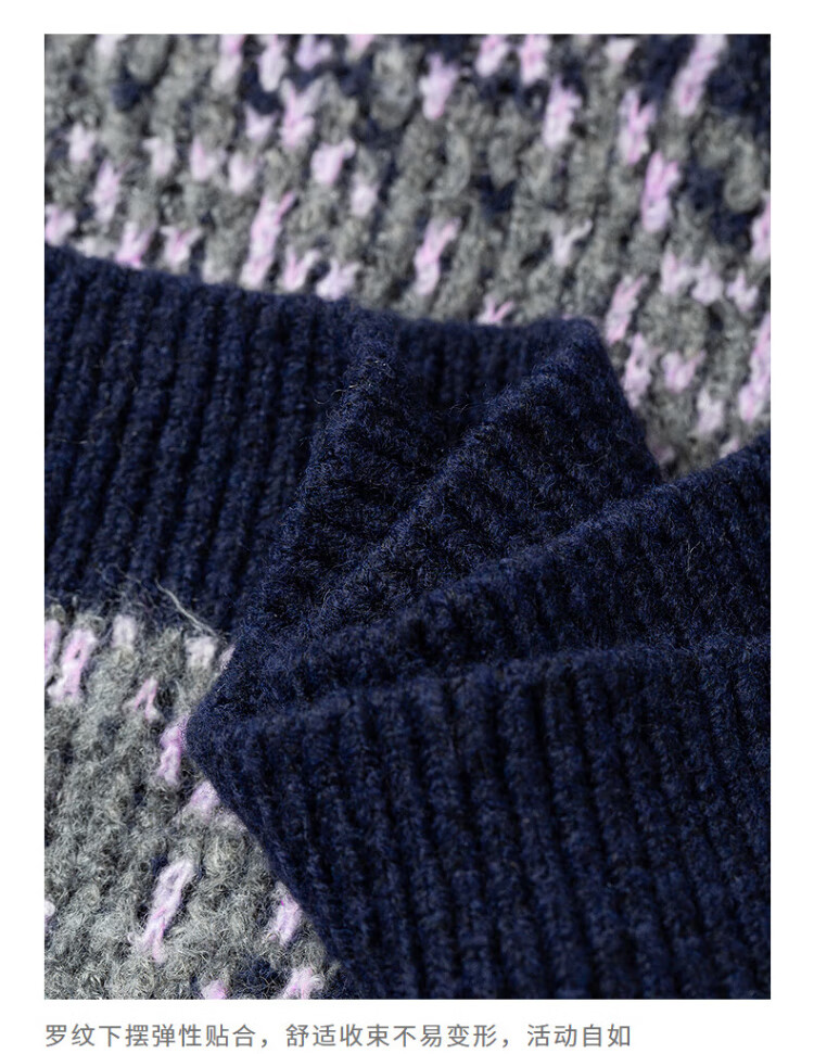 Chuyu Imitation Cow Velvet Sweater Women's 2025 Winter New Fair Isle Jacquard Loose Mid-Length Top Navy Gray M