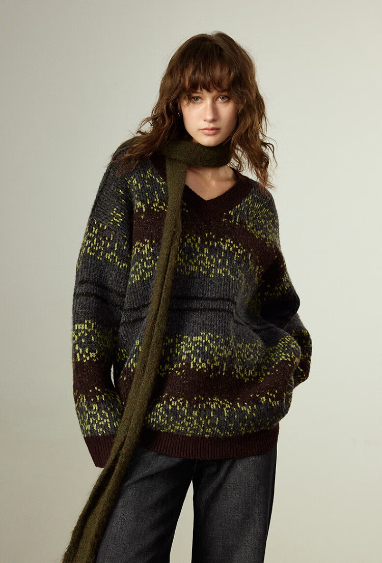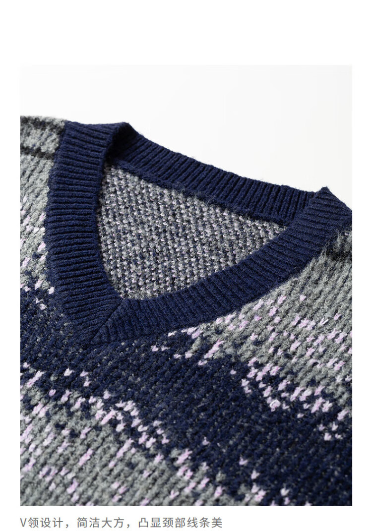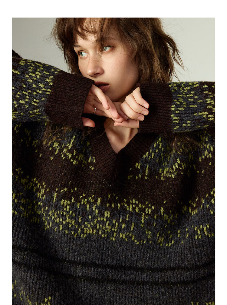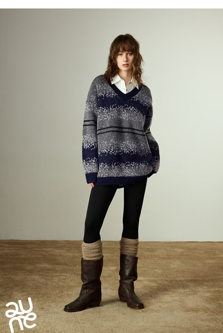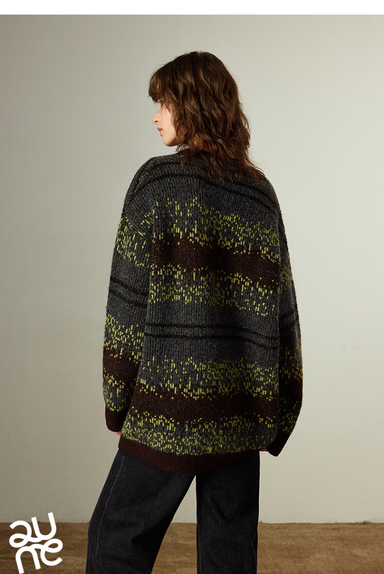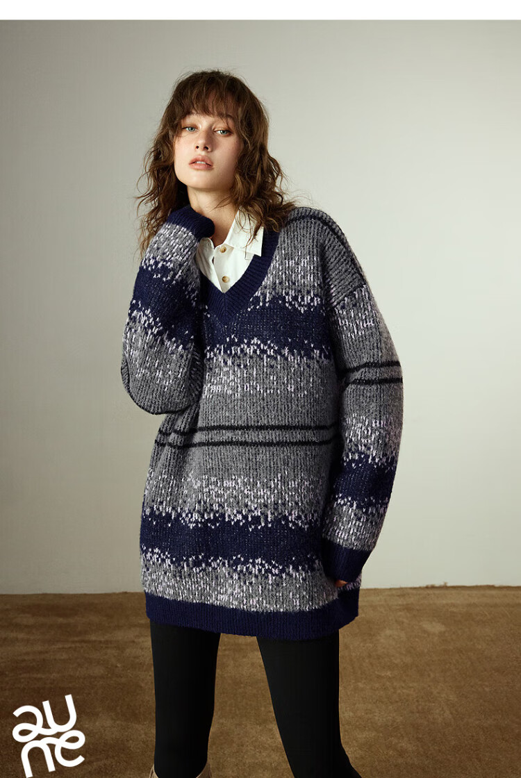 Chuyu Imitation Cow Velvet Sweater Women's 2025 Winter New Fair Isle Jacquard Loose Mid-Length Top Navy Gray M