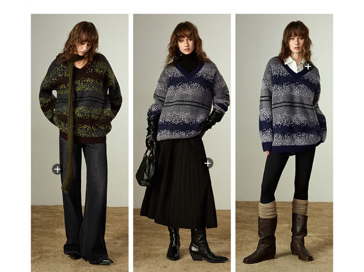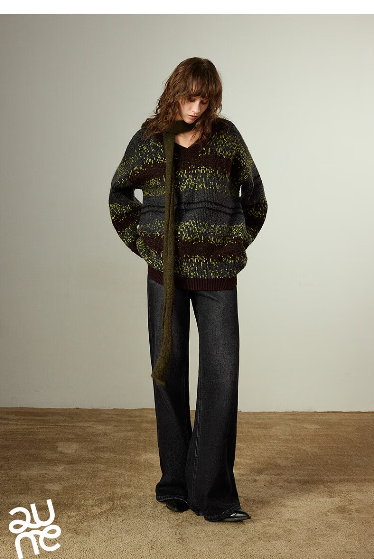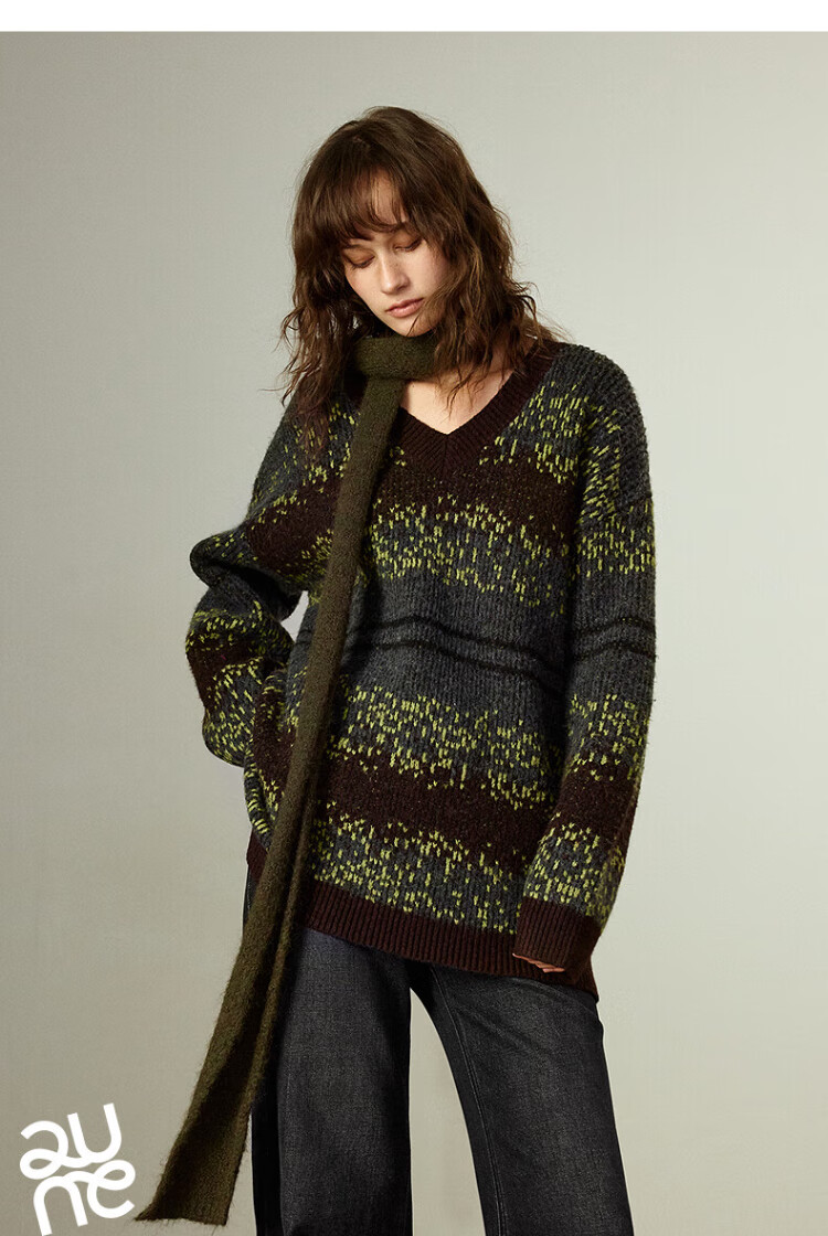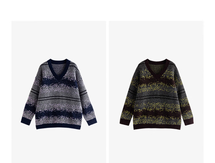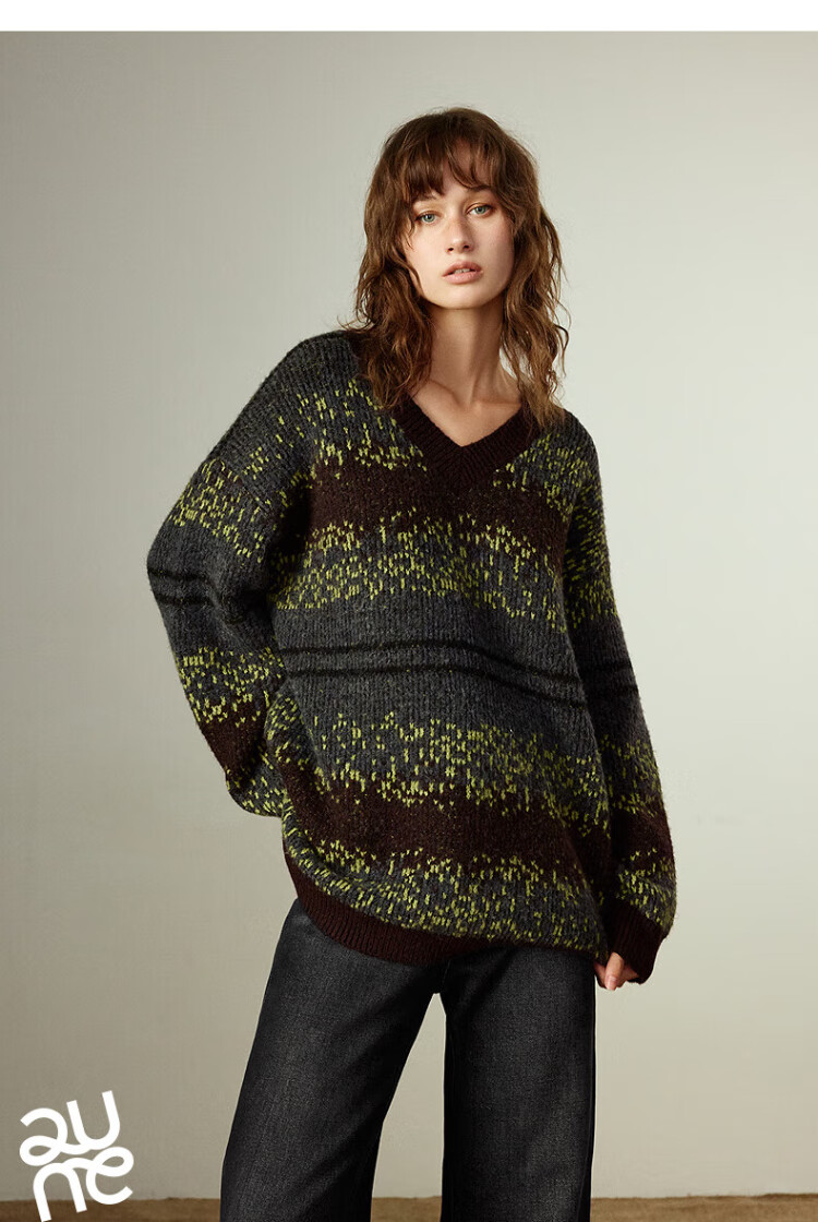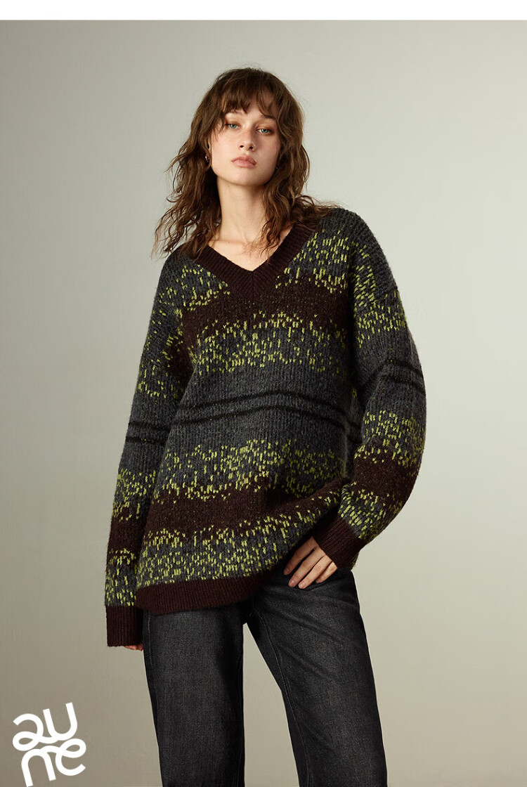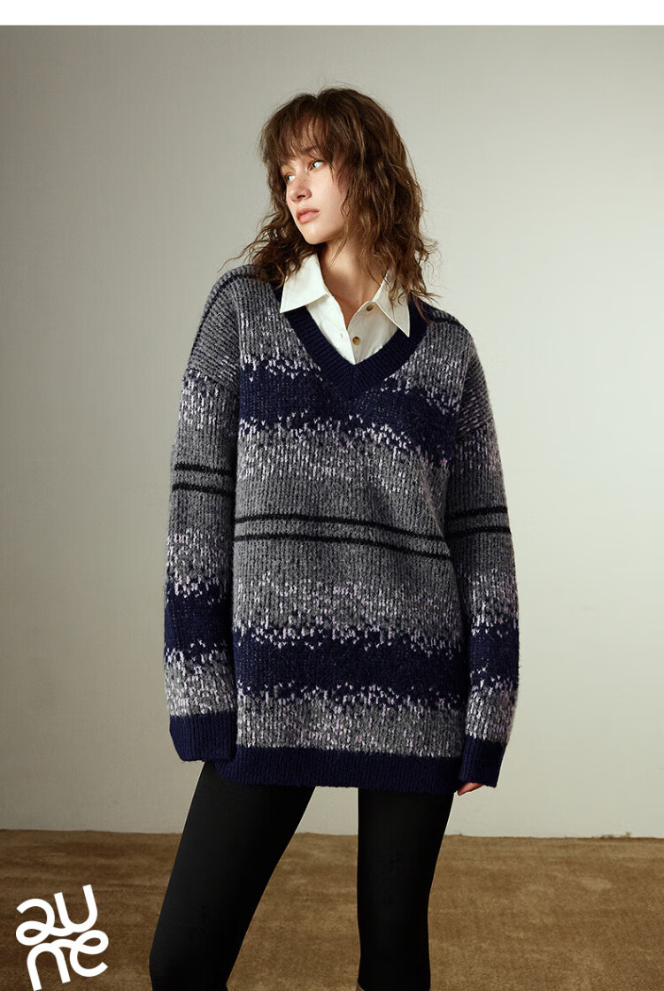 Chuyu Imitation Cow Velvet Sweater Women's 2025 Winter New Fair Isle Jacquard Loose Mid-Length Top Navy Gray M