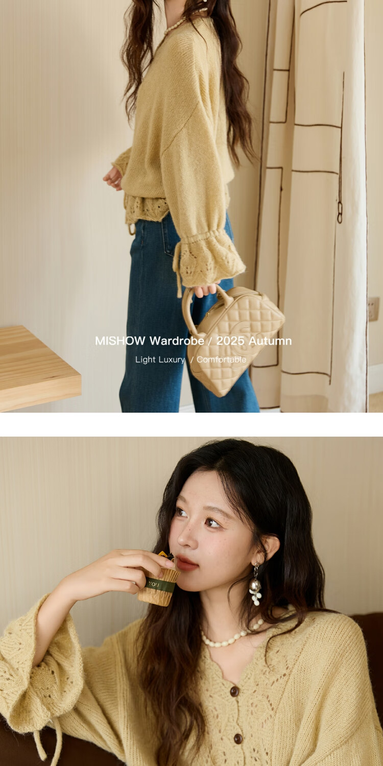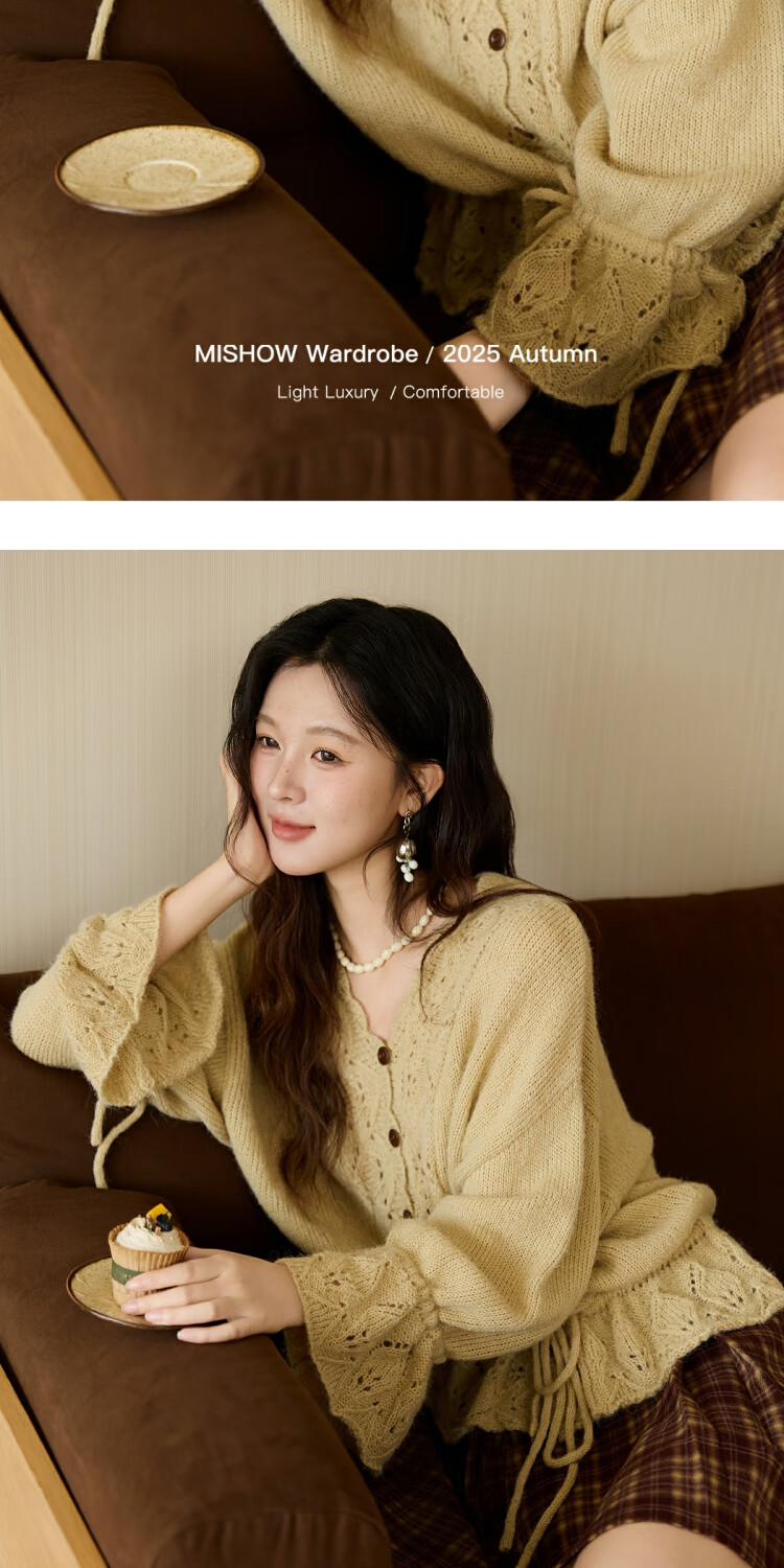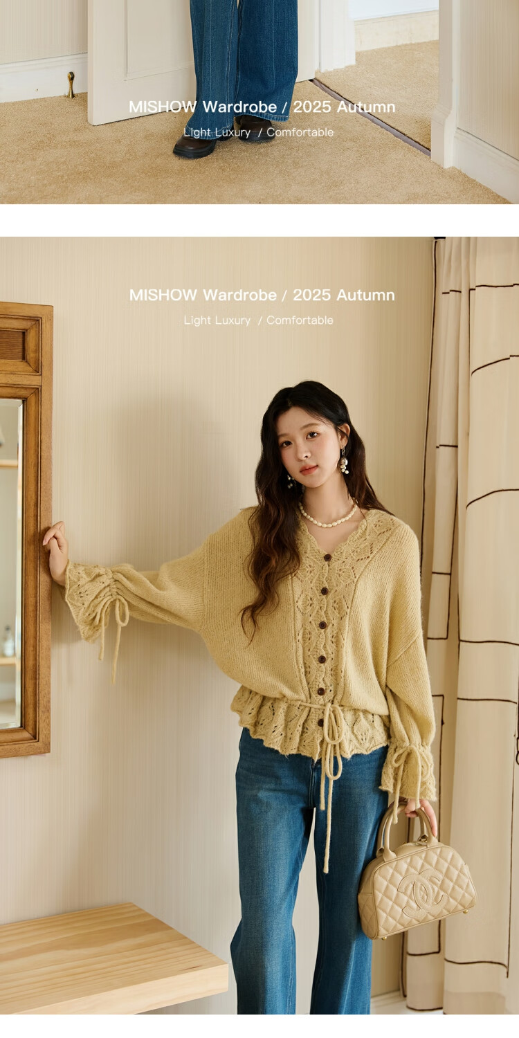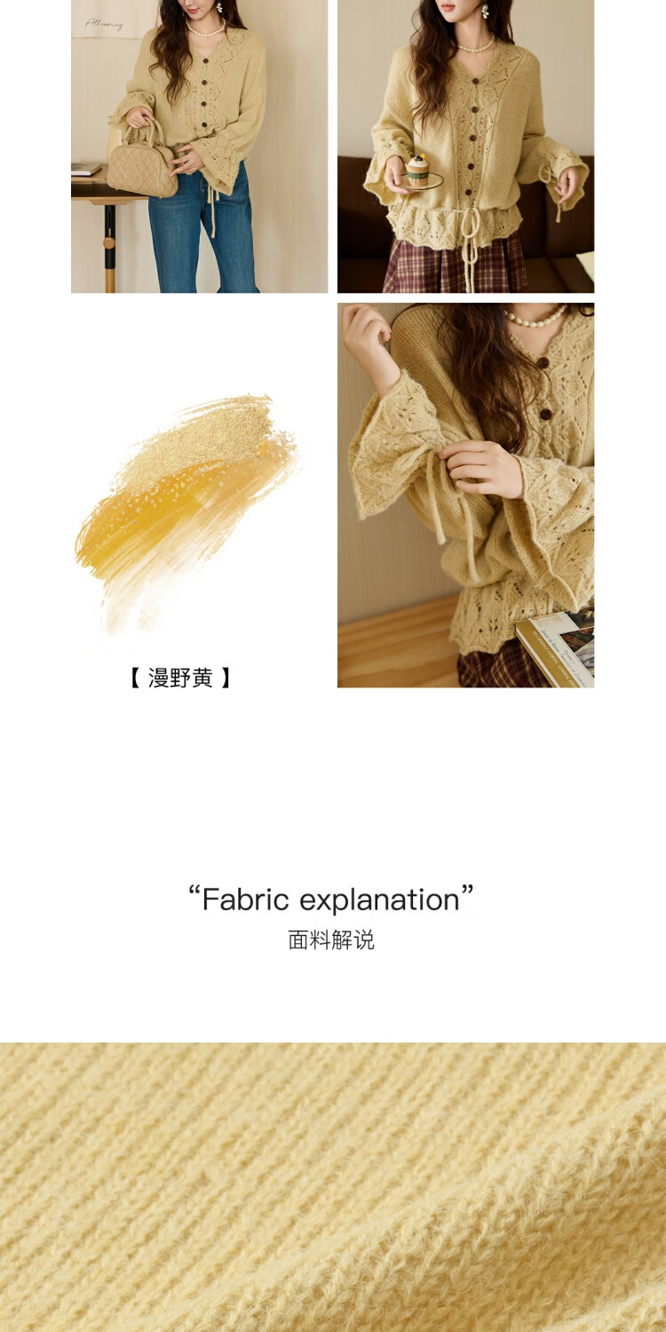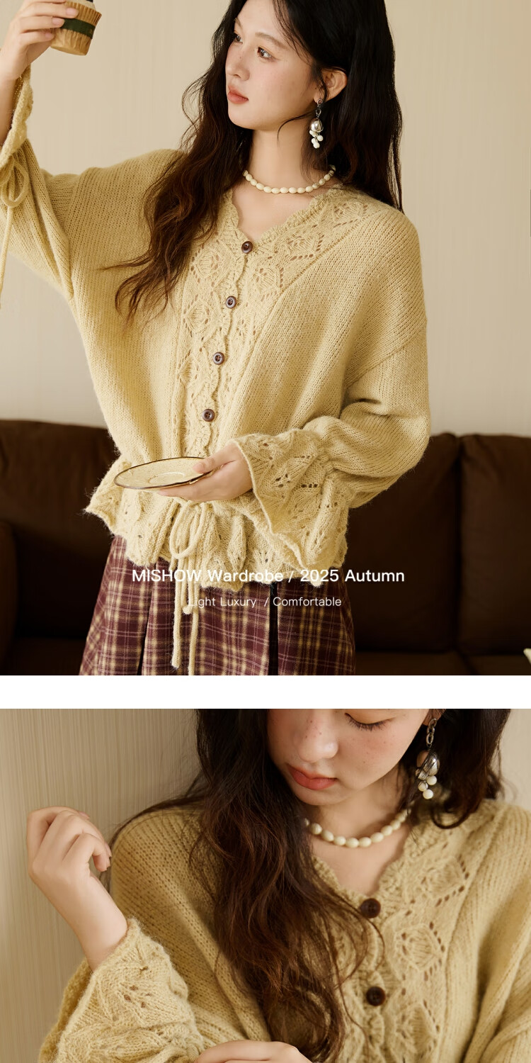Mystery Show Gentle Handmade Crochet Design Sweater Cardigan 2025 Autumn New Mohair Sweater Manye Yellow S