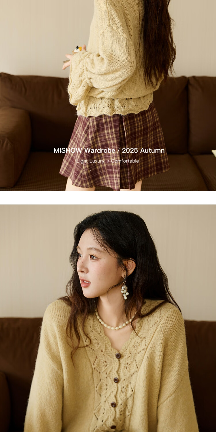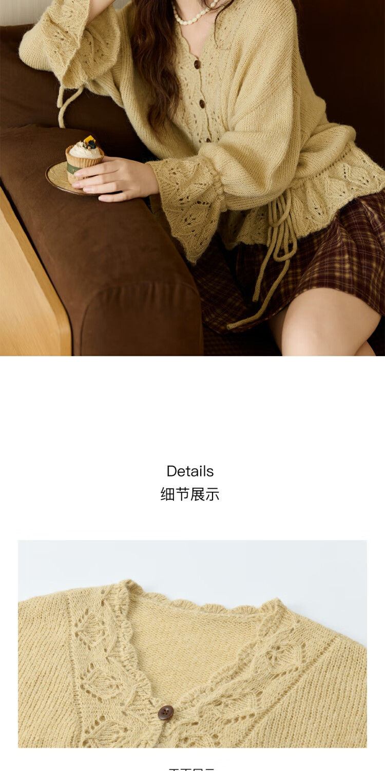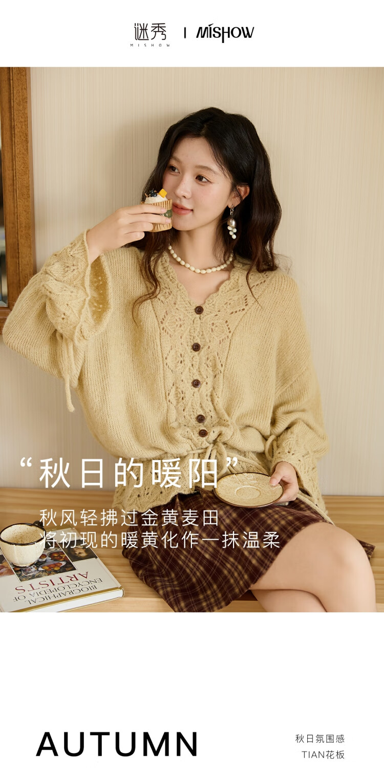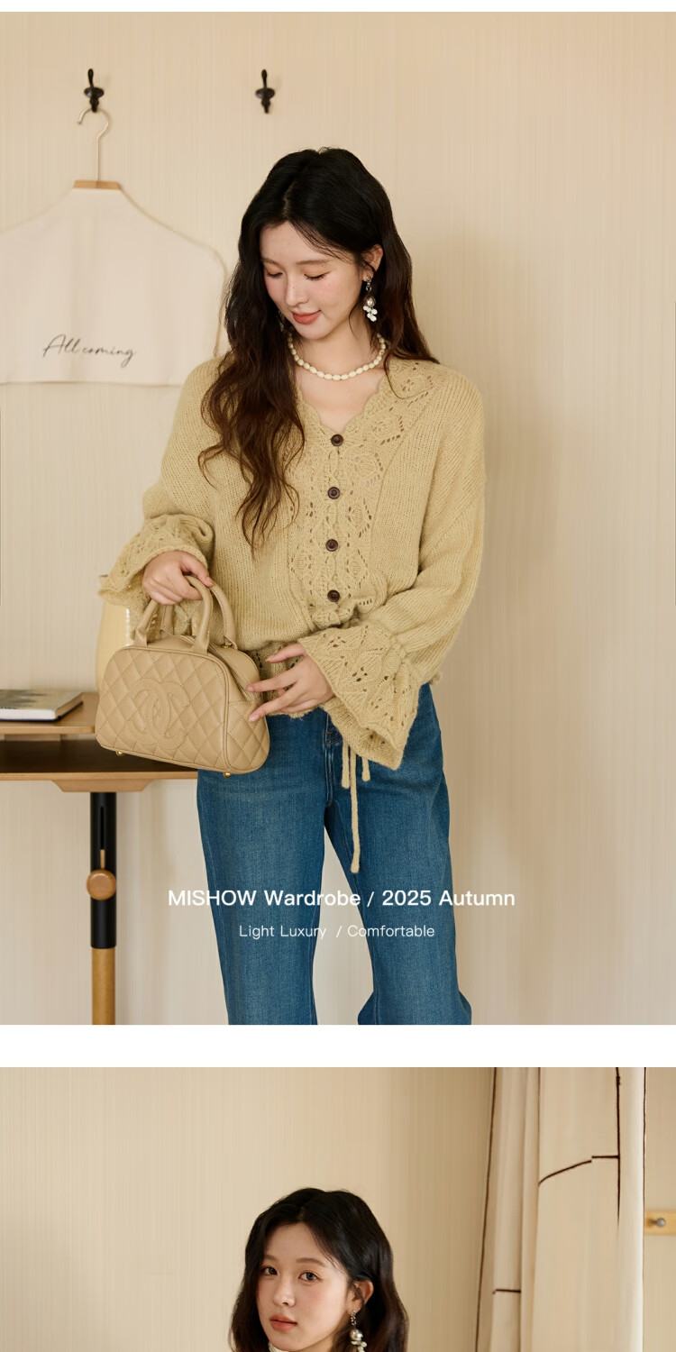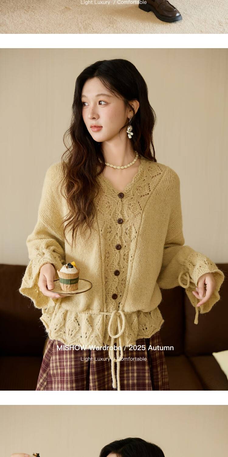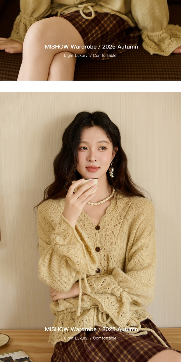 Mystery Show Gentle Handmade Crochet Design Sweater Cardigan 2025 Autumn New Mohair Sweater Manye Yellow S
