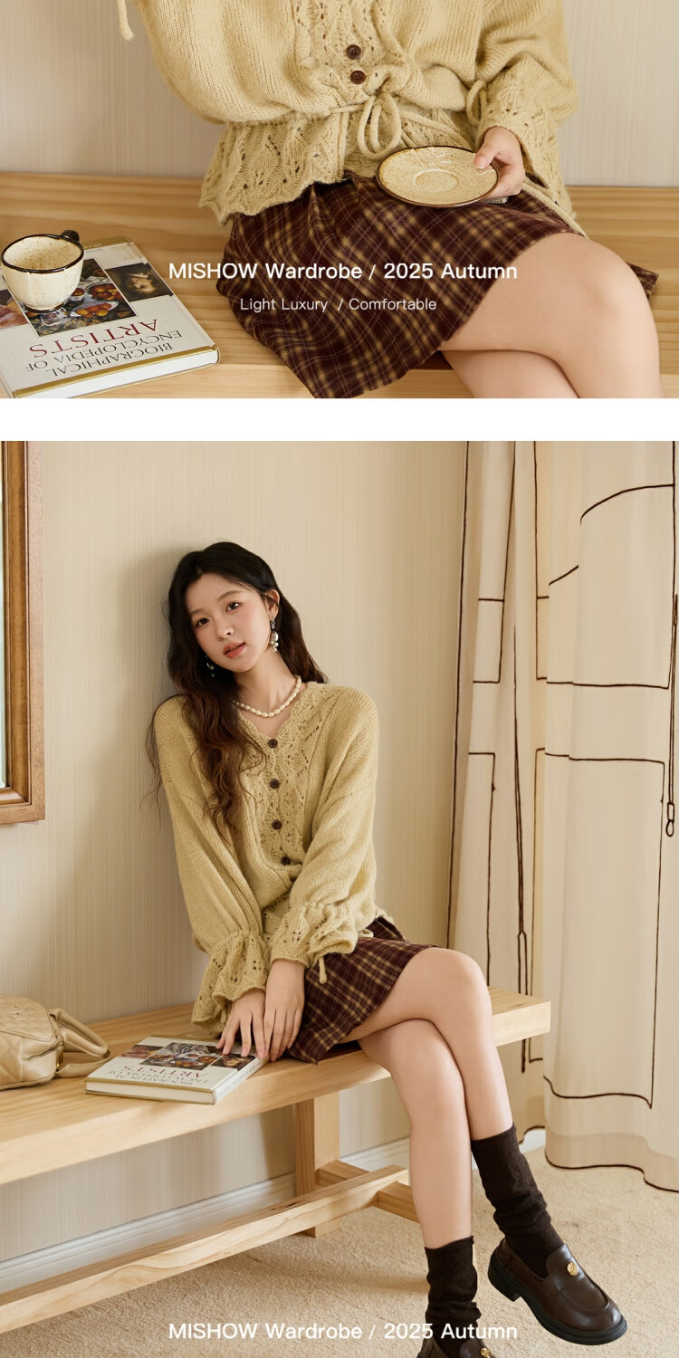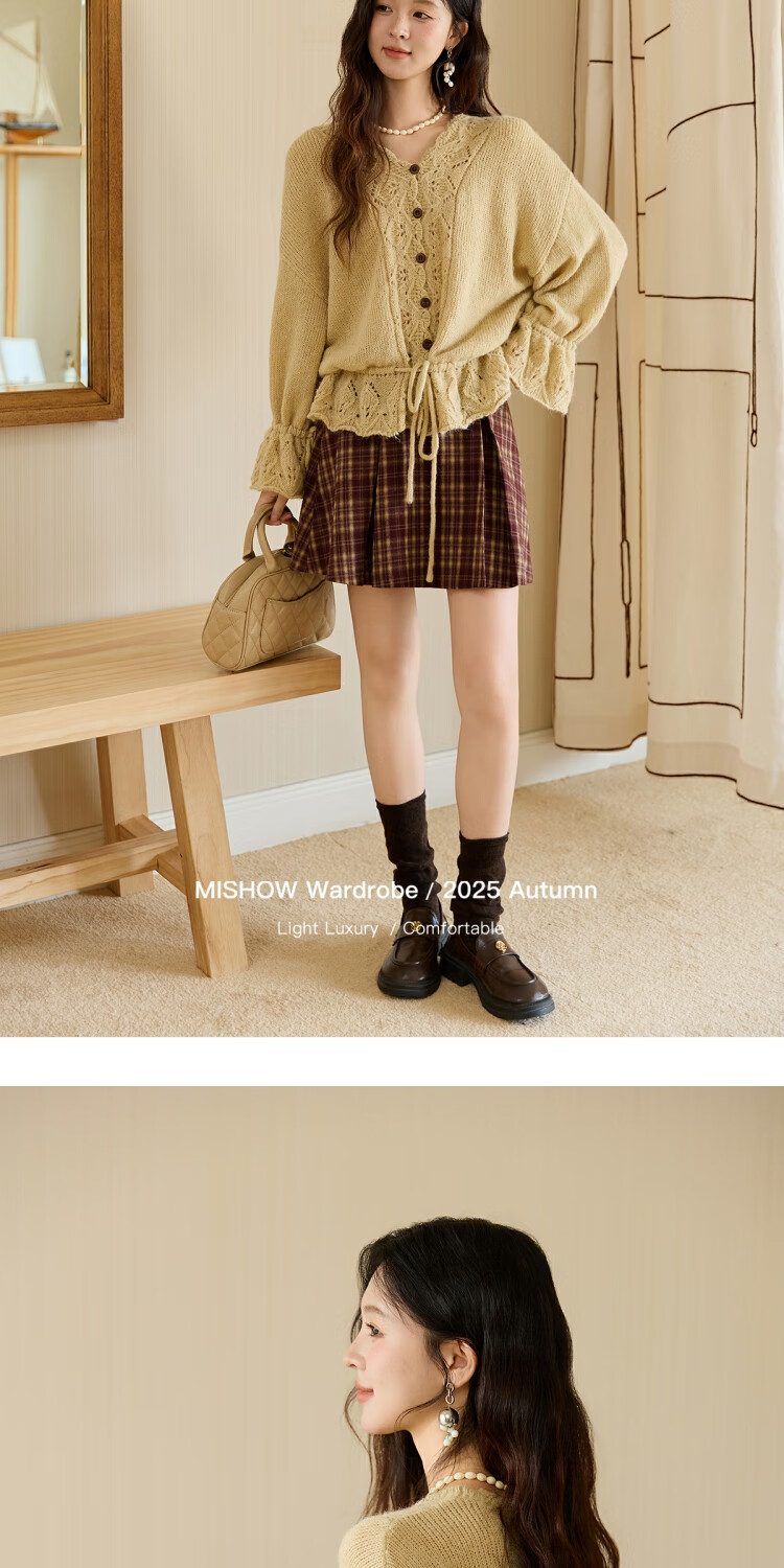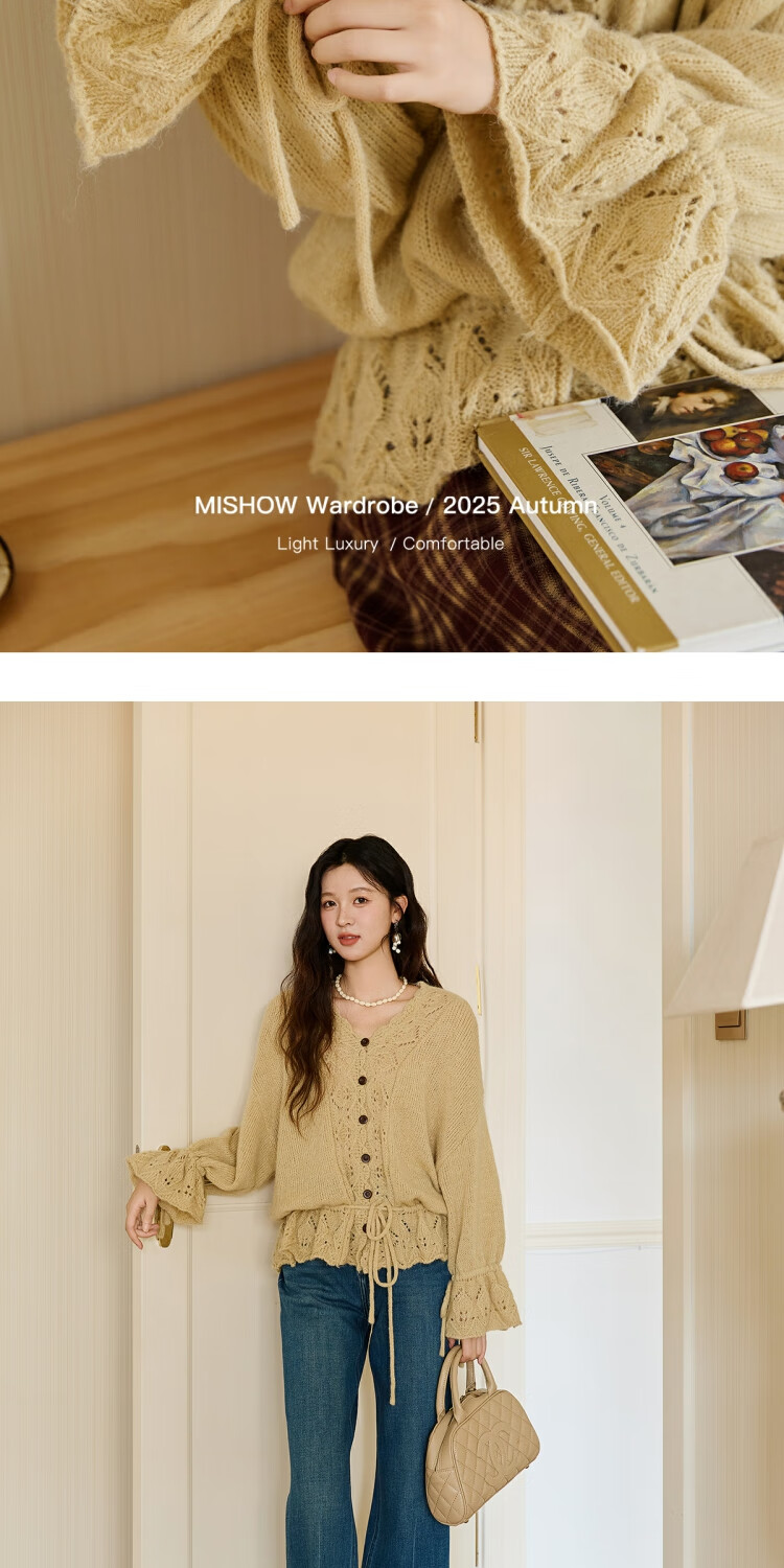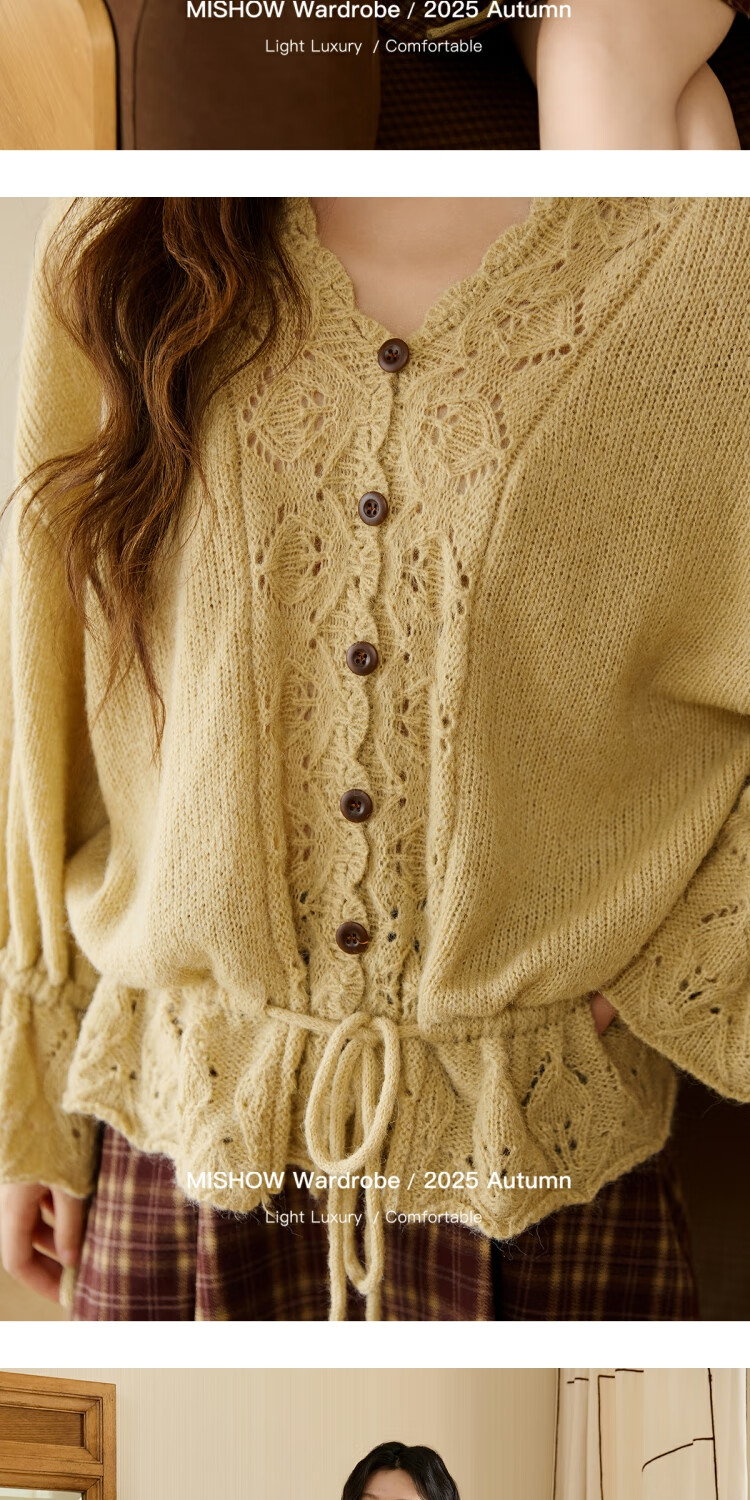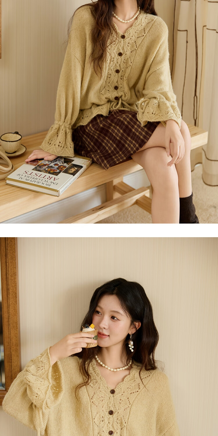Mystery Show Gentle Handmade Crochet Design Sweater Cardigan 2025 Autumn New Mohair Sweater Manye Yellow S