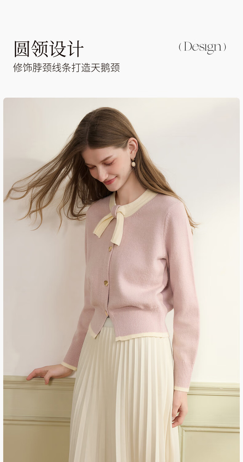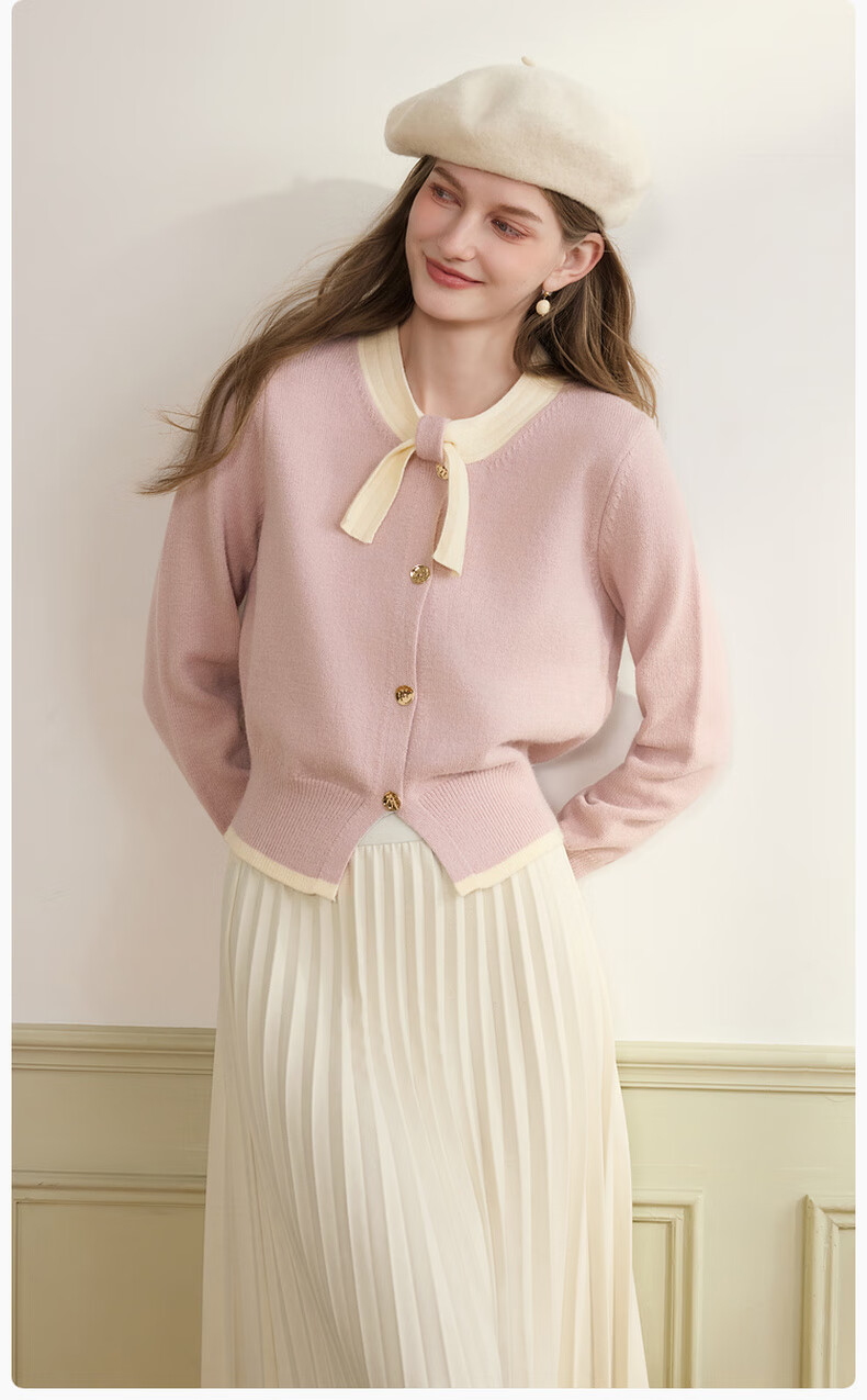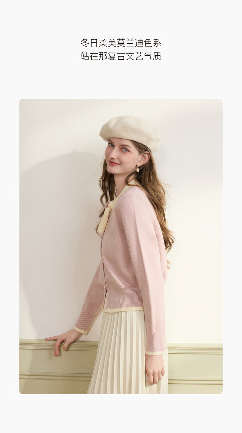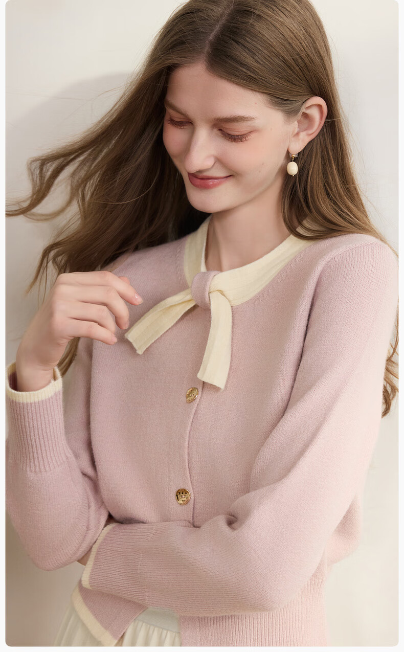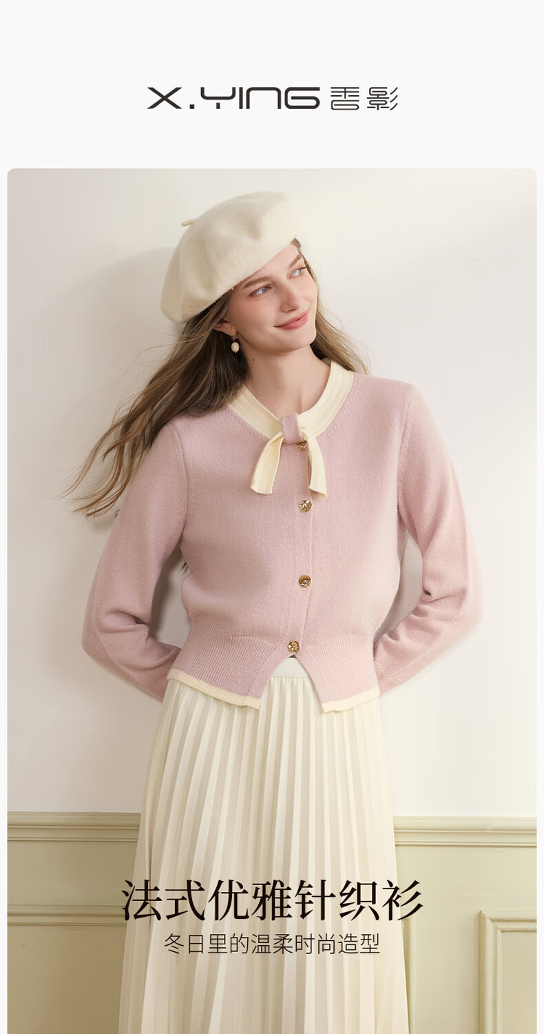 Xiangying Xiaoxiangfeng round neck knitted cardigan for women 2025 winter new style bow miu purple sweater jacket purple S