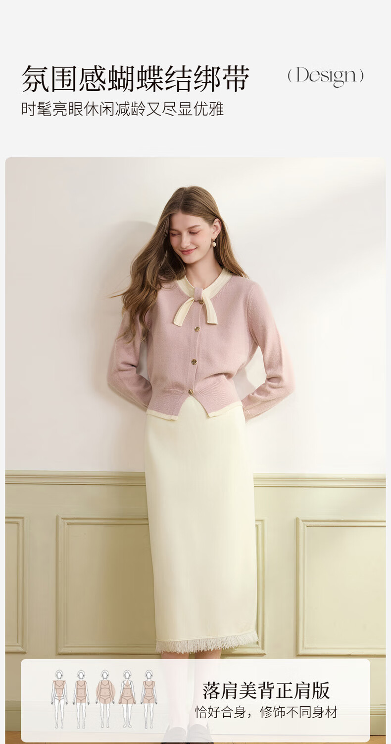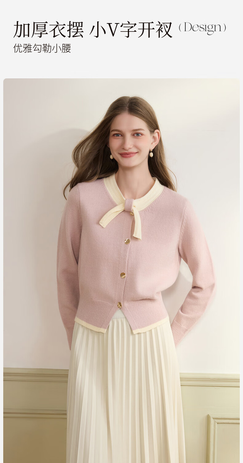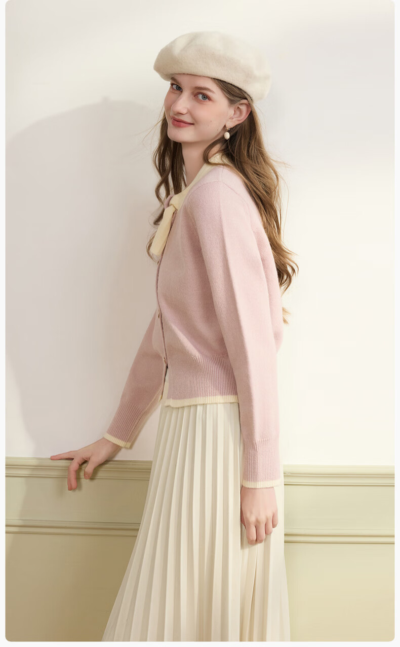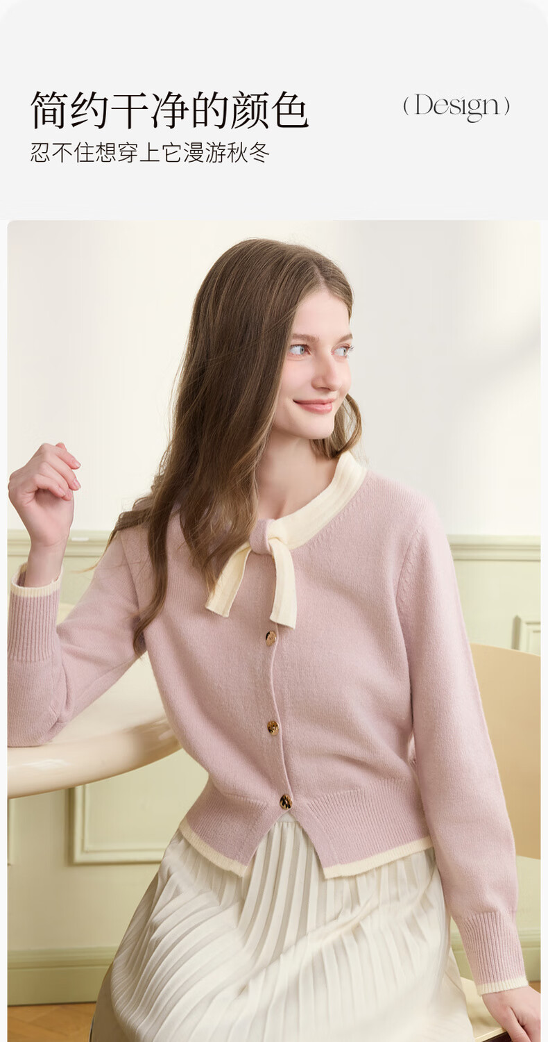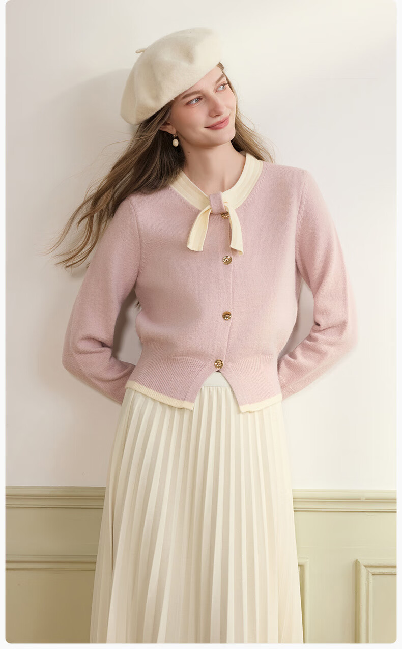 Xiangying Xiaoxiangfeng round neck knitted cardigan for women 2025 winter new style bow miu purple sweater jacket purple S