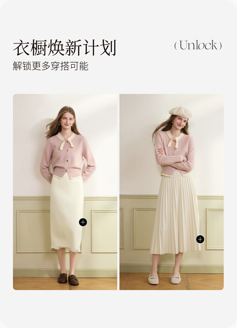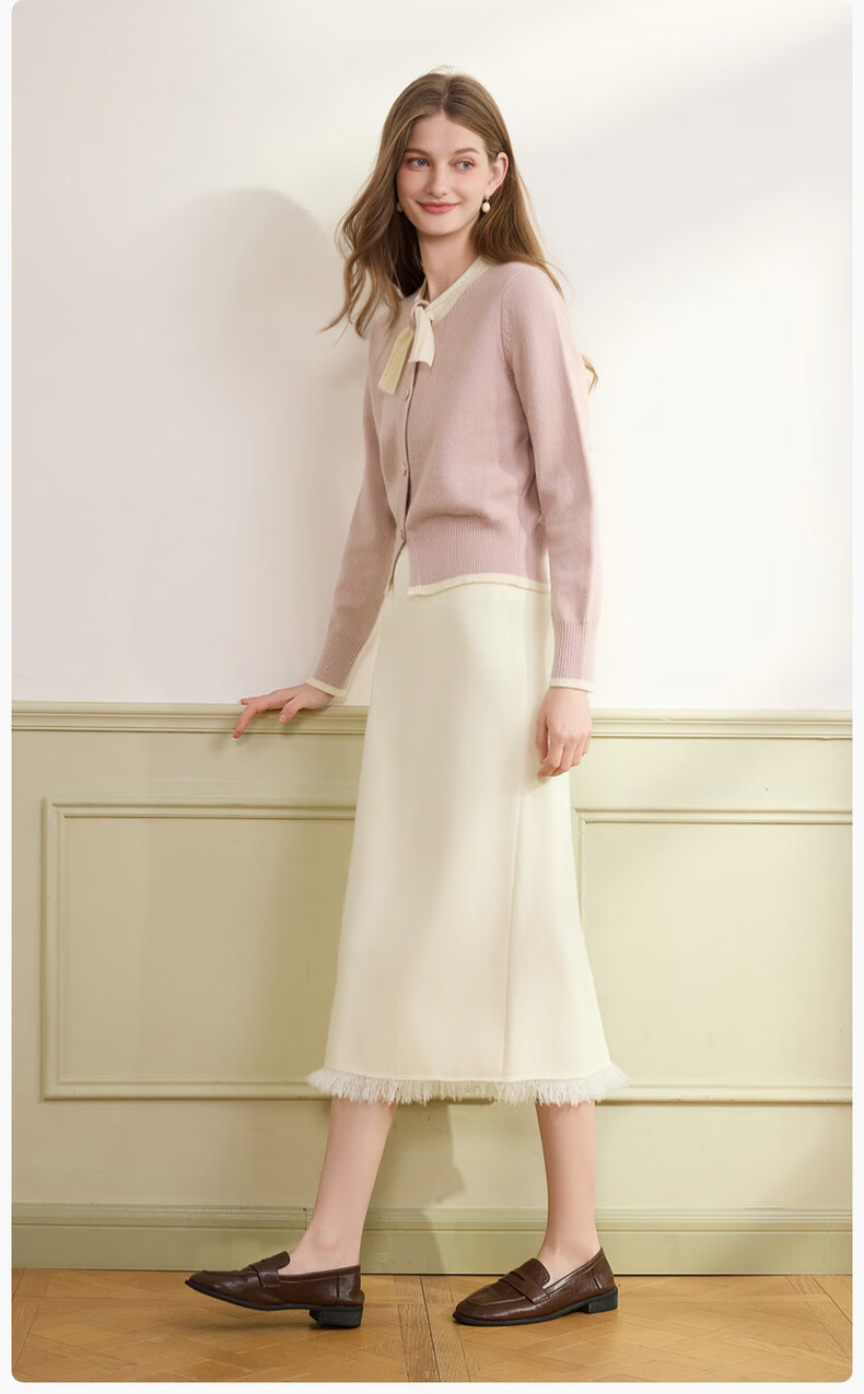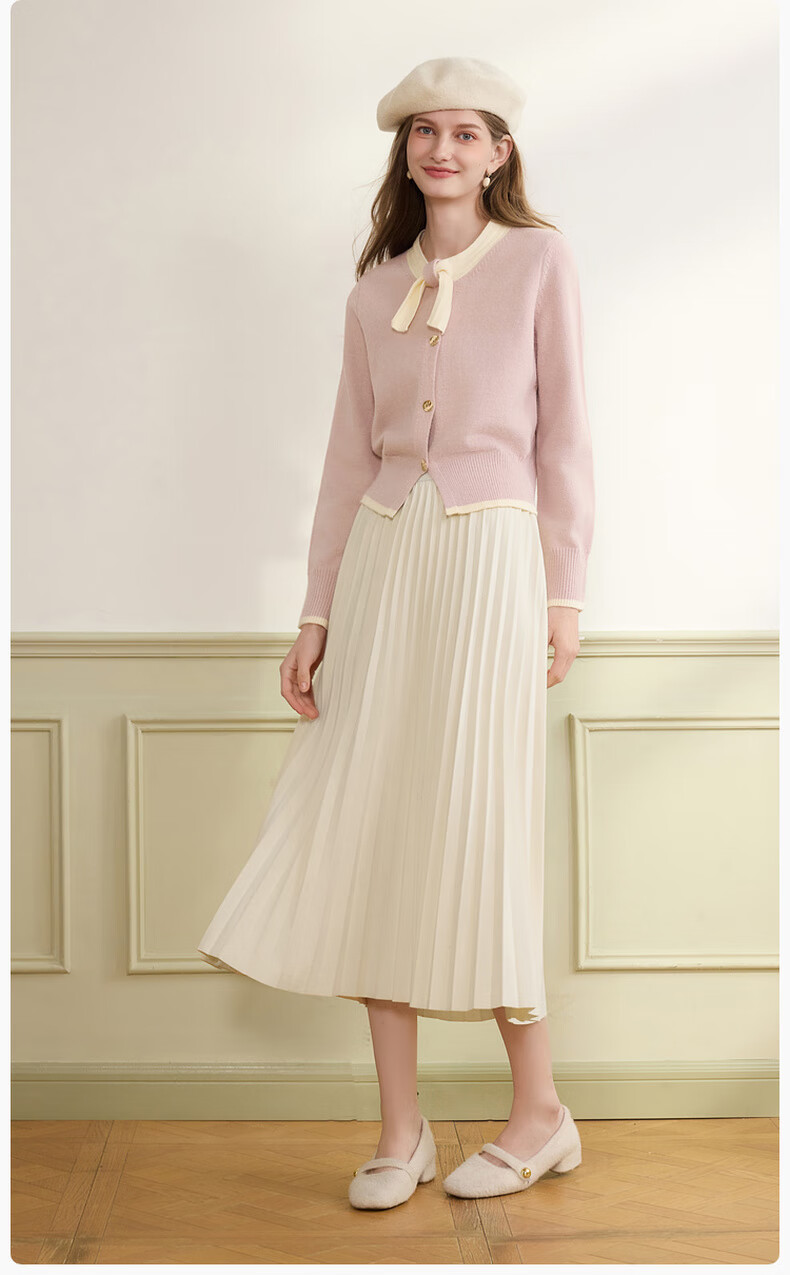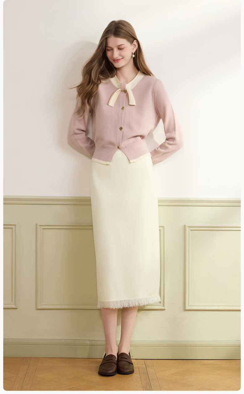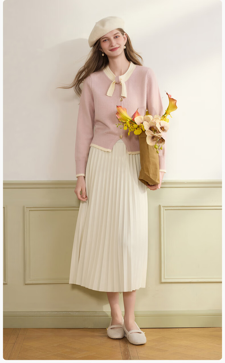 Xiangying Xiaoxiangfeng round neck knitted cardigan for women 2025 winter new style bow miu purple sweater jacket purple S