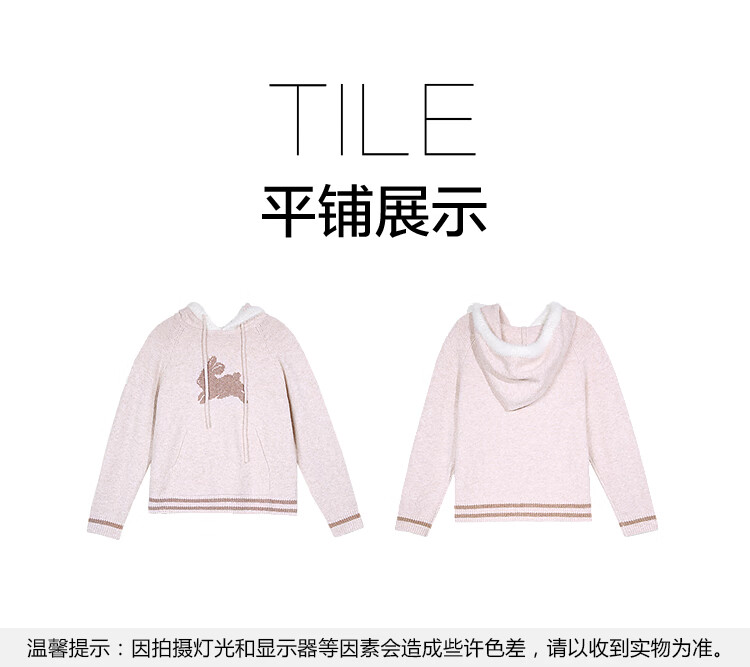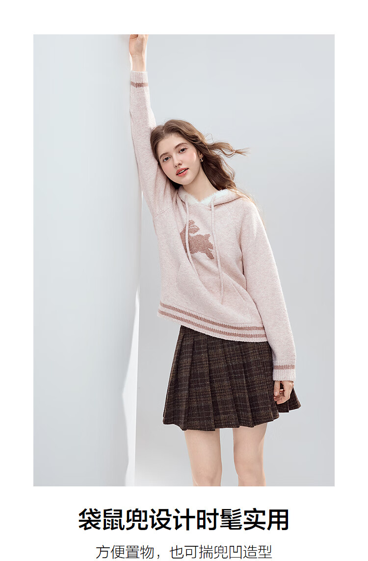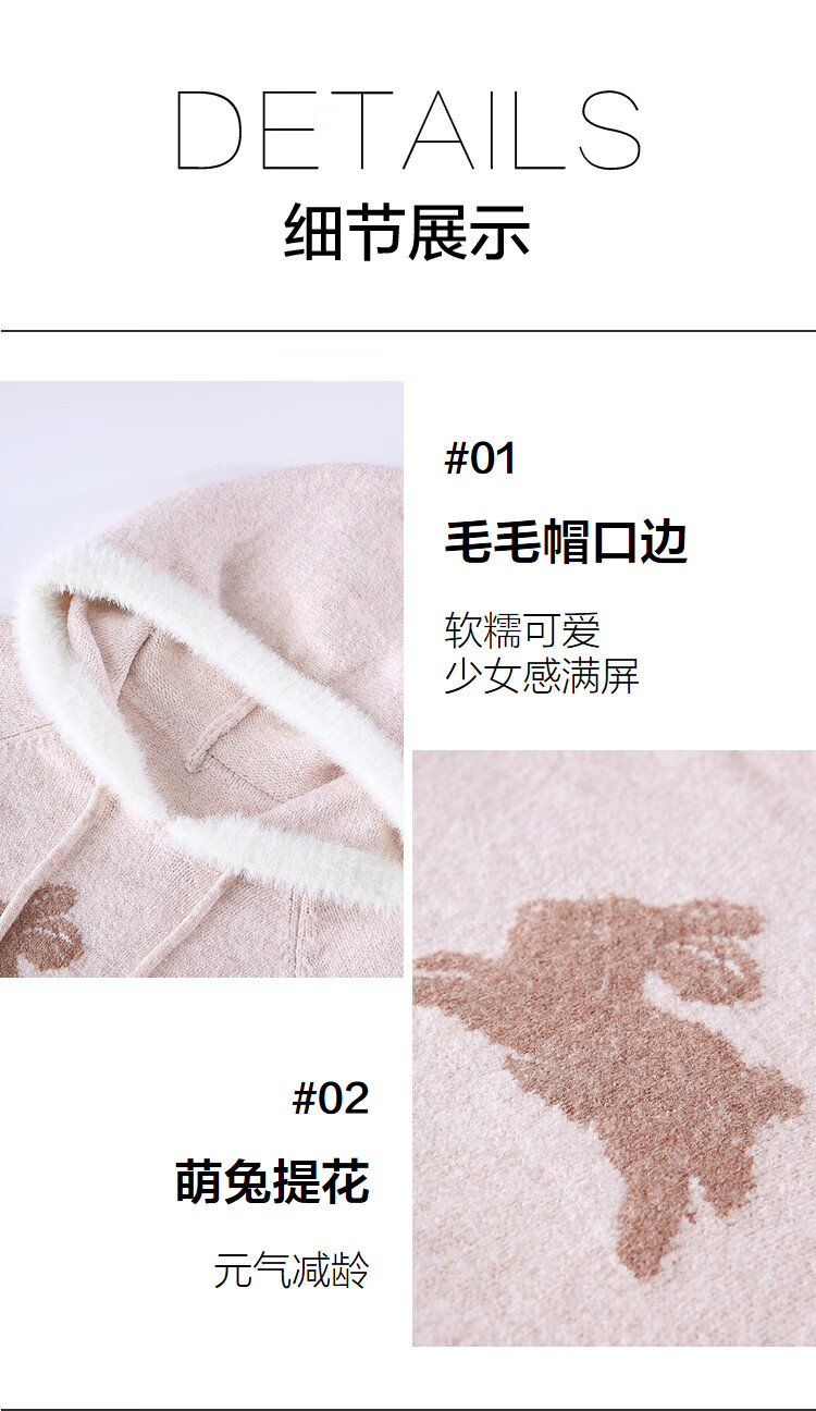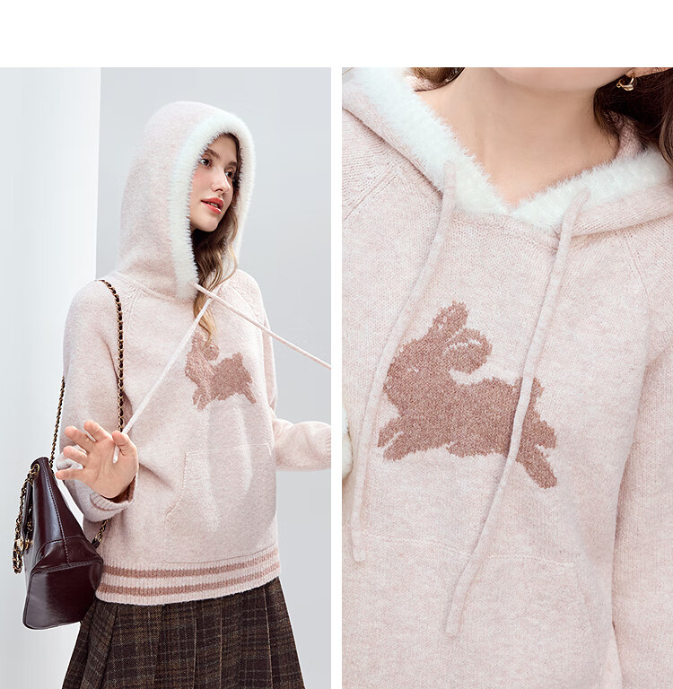 Betu Women's 2025 Winter New Sweater Cute Rabbit Jacquard Fur Hat Mouth Sweet Top Women 2510T52 Light Pink S