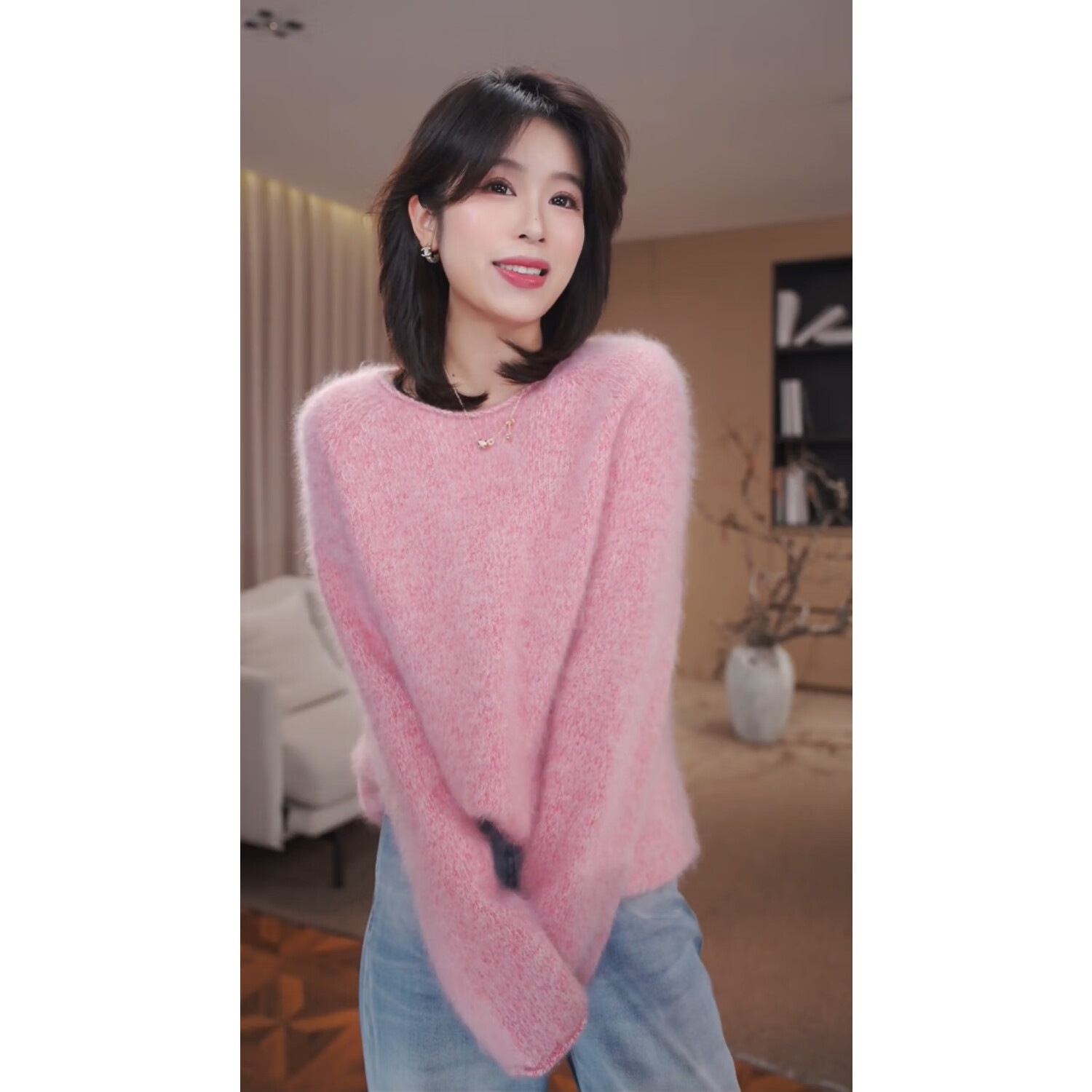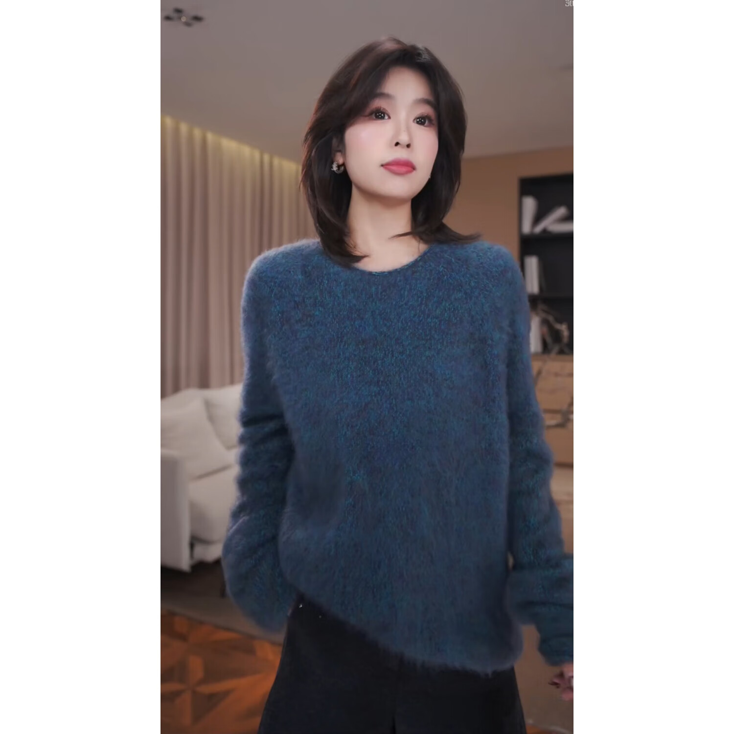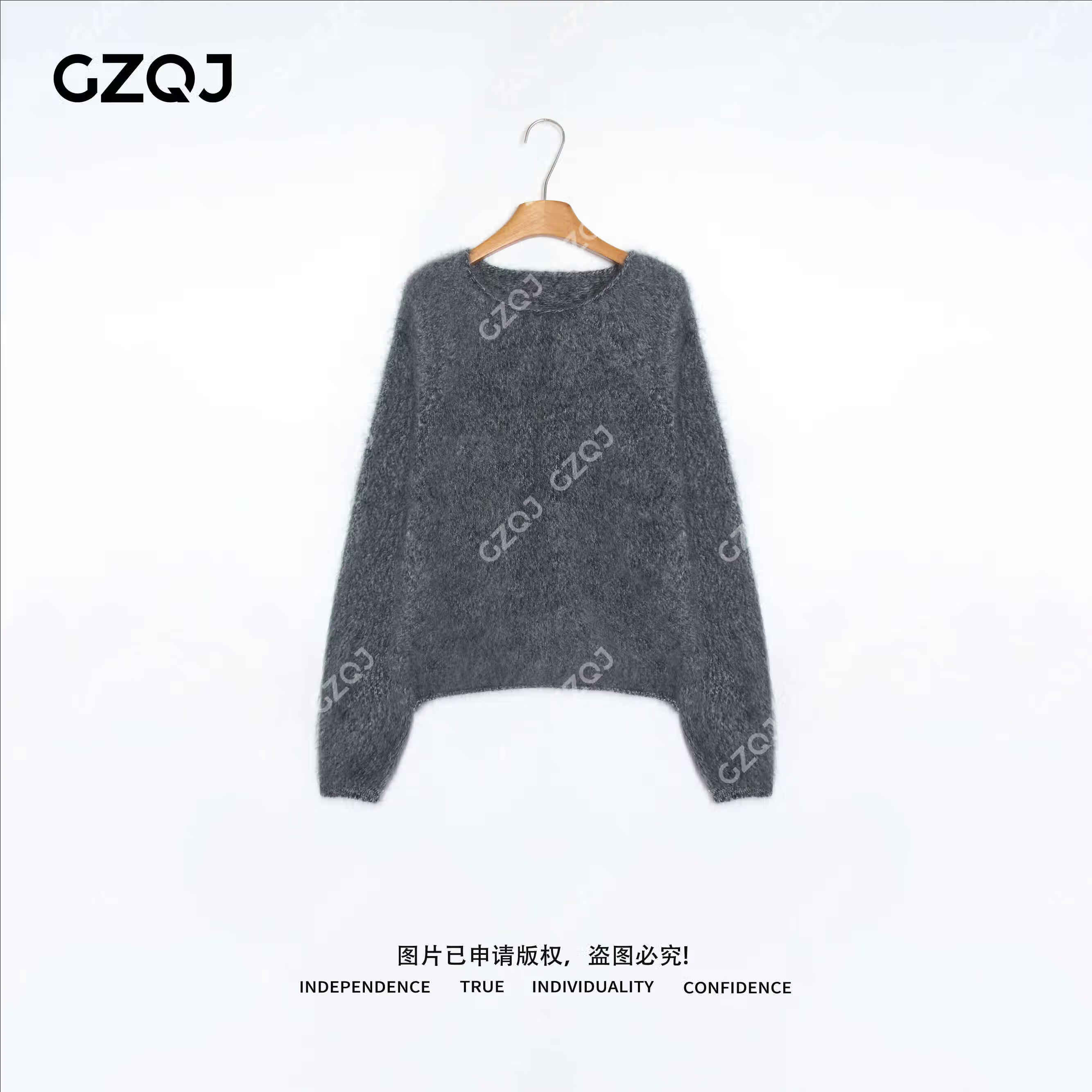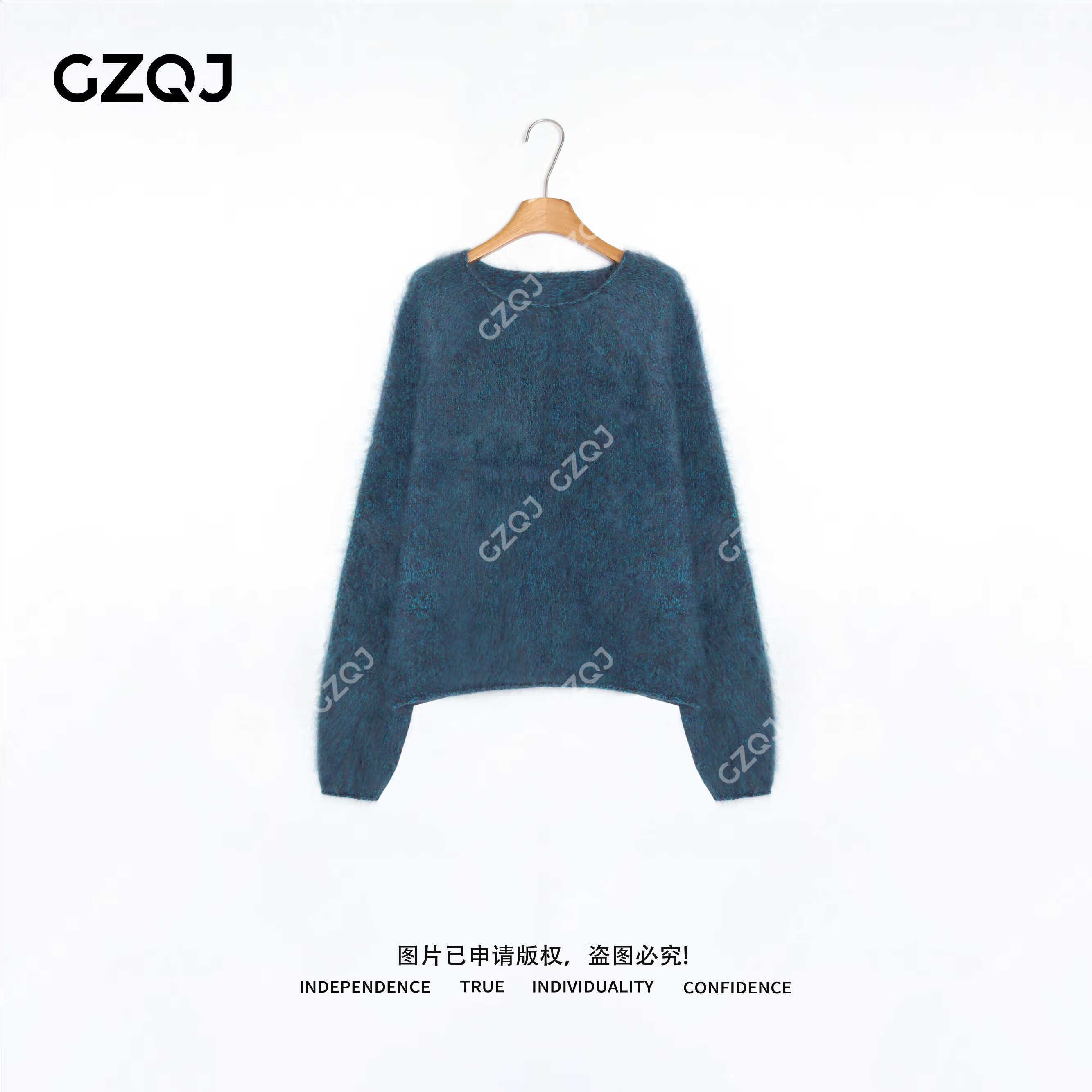 GZQJ Lazy Life Sheep Wool Brushed Round Neck Autumn and Winter Women's Sweater Women's 2025 New Winter 6450 Blue M 38 Recommended 120-140 Jin Jin equals 0.5 kg
