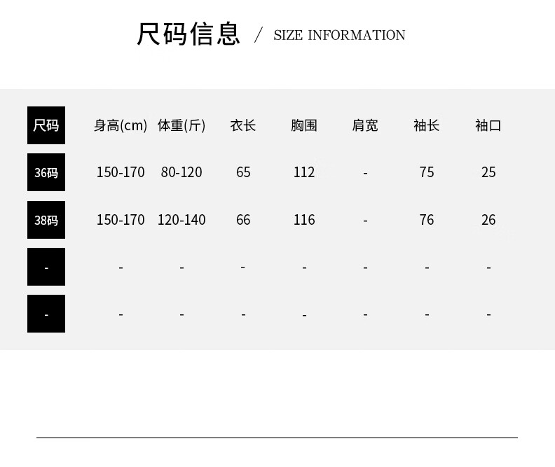 China (cm) 160-165/84-86 165-170 / 88-90 167-172 / 92-96 168-173 / 98-102 170-176 / 106-110