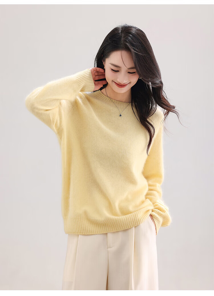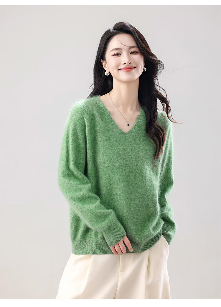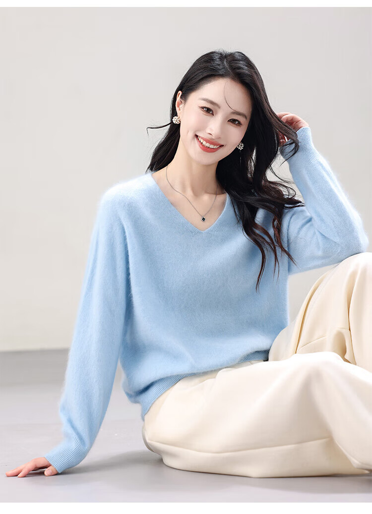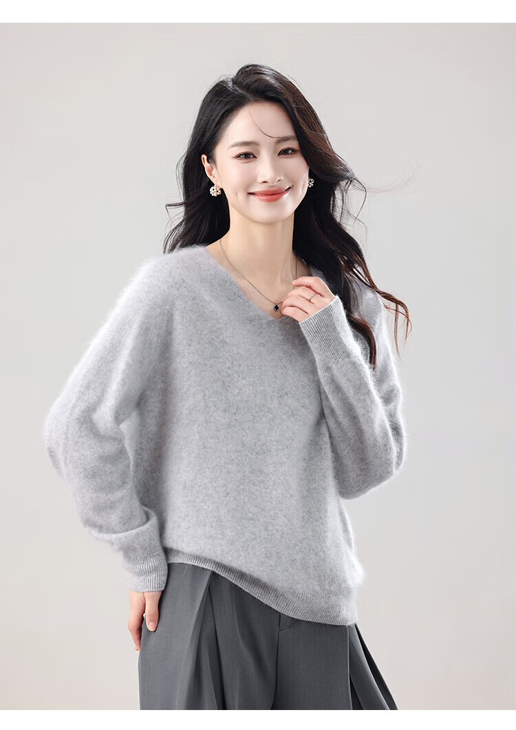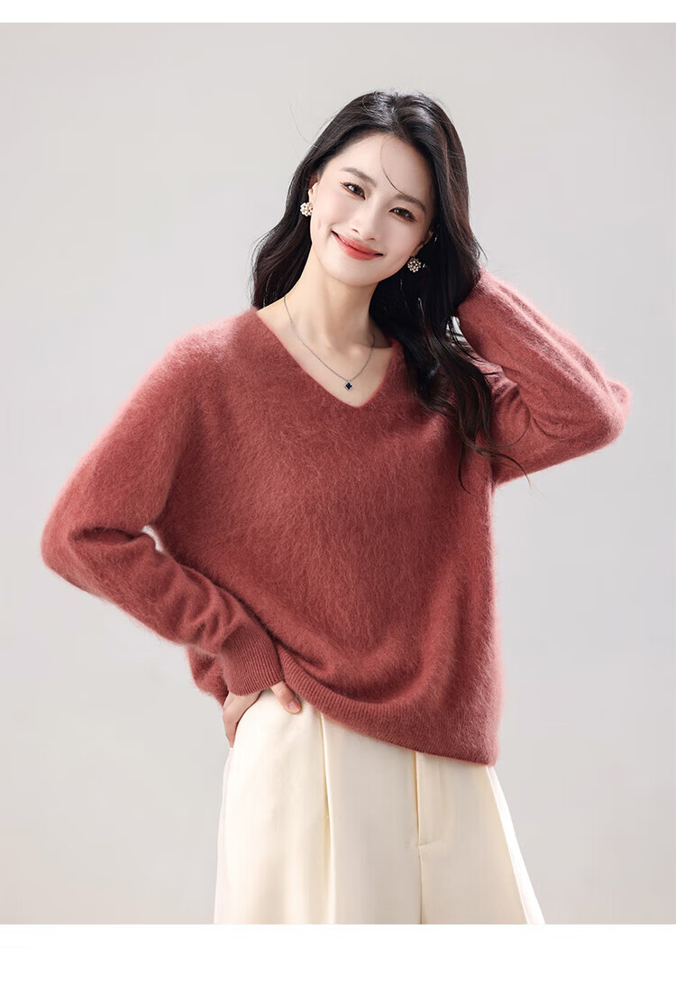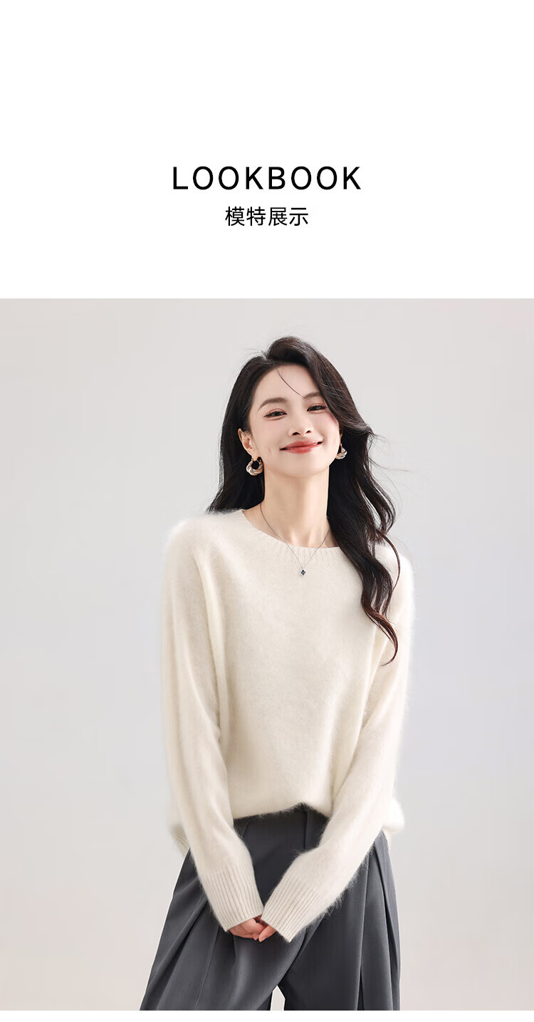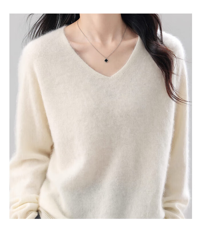 MUSLEY QUEEN popular brushed series 25 autumn and winter new lazy sweater seamless one-piece women's cashmere sweater sweater V-neck - feather white one size 90-145Jin Jin equals 0.5 kg 150-175cm