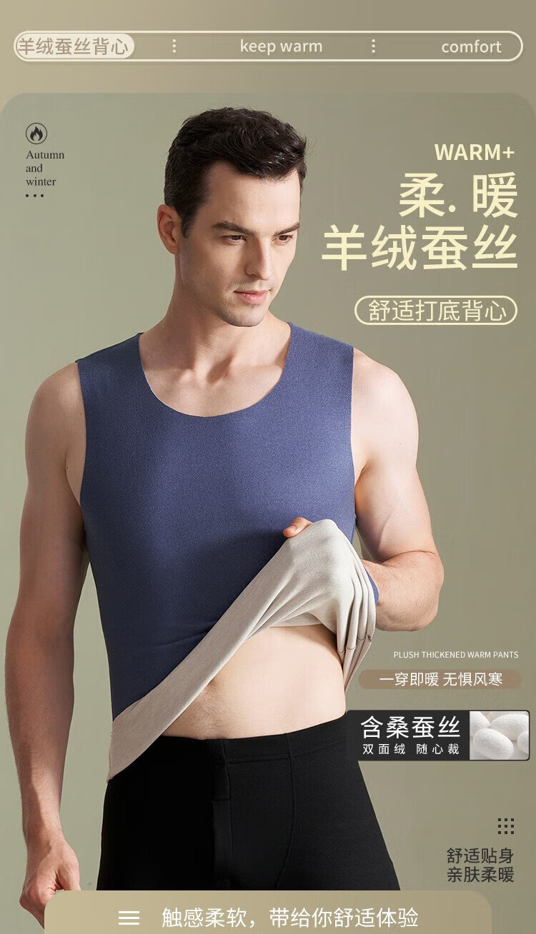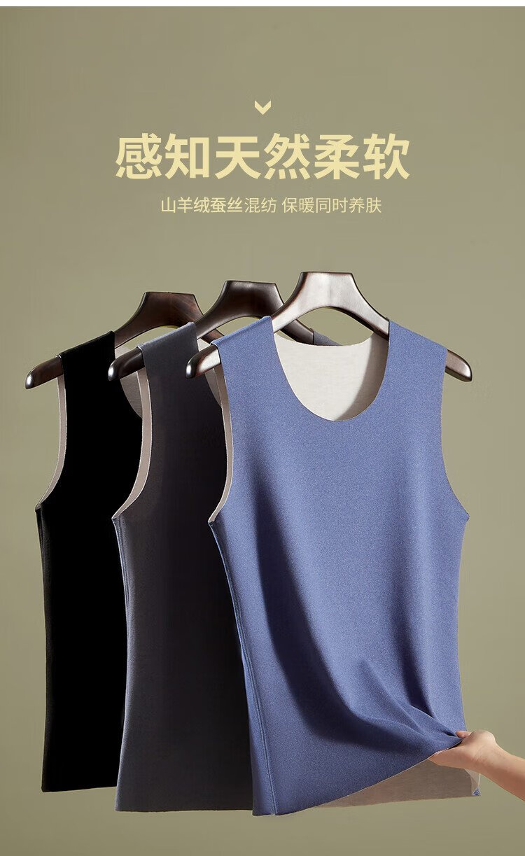 Hengyuanxiang 2 pieces men's thermal vest for men, including cashmere silk vest, German velvet bottoming underwear, waistcoat vest for men