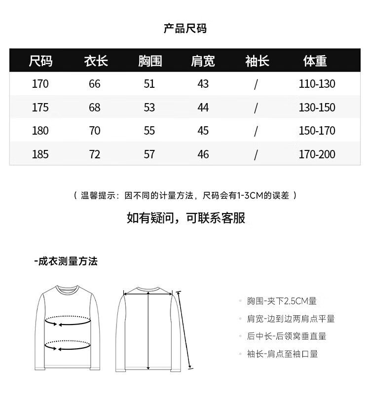 China (cm) 165 / 88-90 170 / 96-98 175 / 108-110 180 / 118-122 185 / 126-130