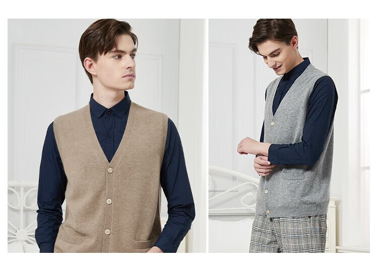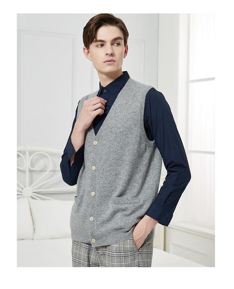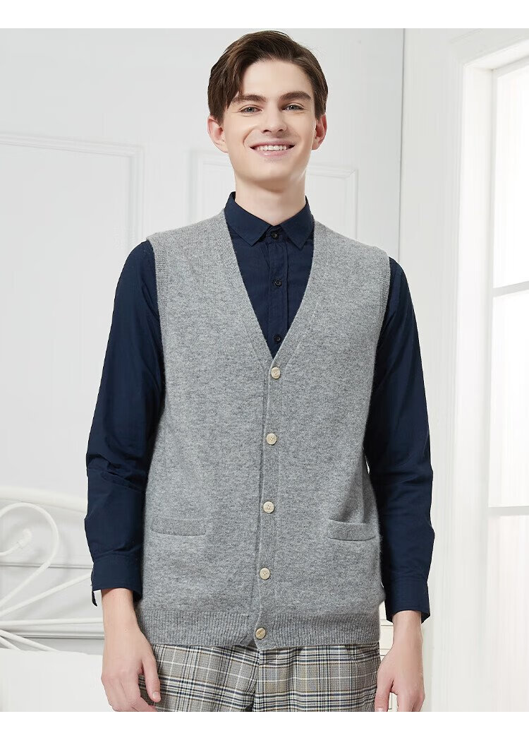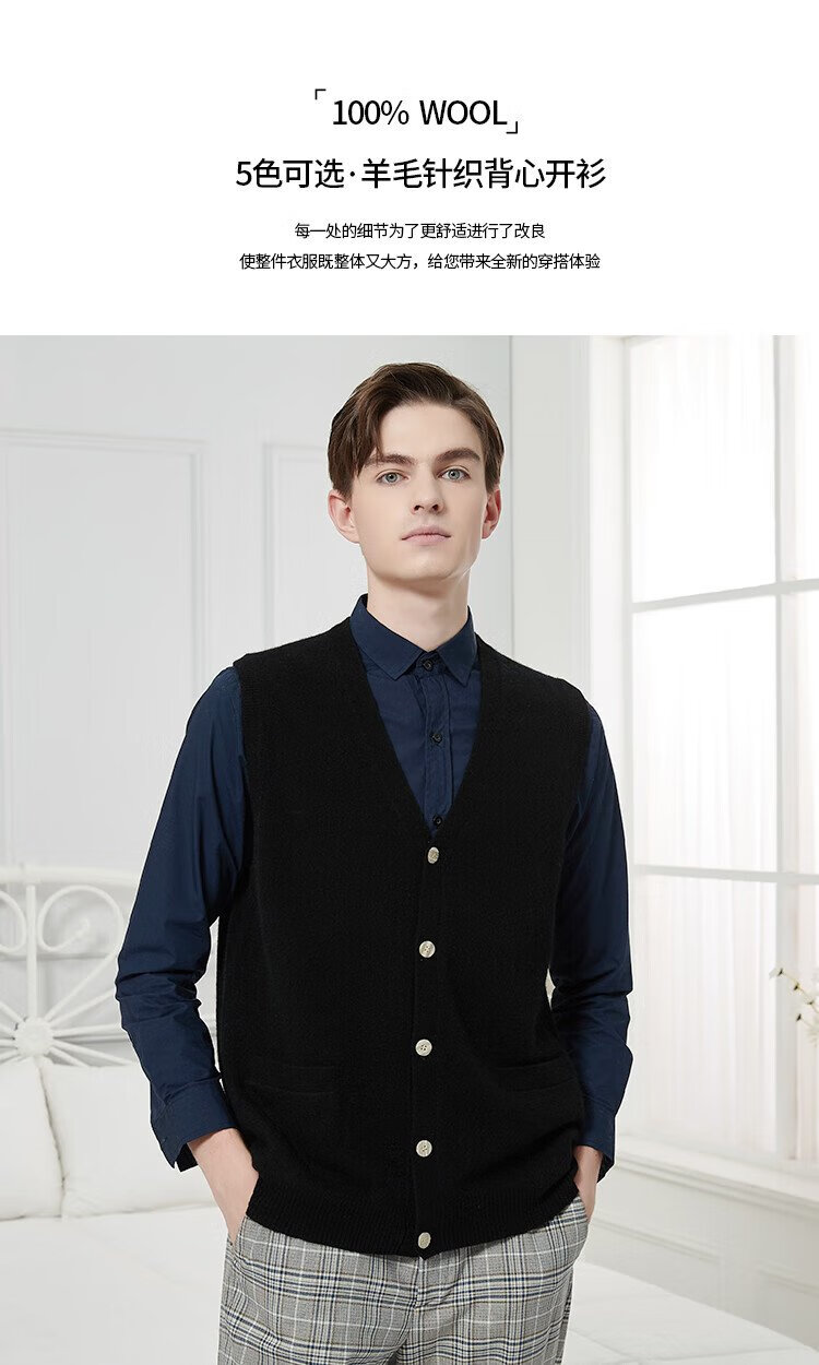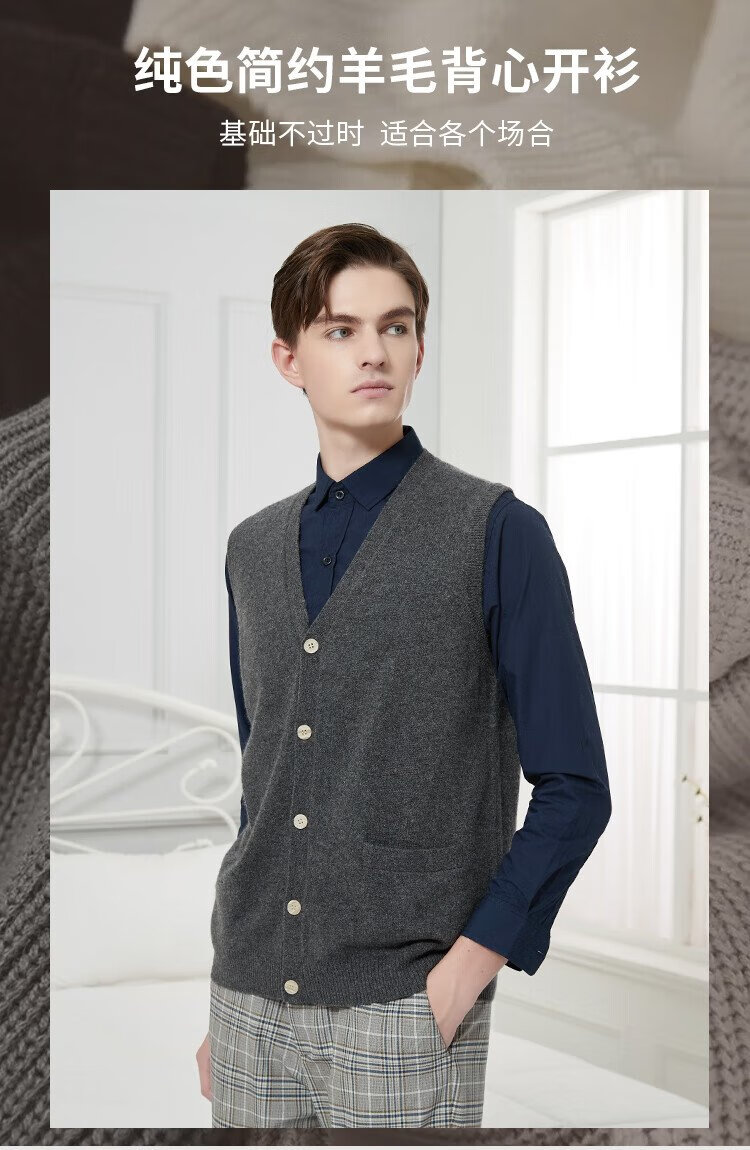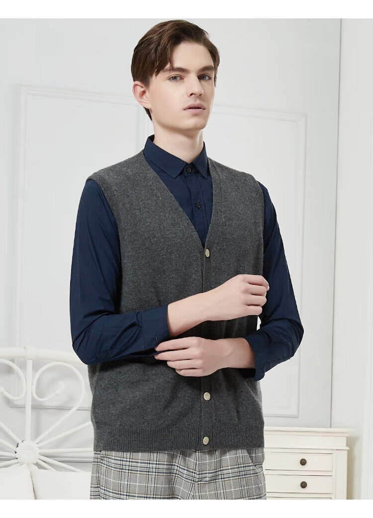 Hengyuanxiang 100% wool vest cardigan men's vest vest waistcoat knitted sweater gift dark gray 180