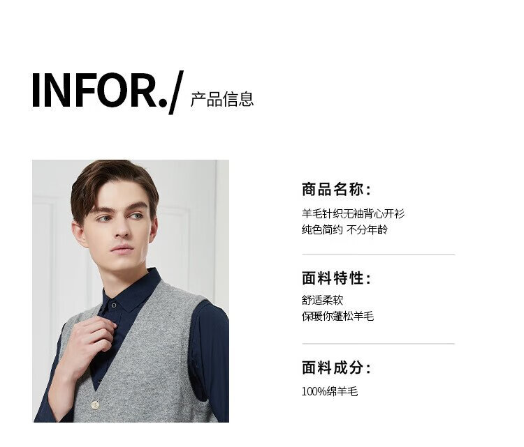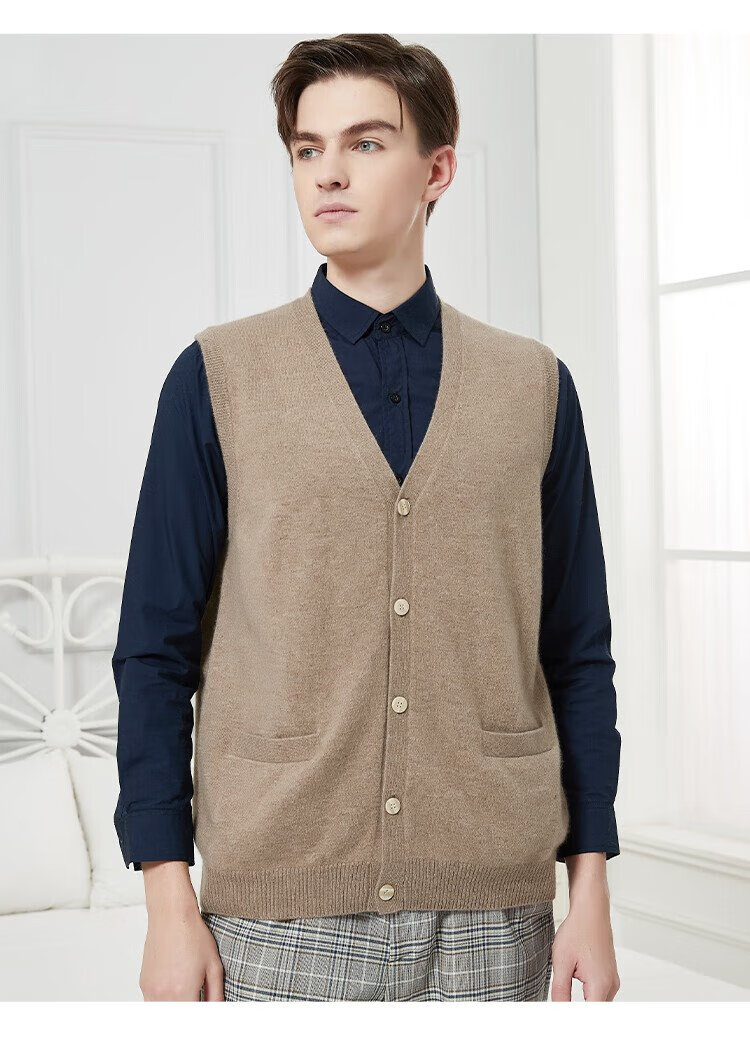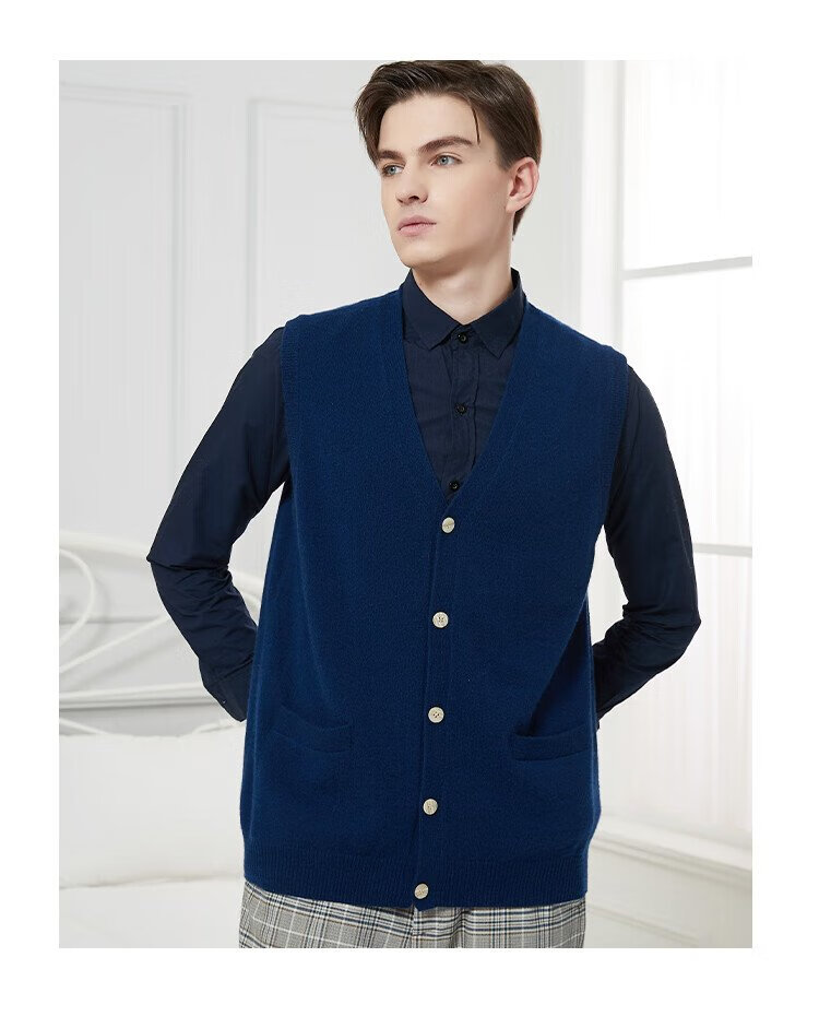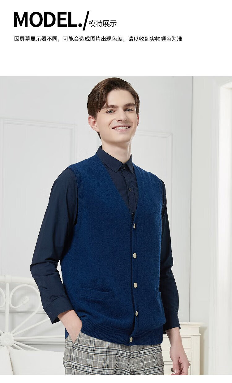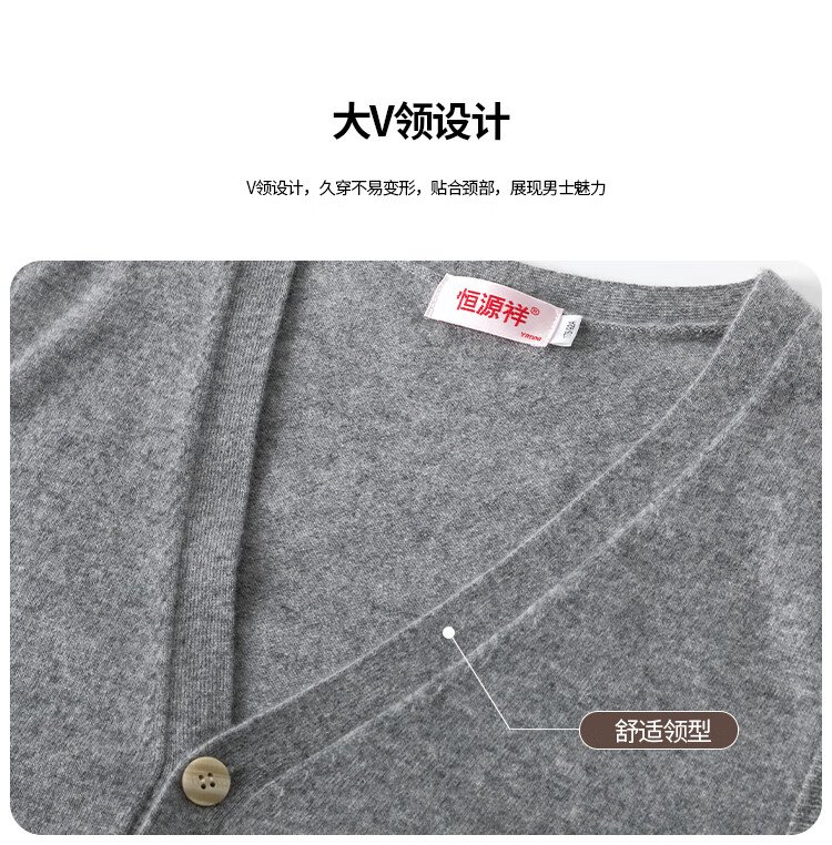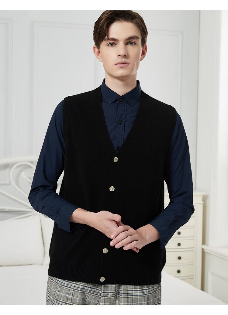 Hengyuanxiang 100% wool vest cardigan men's vest vest waistcoat knitted sweater gift dark gray 180