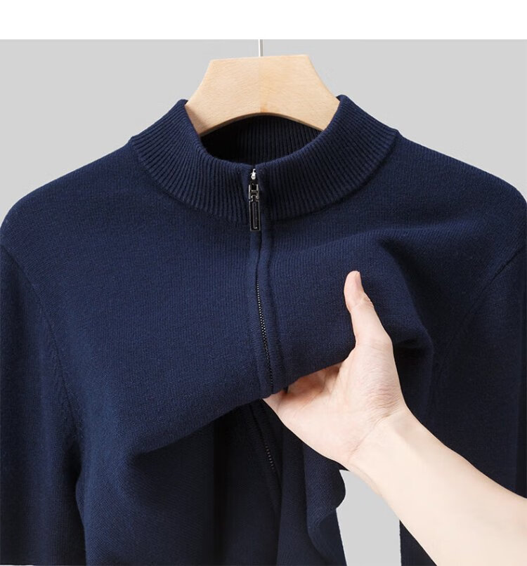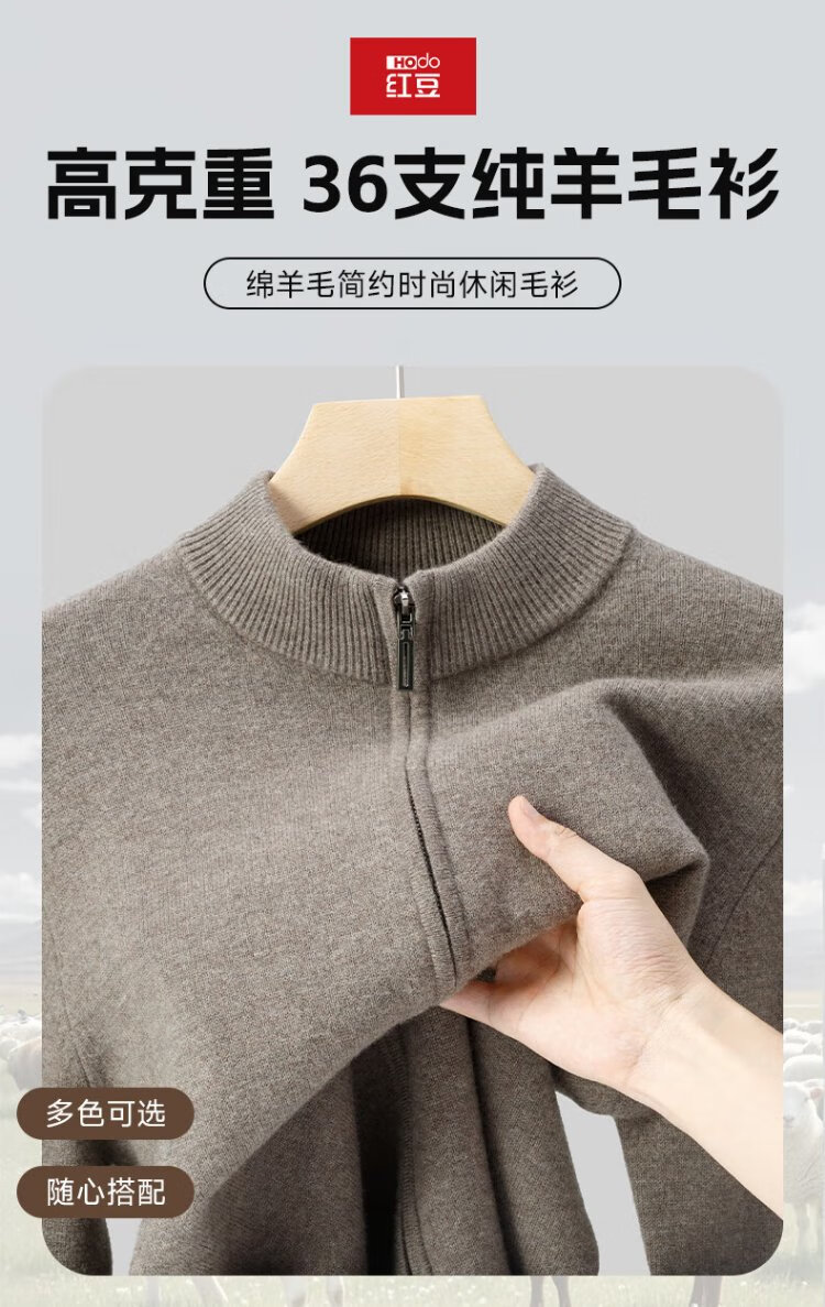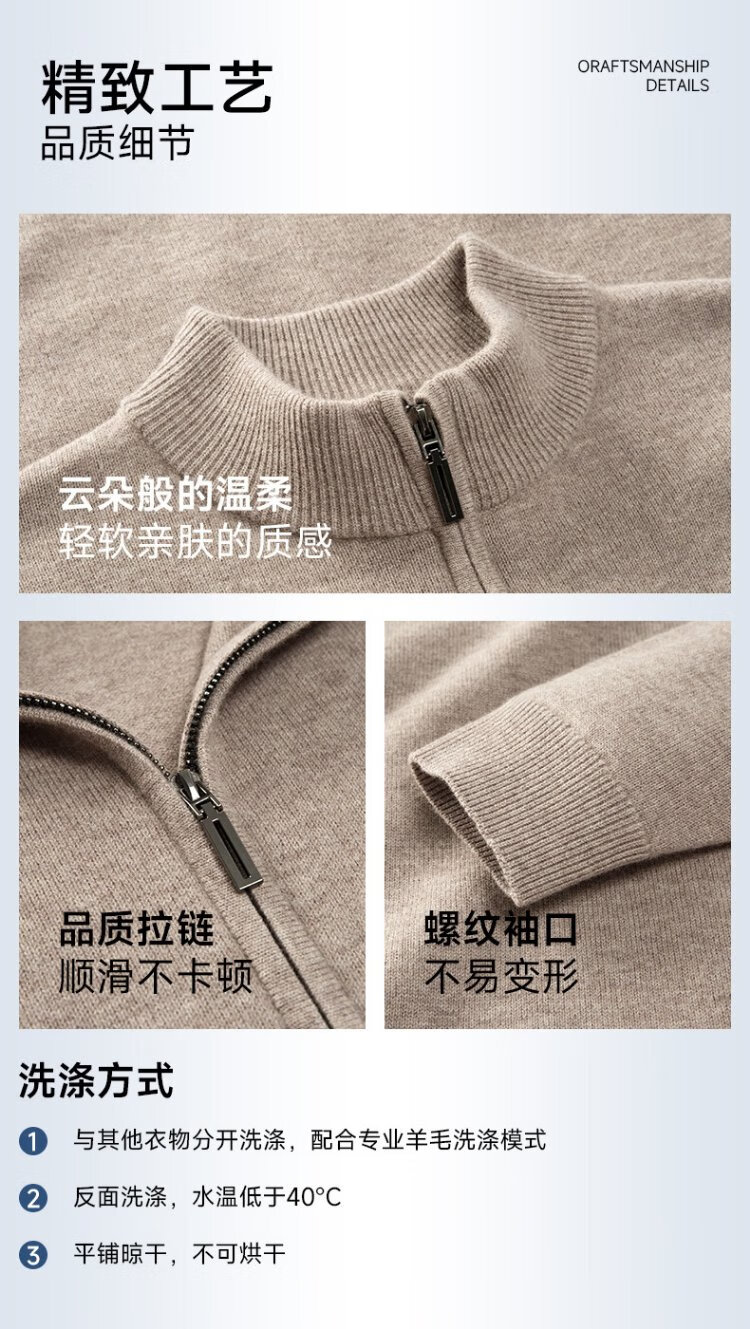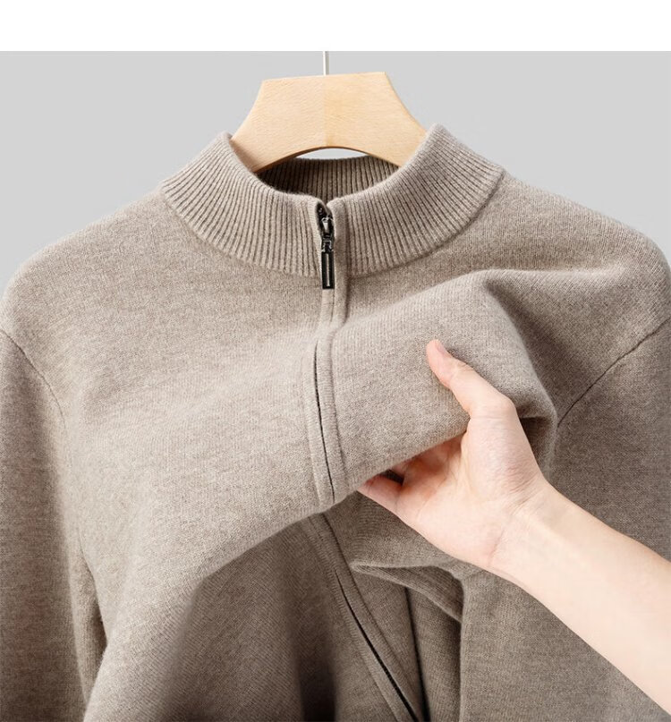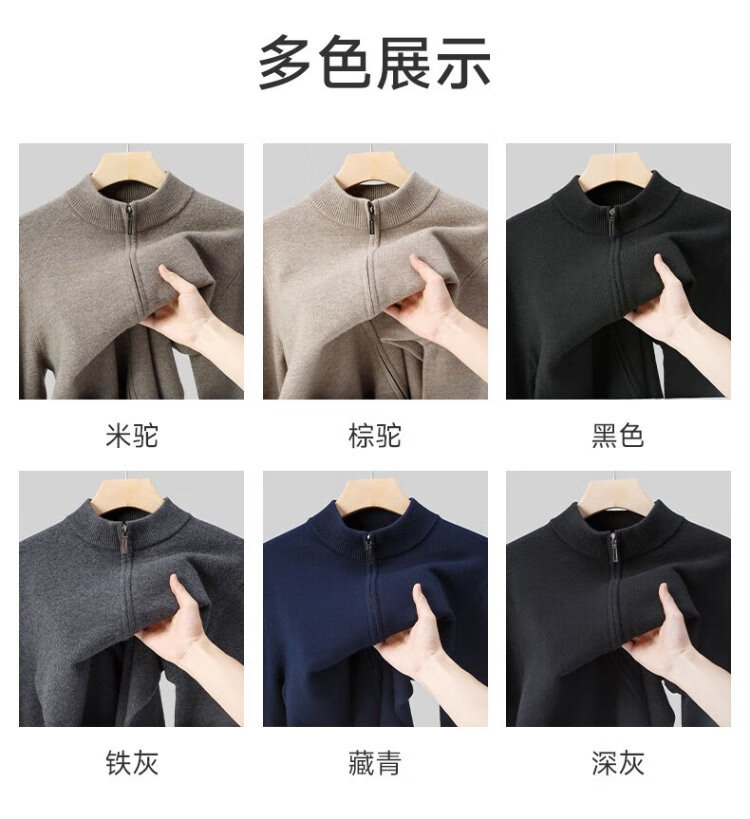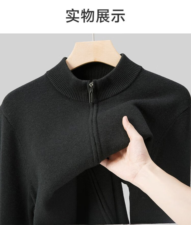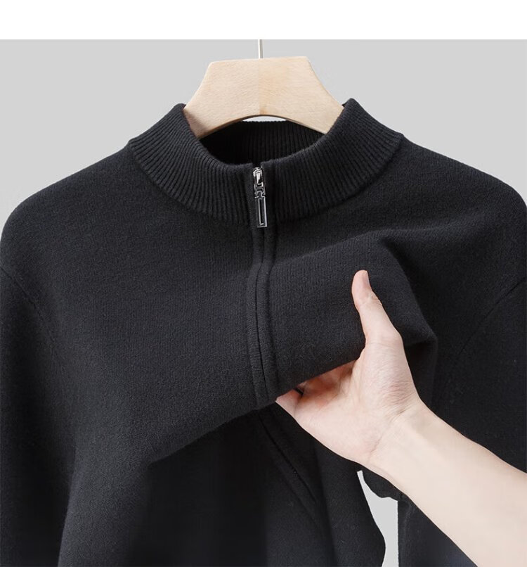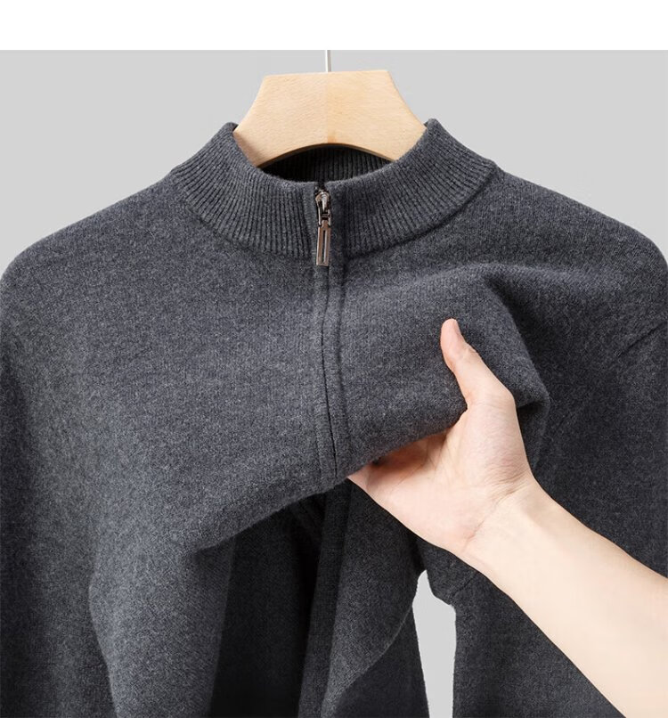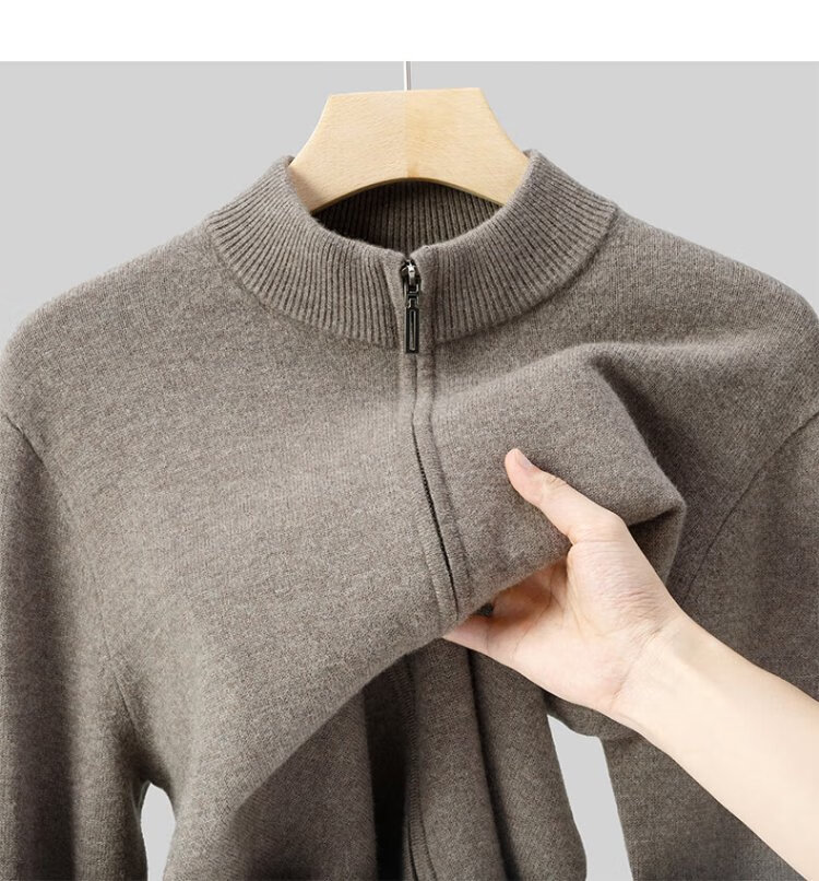 Hongdou thickened machine washable 100% pure wool velvet cardigan men's autumn and winter sweater base sweater zipper jacket
