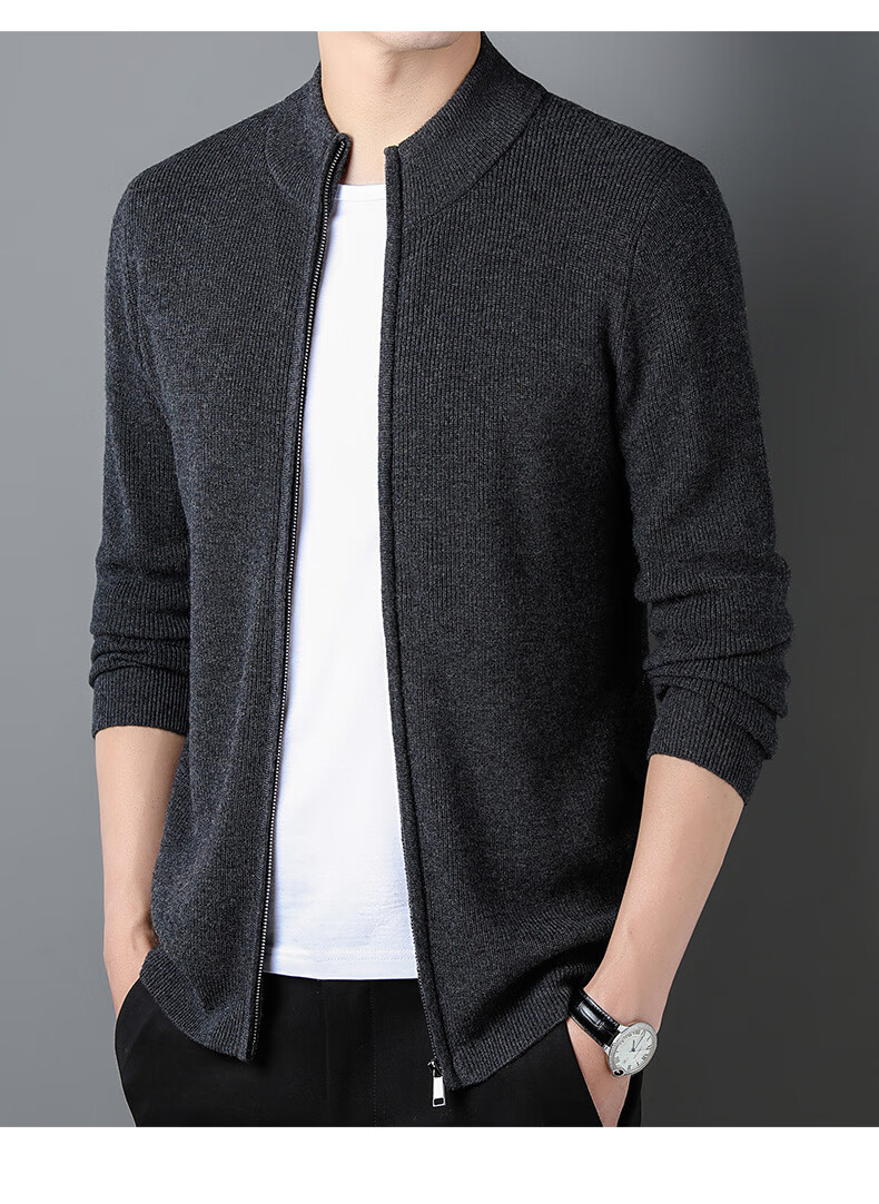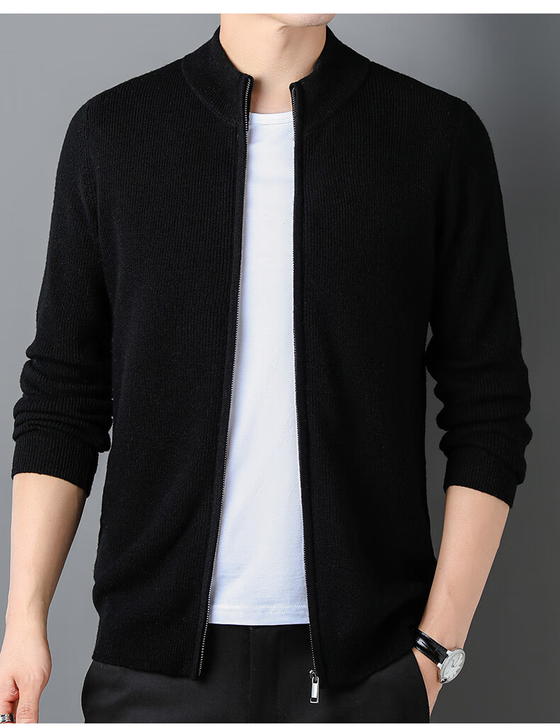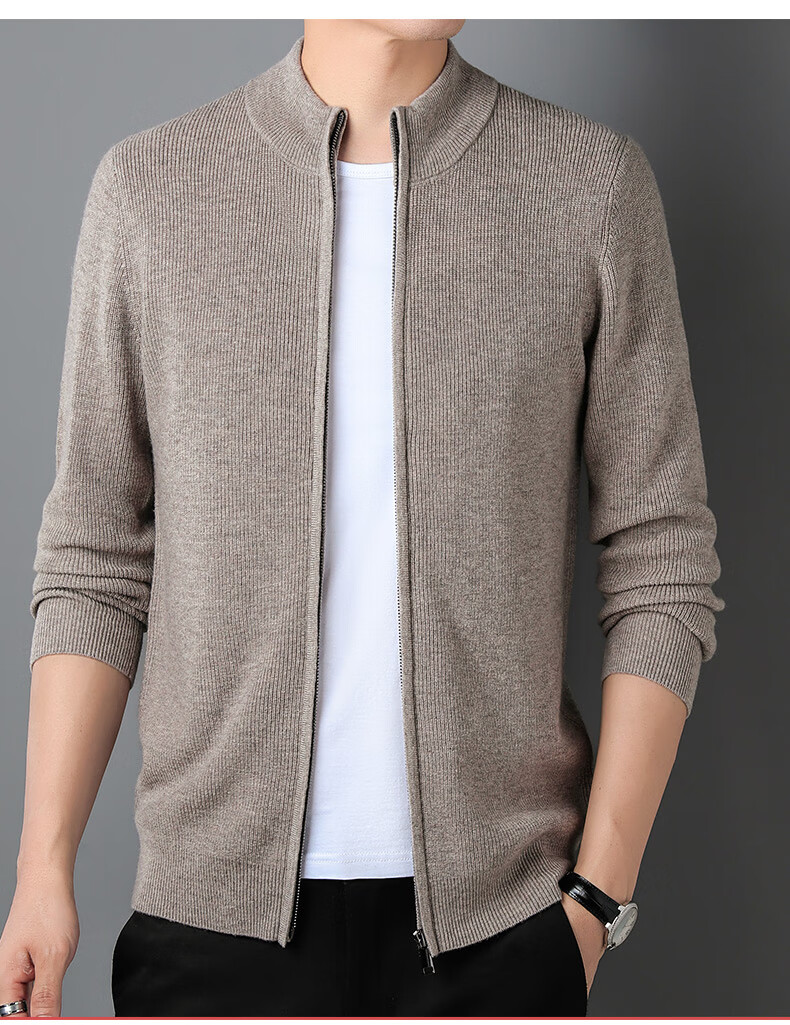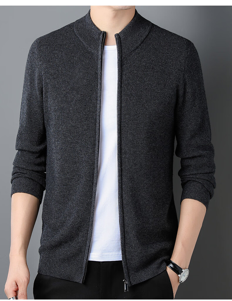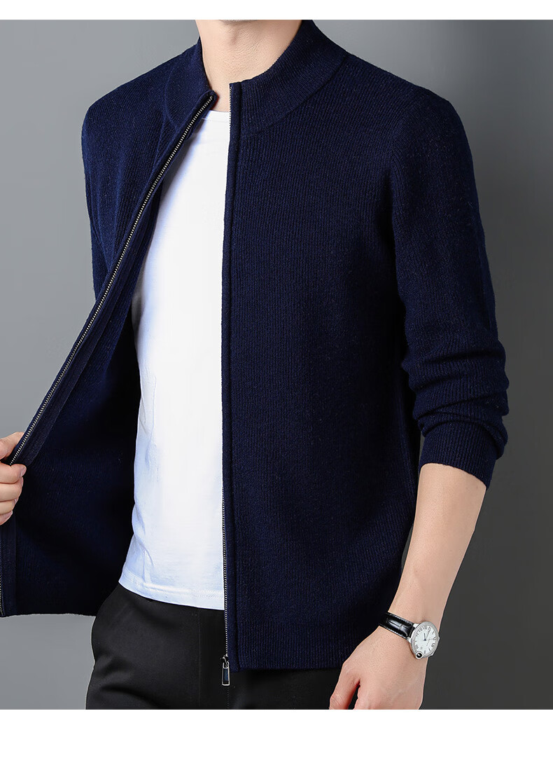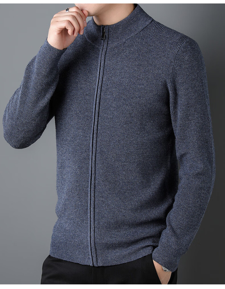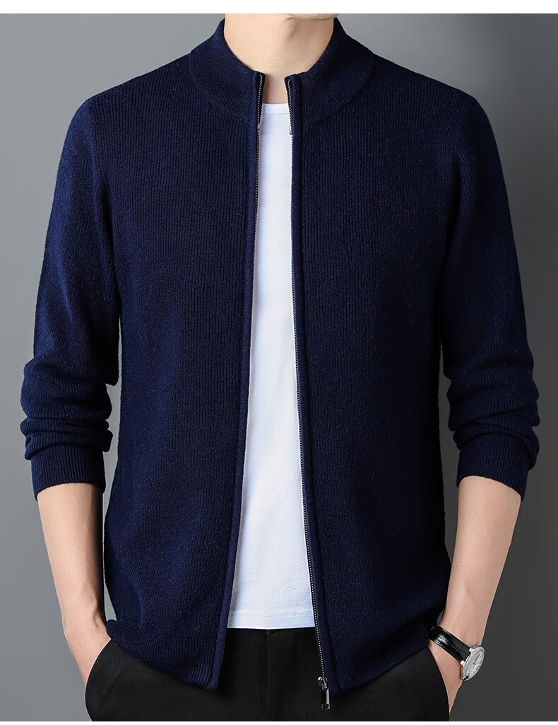 Hengyuanxiang wool sweater for men 100% pure wool cardigan jacket for men thickened zipper stand collar top wool sweater for men