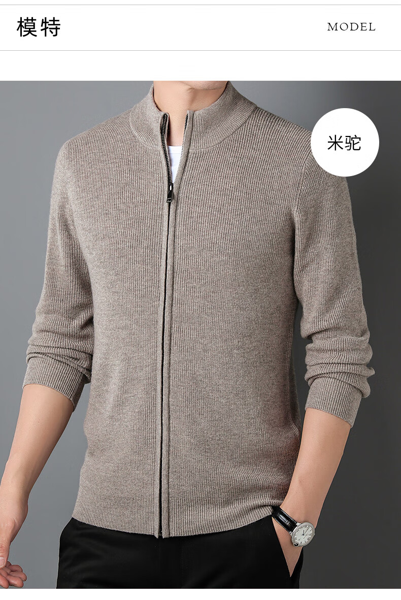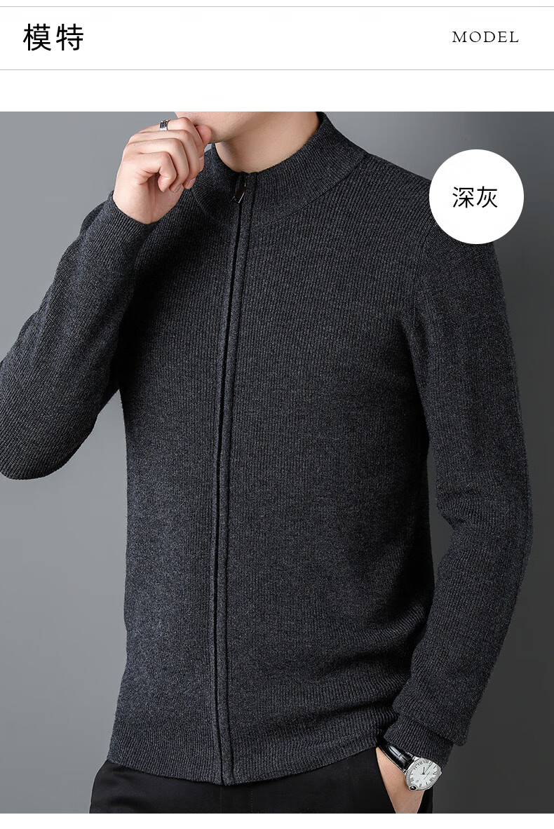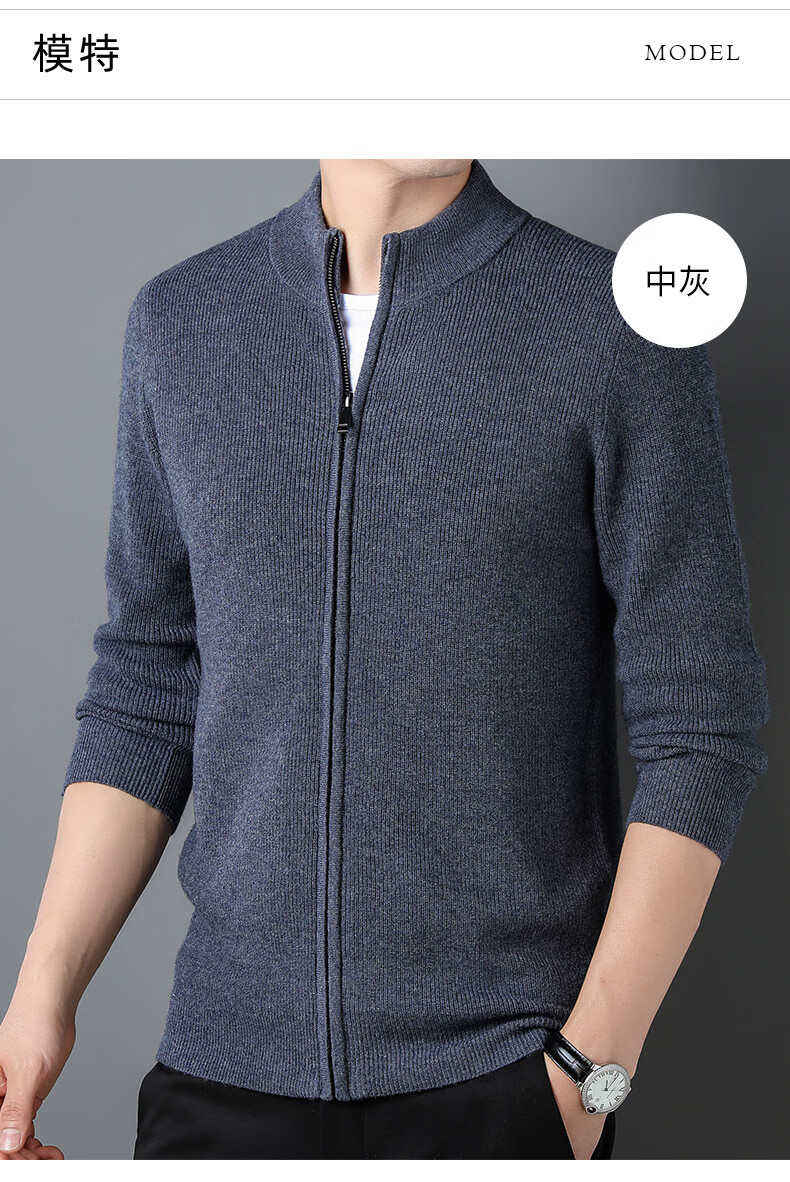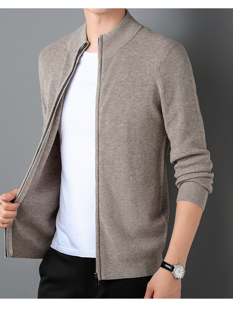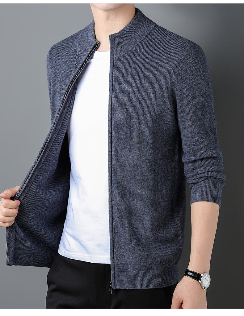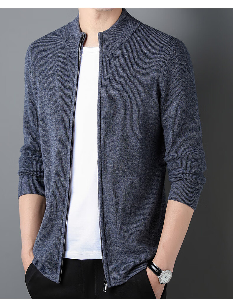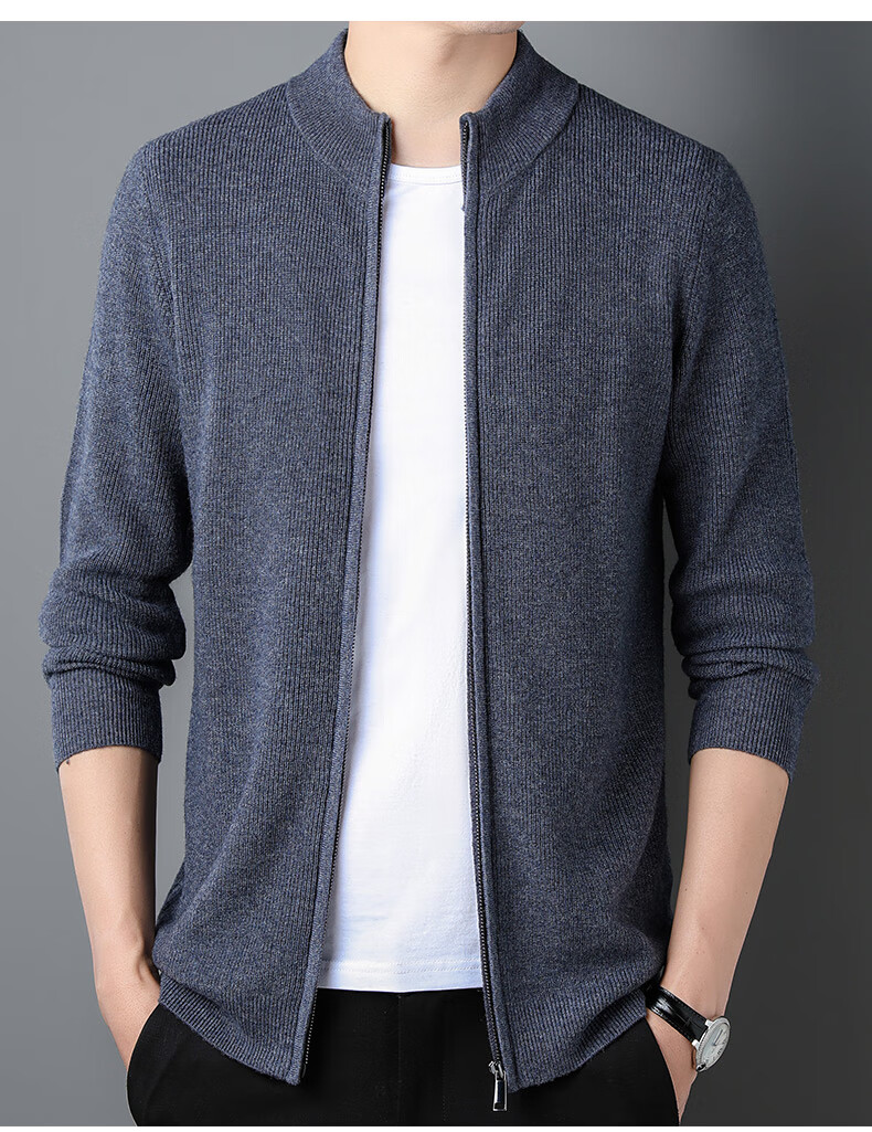 Hengyuanxiang wool sweater for men 100% pure wool cardigan jacket for men thickened zipper stand collar top wool sweater for men