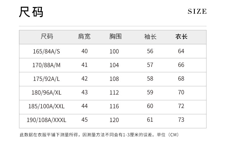 China (cm) 165 / 88-90 170 / 96-98 175 / 108-110 180 / 118-122 185 / 126-130