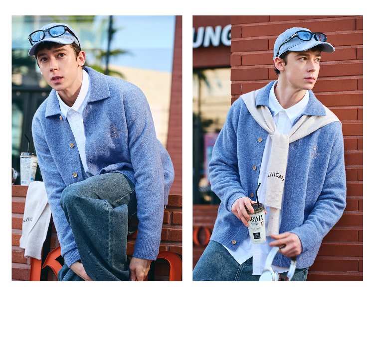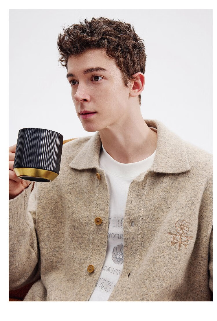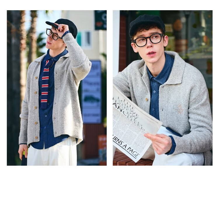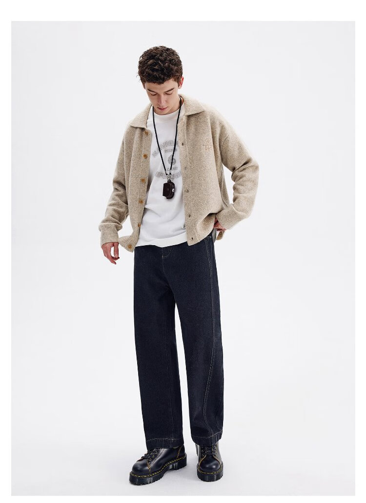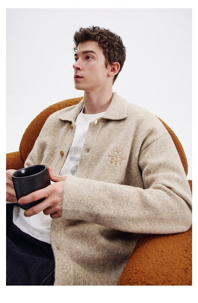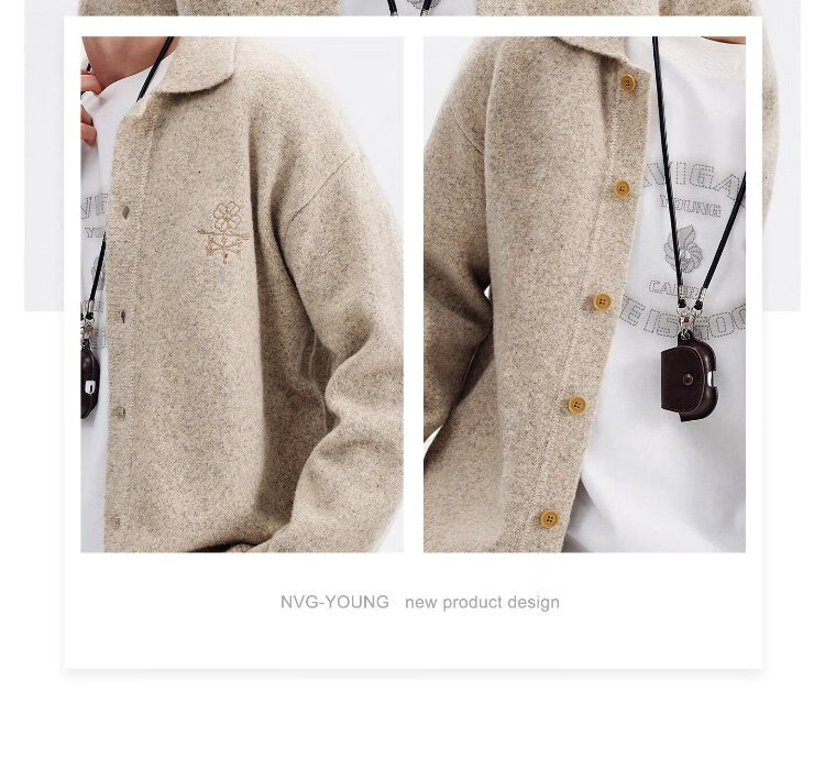 NVG YOUNG Italian dinghy men's and women's same style wool knitted cardigan autumn and winter lapel loose casual sweater men's jacket