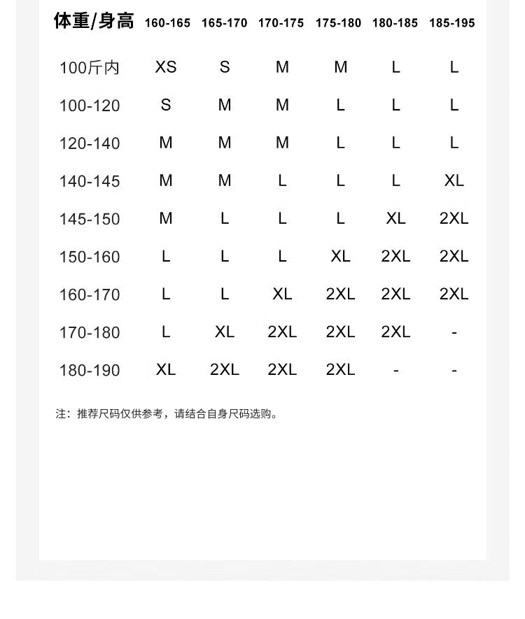 China (cm) 160-165/84-86 165-170 / 88-90 167-172 / 92-96 168-173 / 98-102 170-176 / 106-110