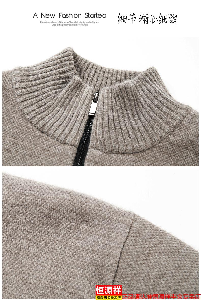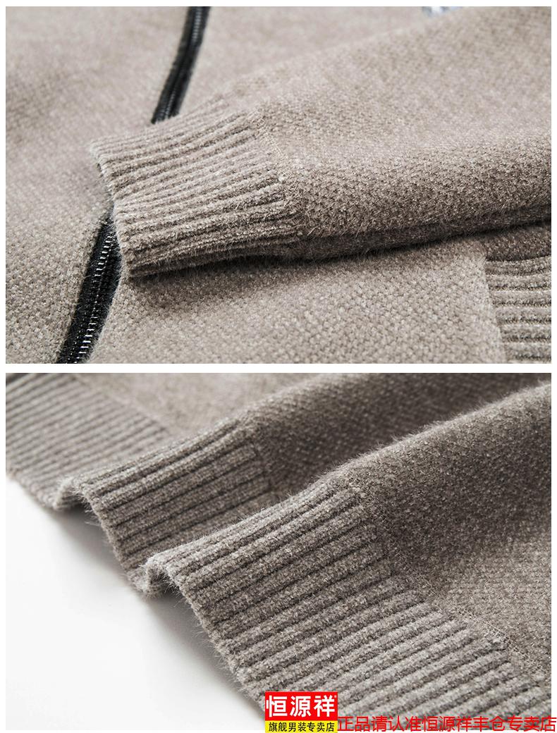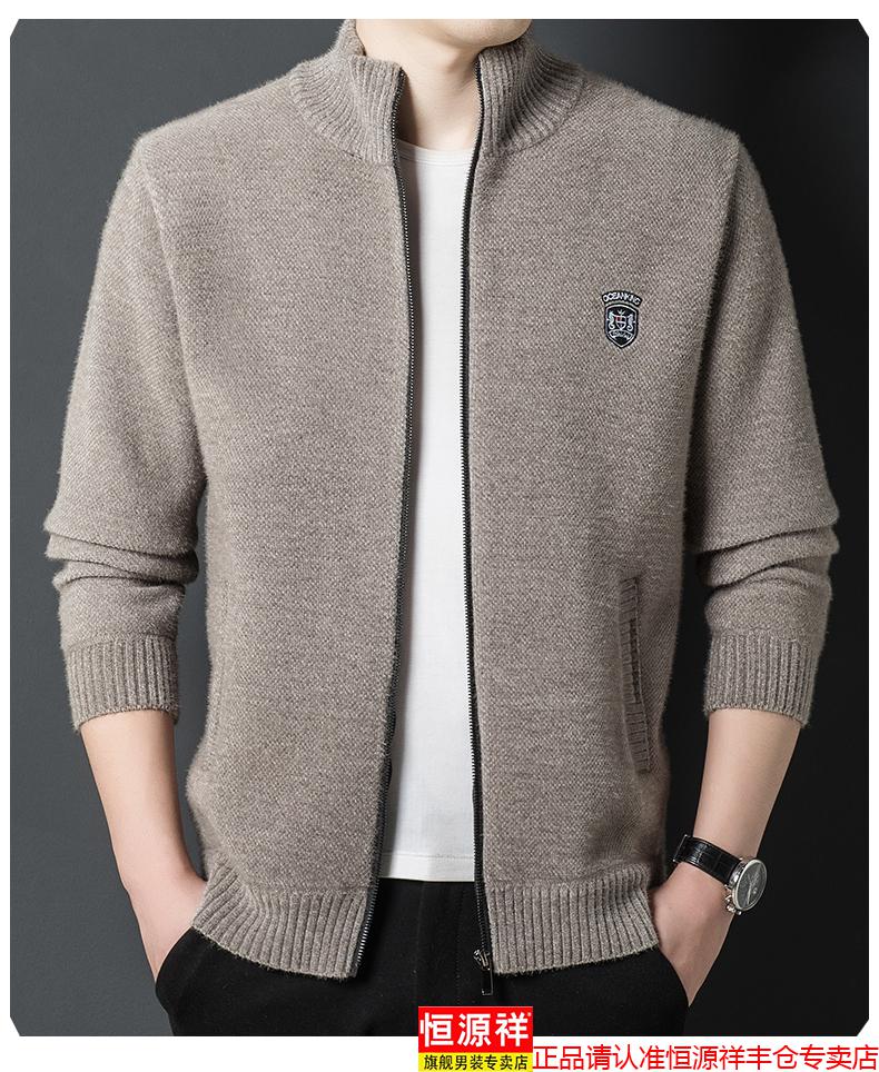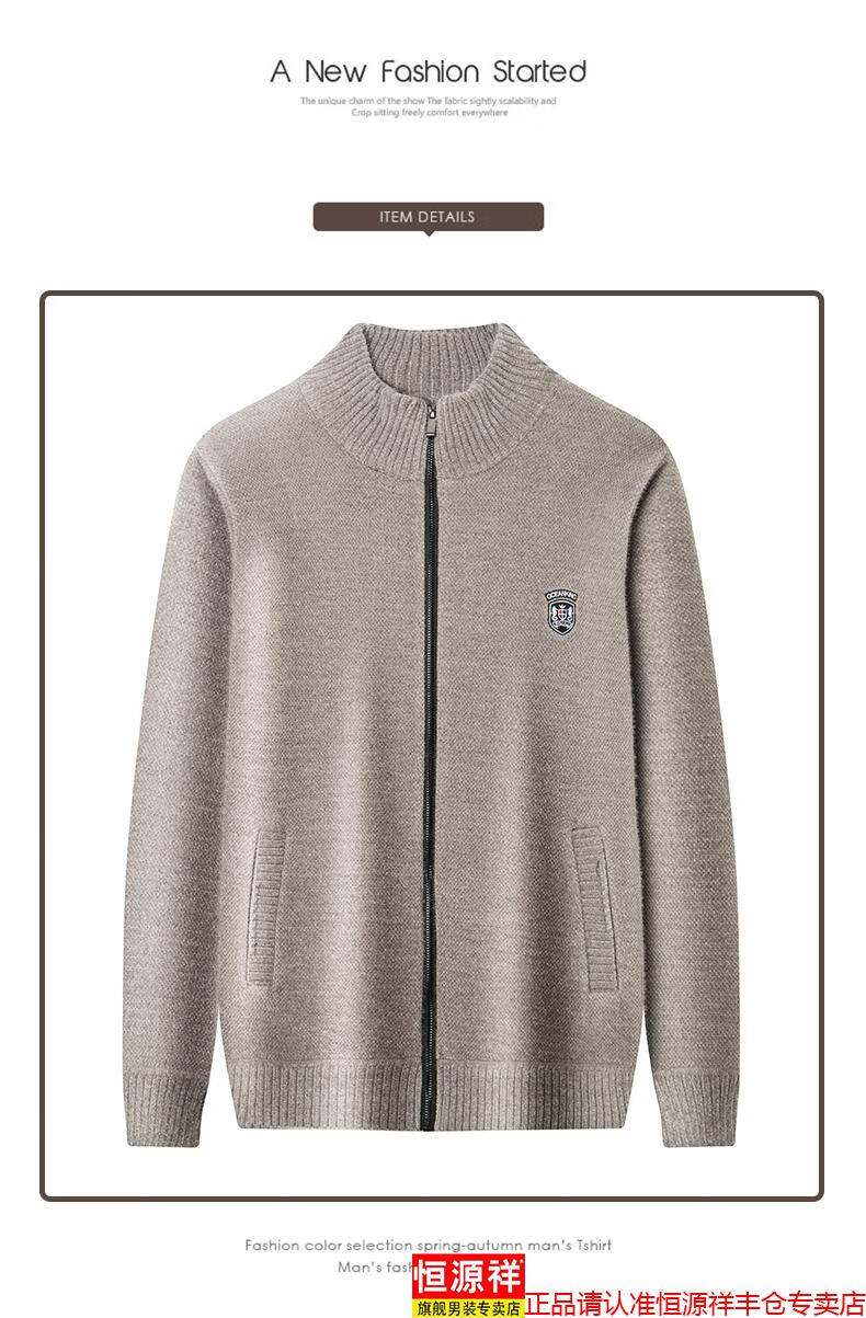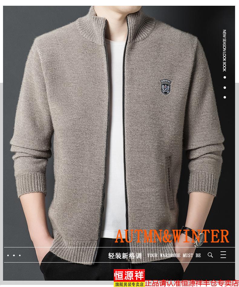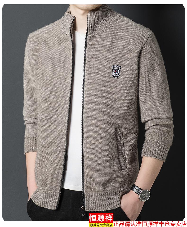Hengyuanxiang high-end knitted cardigan men's stand-up collar zipper jacket thickened wool cardigan 2025 new sweater versatile new product XBF6820 Khaki L 175/88A