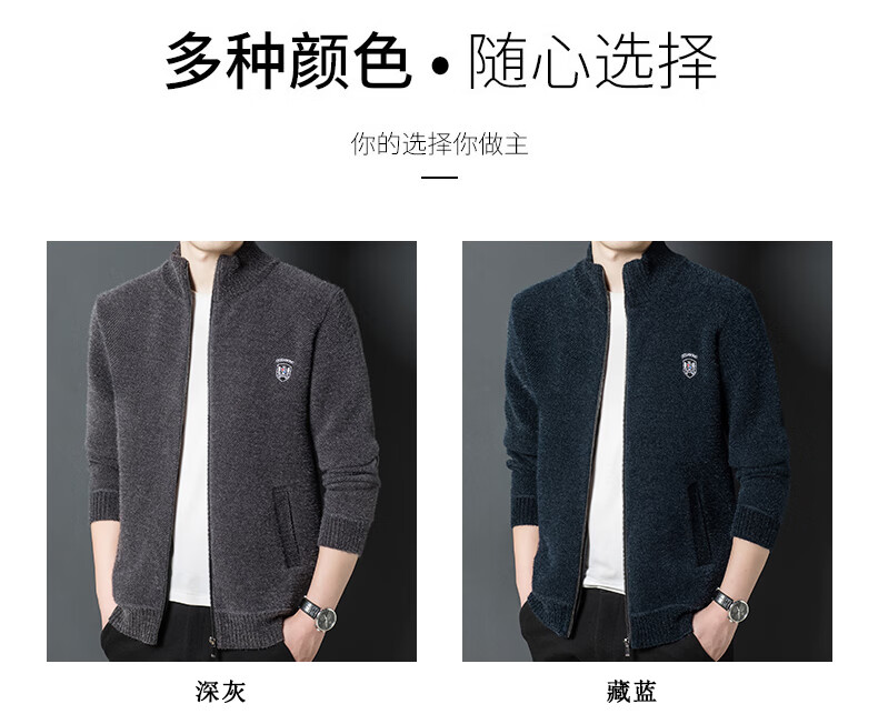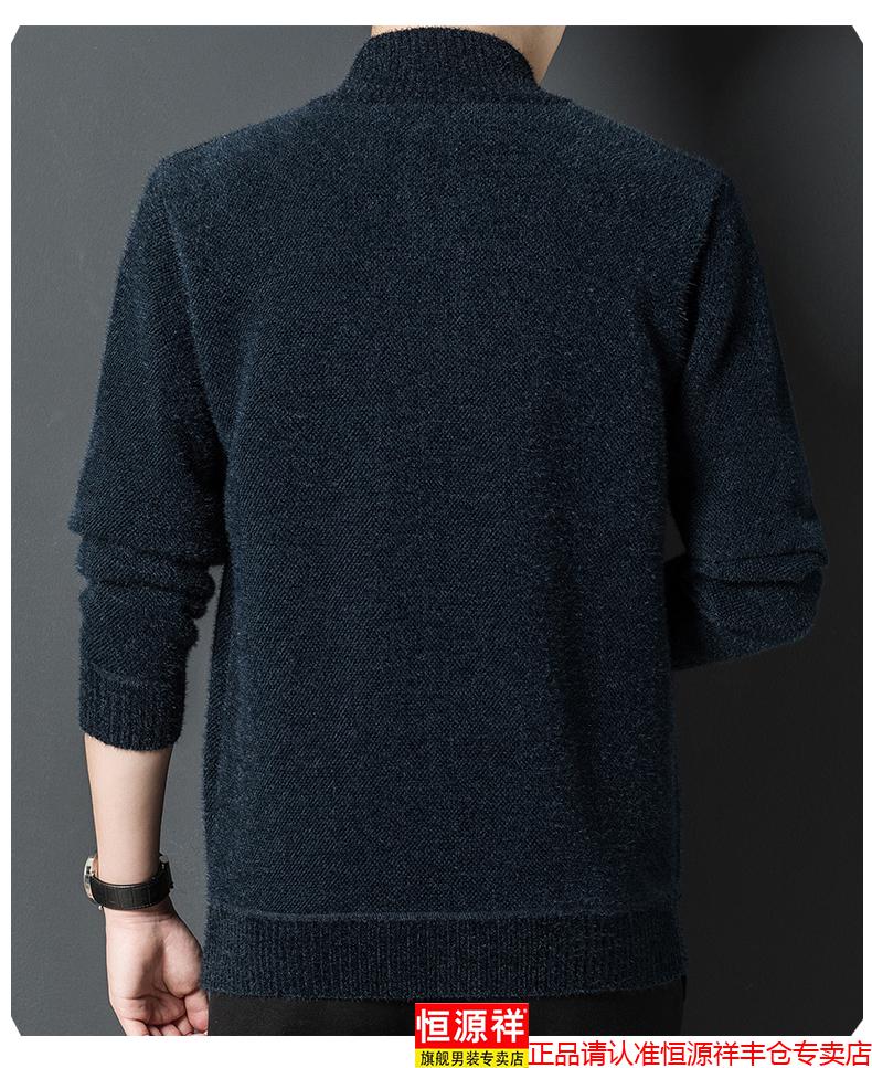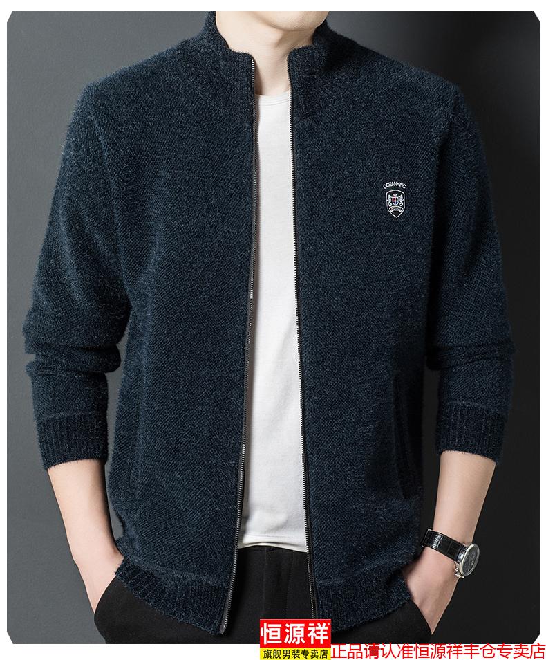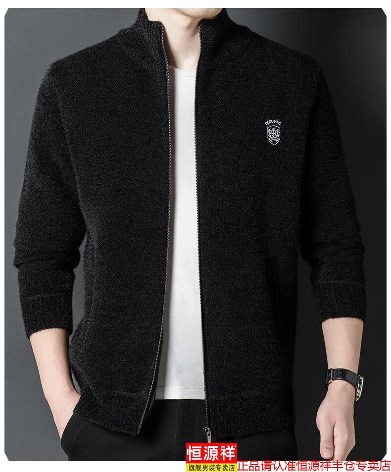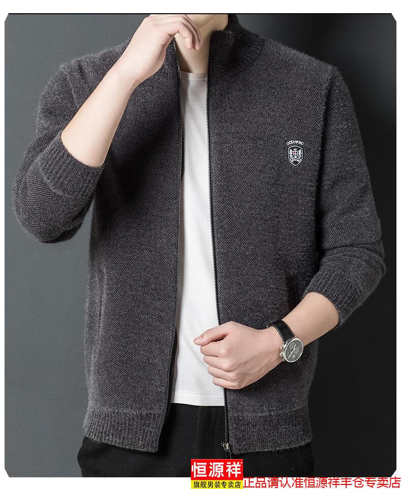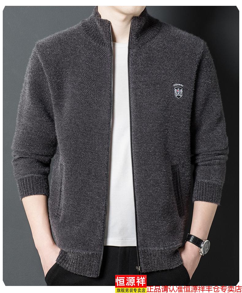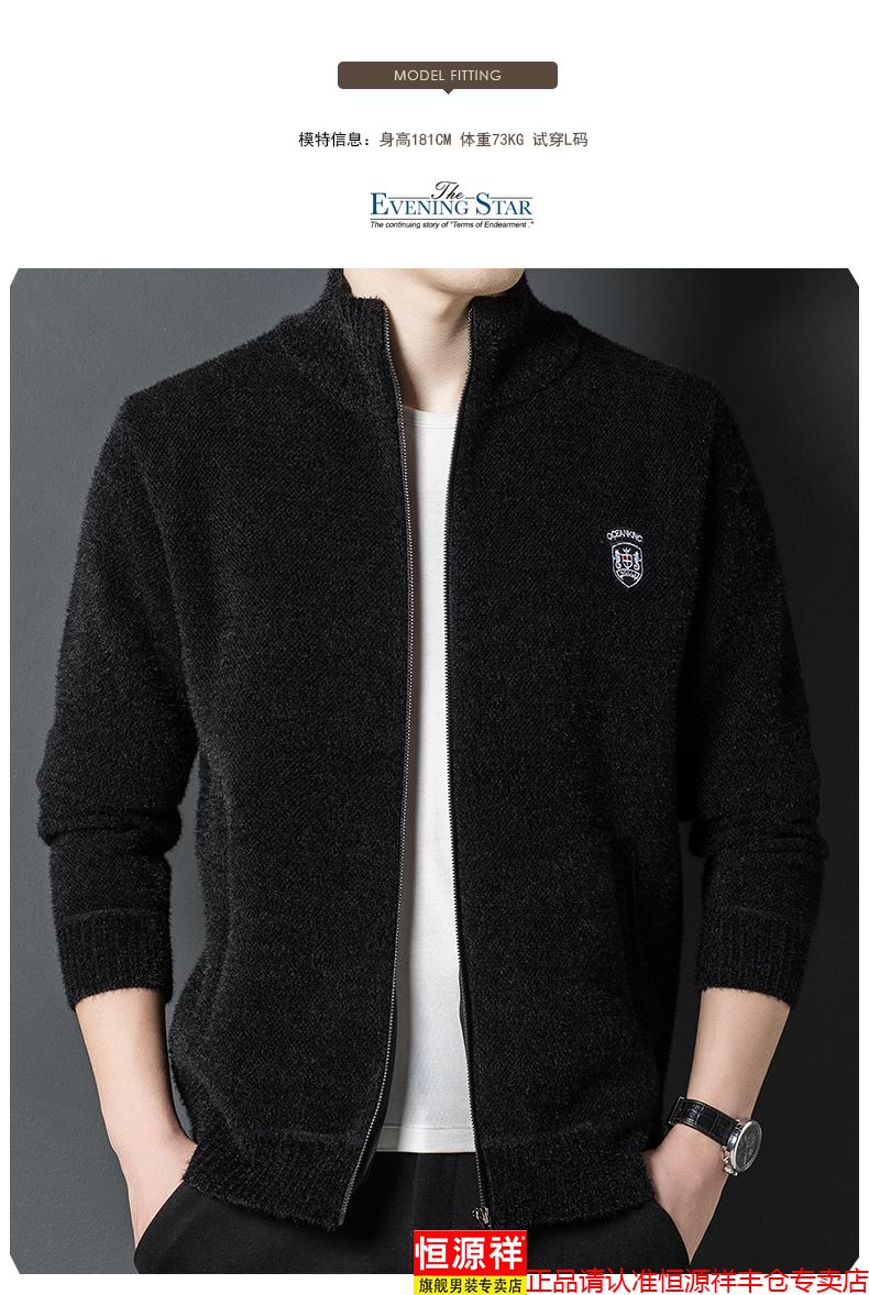 Hengyuanxiang high-end knitted cardigan men's stand-up collar zipper jacket thickened wool cardigan 2025 new sweater versatile new product XBF6820 Khaki L 175/88A