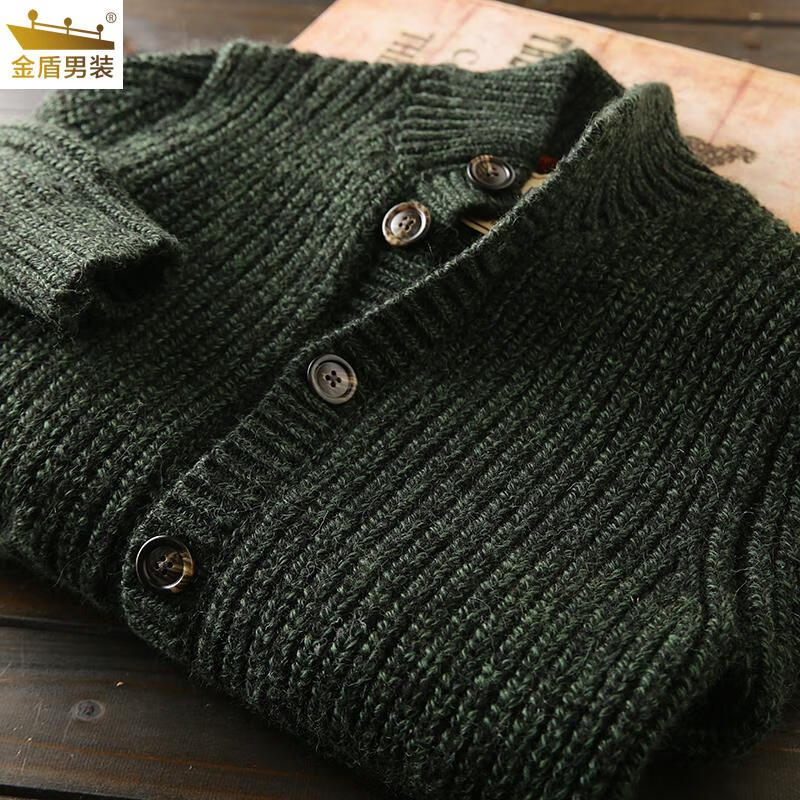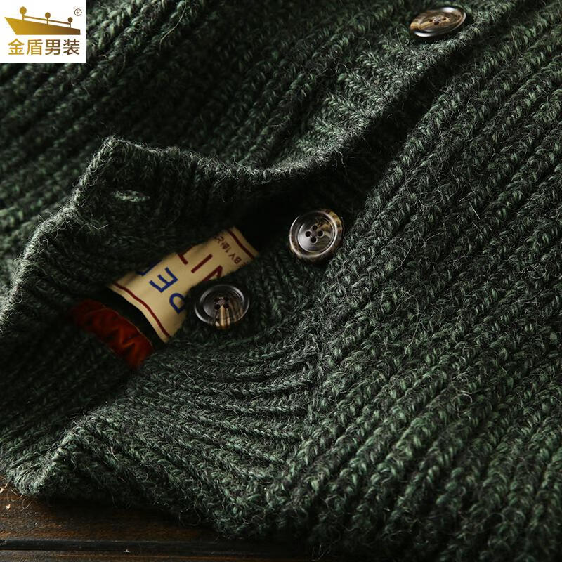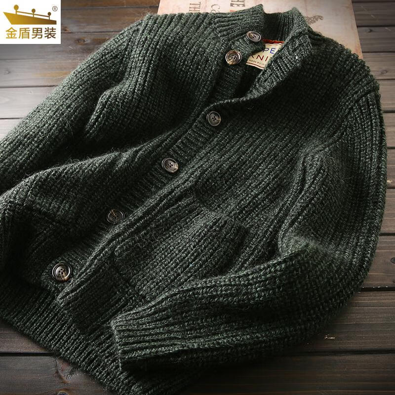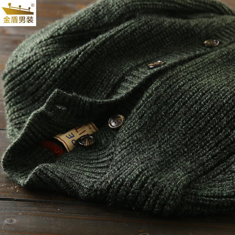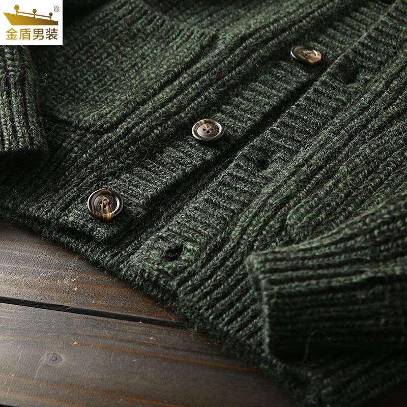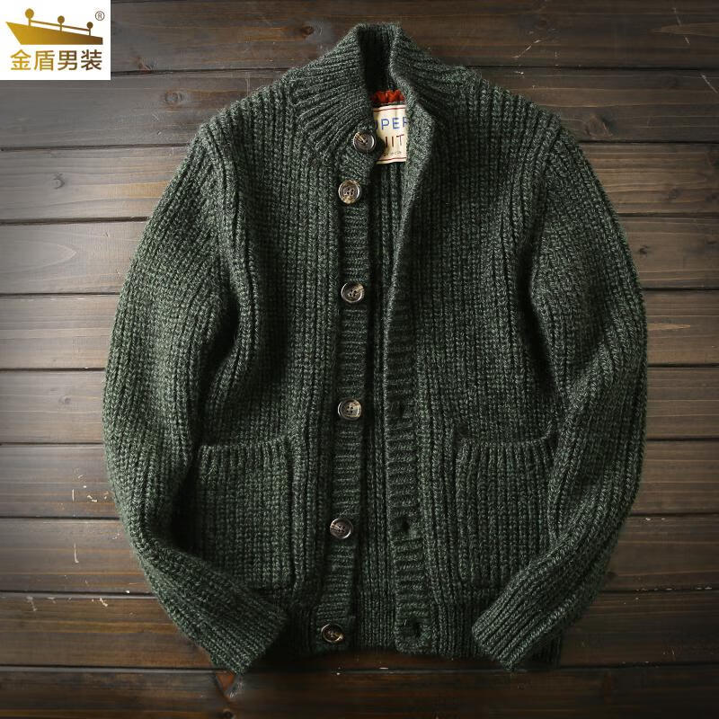 Golden Shield Wool Cardigan Italian Station Men's Autumn and Winter Thickened Knitted Sweater Jacket Green M (130-145Jin Jin equals 0.5kg)