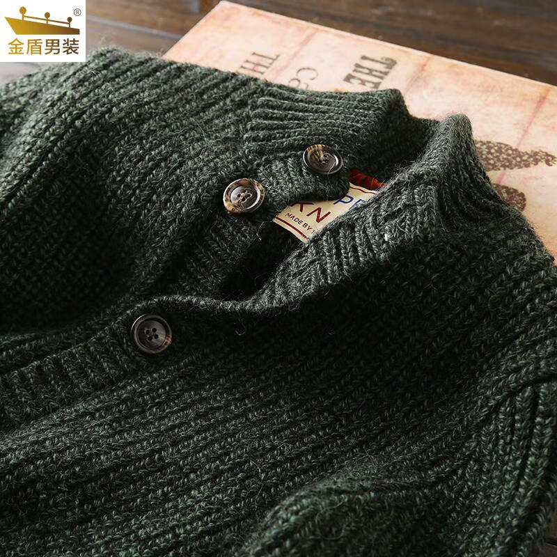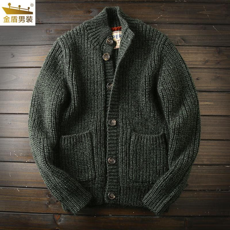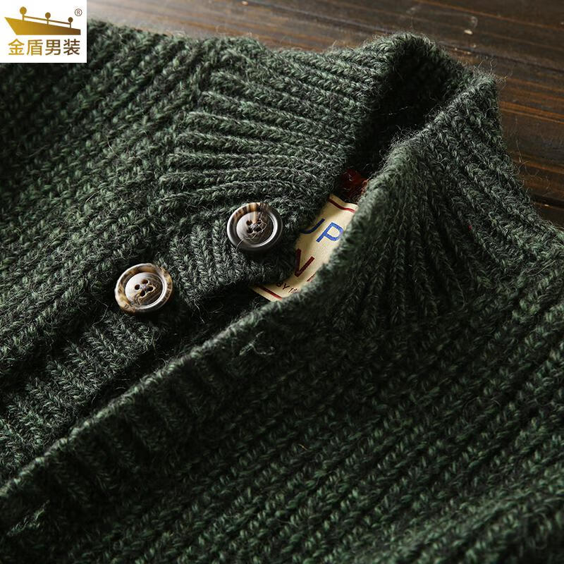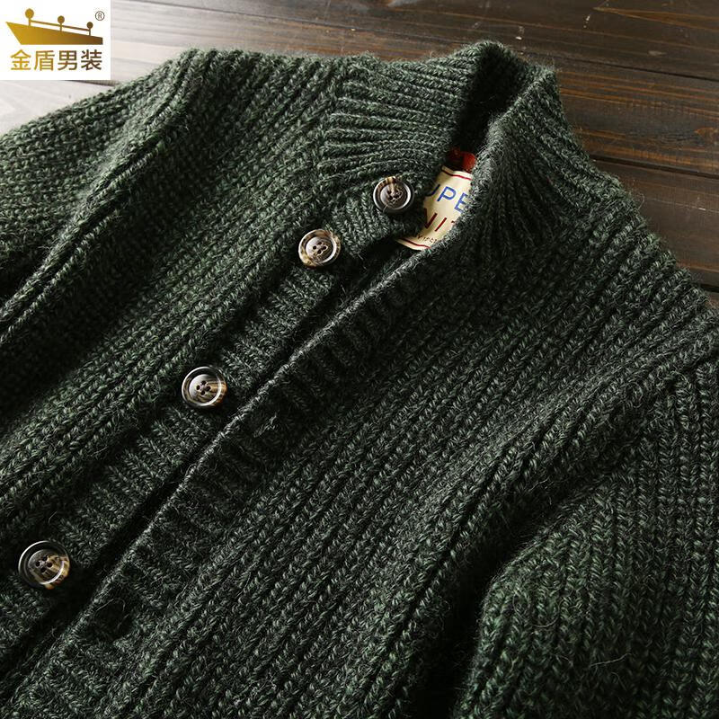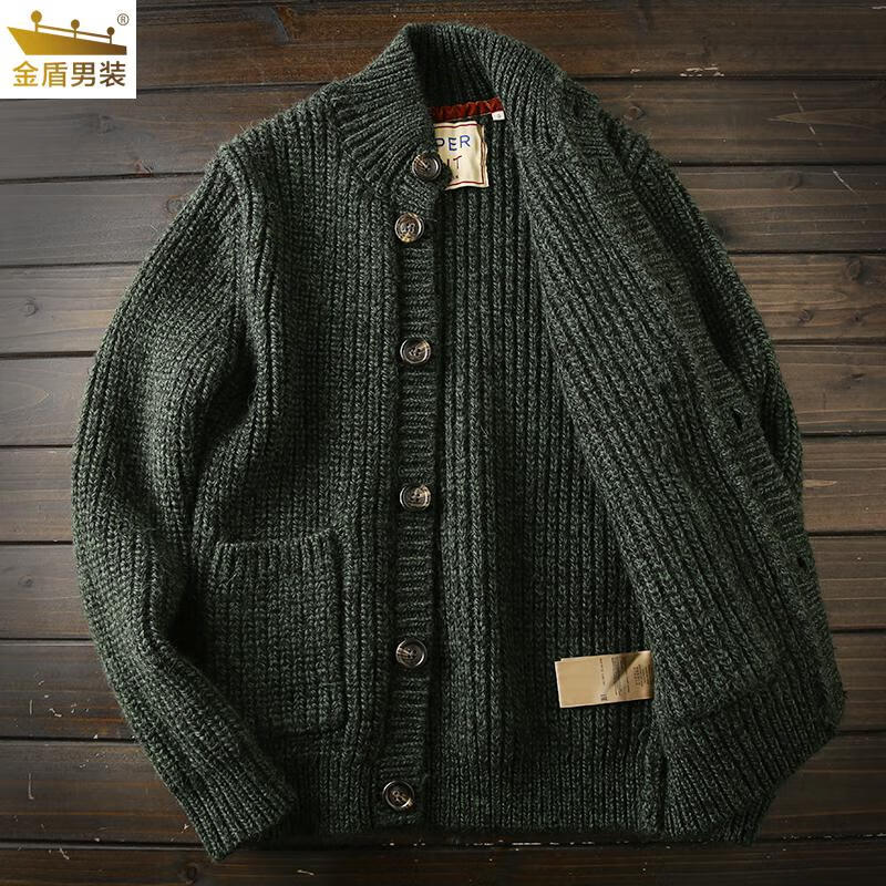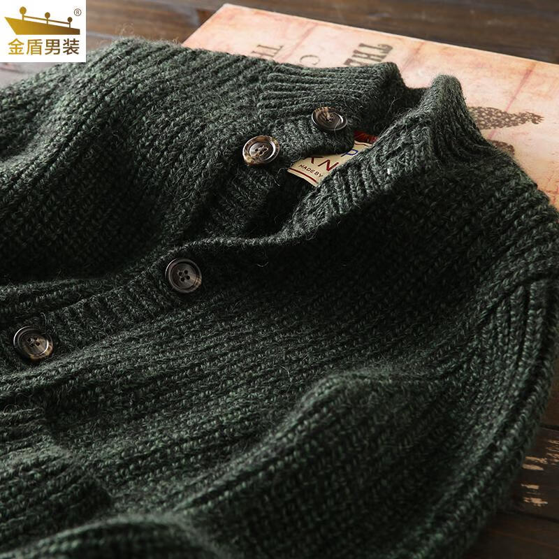 Golden Shield Wool Cardigan Italian Station Men's Autumn and Winter Thickened Knitted Sweater Jacket Green M (130-145Jin Jin equals 0.5kg)