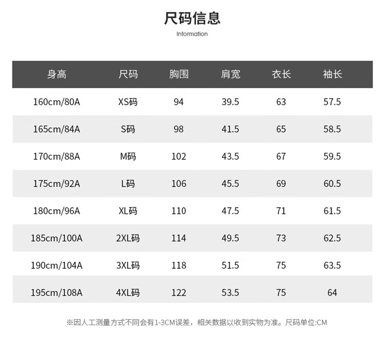 China (cm) 160-165/84-86 165-170 / 88-90 167-172 / 92-96 168-173 / 98-102 170-176 / 106-110