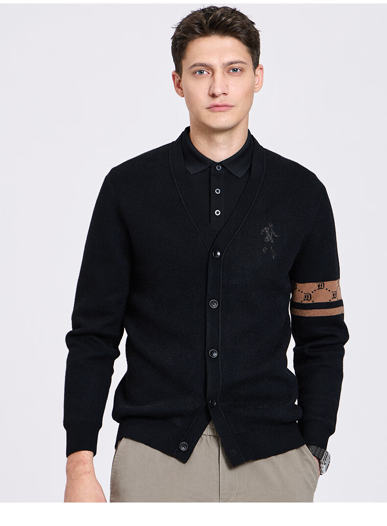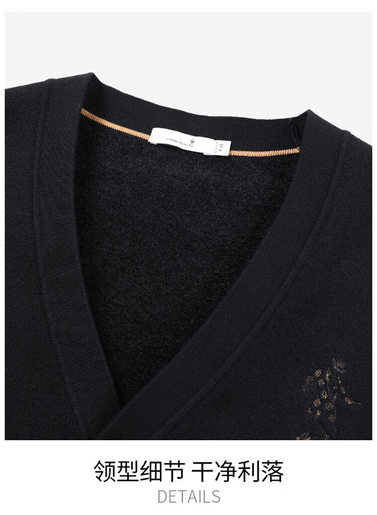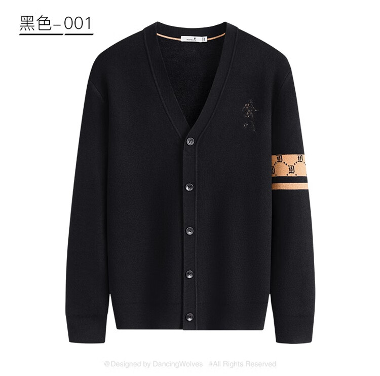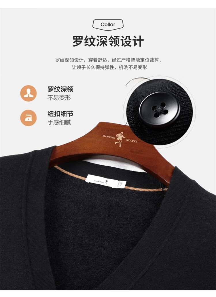 Dances with Wolves Velvet and Thickened Cardigan Wool Jacket Men's 2025 Autumn and Winter New Warm V-neck Sweater Jacket 2042 Black 001 L (175)