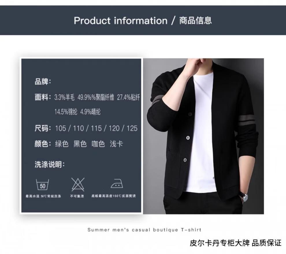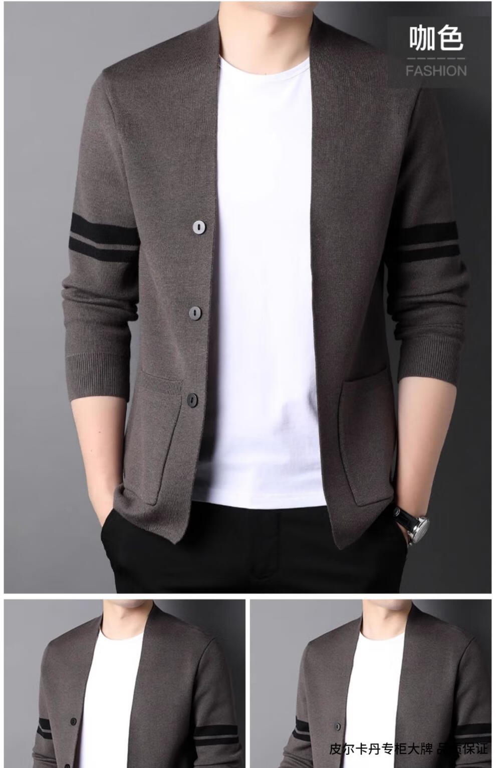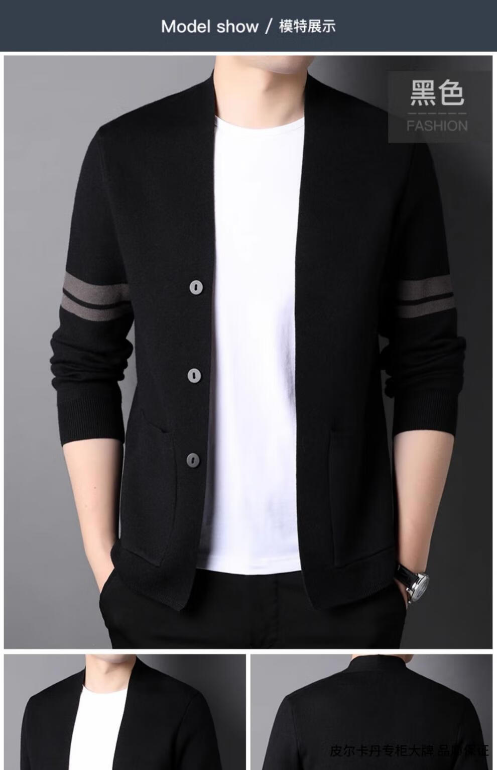 Pierre Cardin Early Autumn Wool Knitted Cardigan Men's Autumn 2024 New Trendy Youth Outerwear Sweater Men's Casual Jacket Trend Black *Best Quality 2XL
