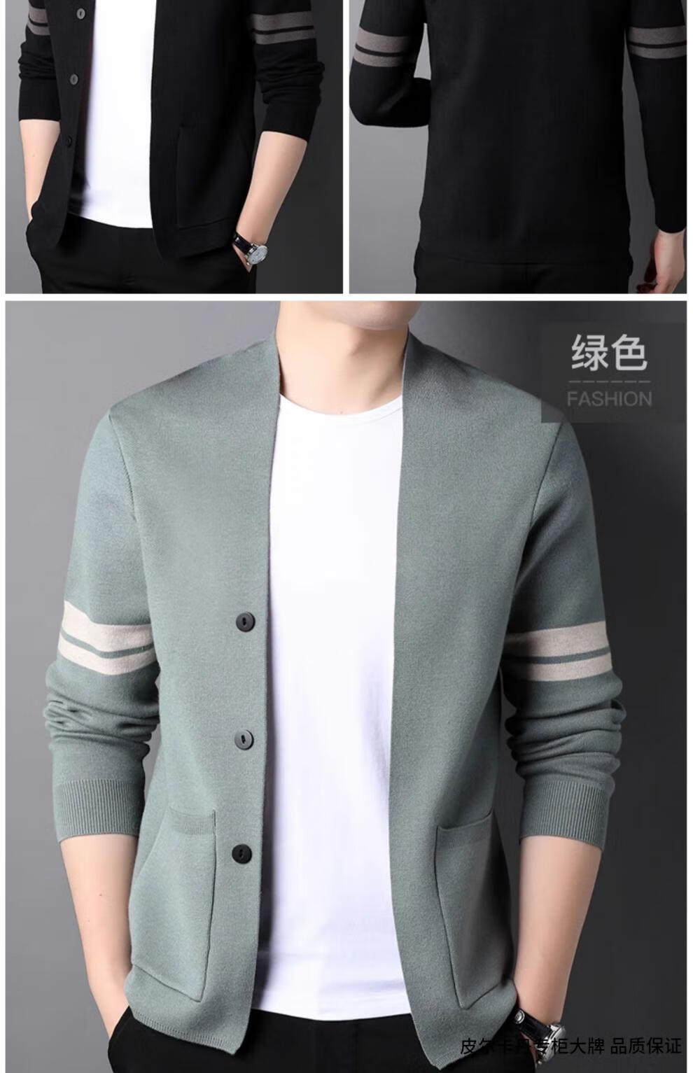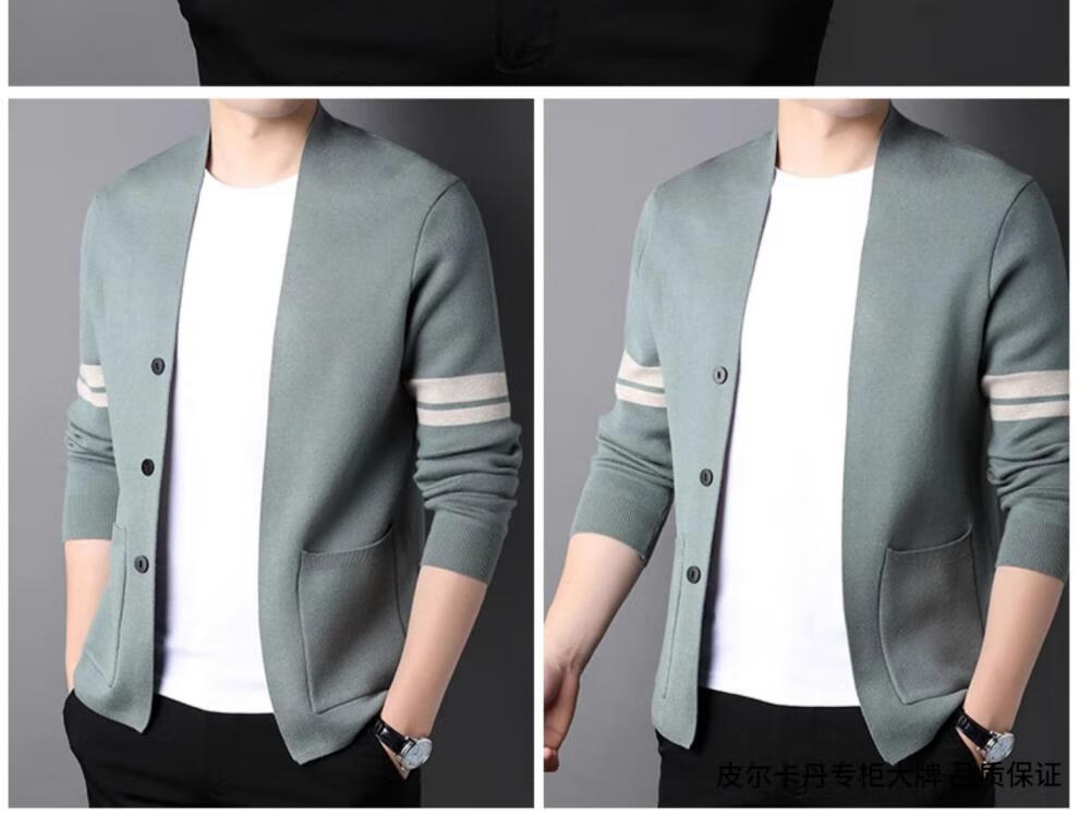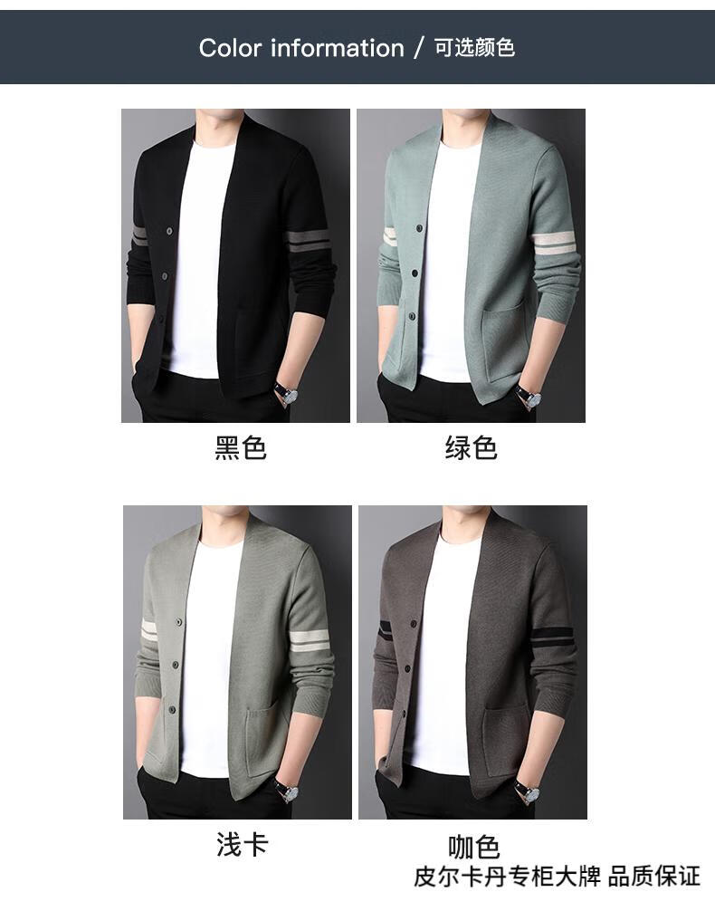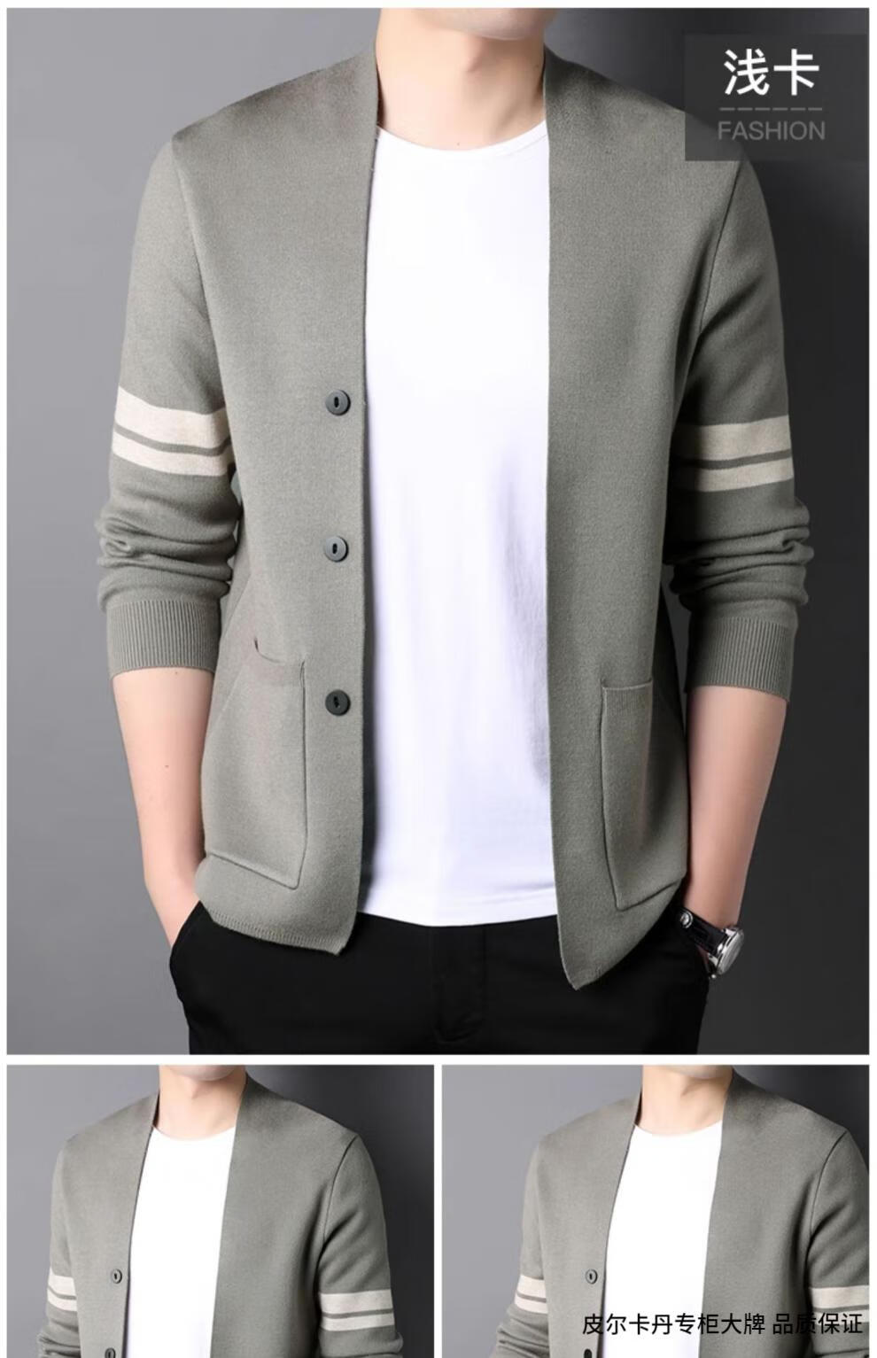 Pierre Cardin Early Autumn Wool Knitted Cardigan Men's Autumn 2024 New Trendy Youth Outerwear Sweater Men's Casual Jacket Trend Black *Best Quality 2XL