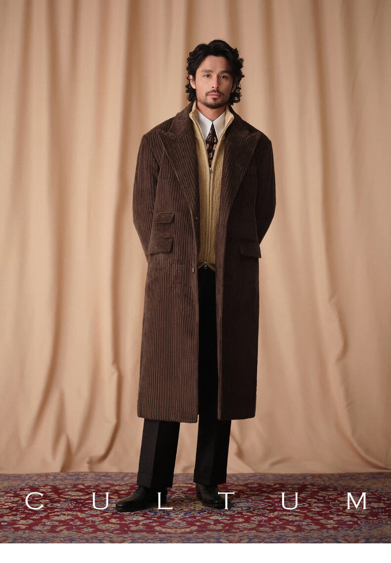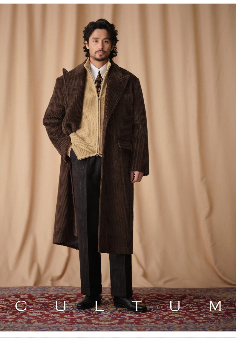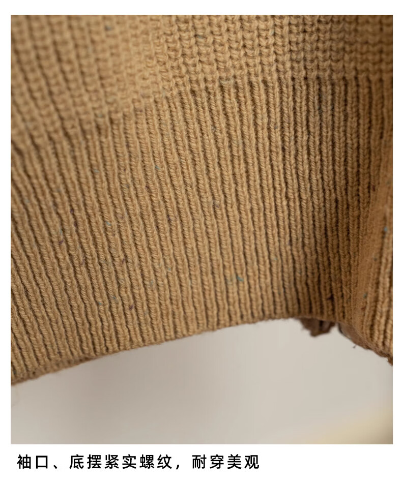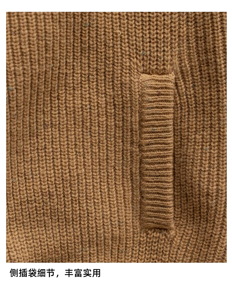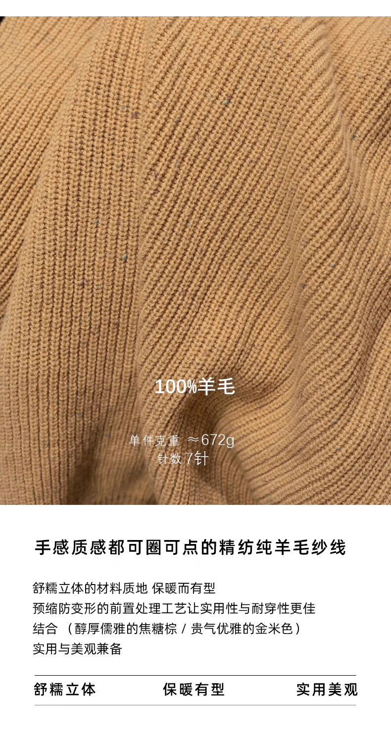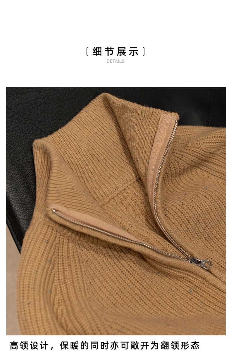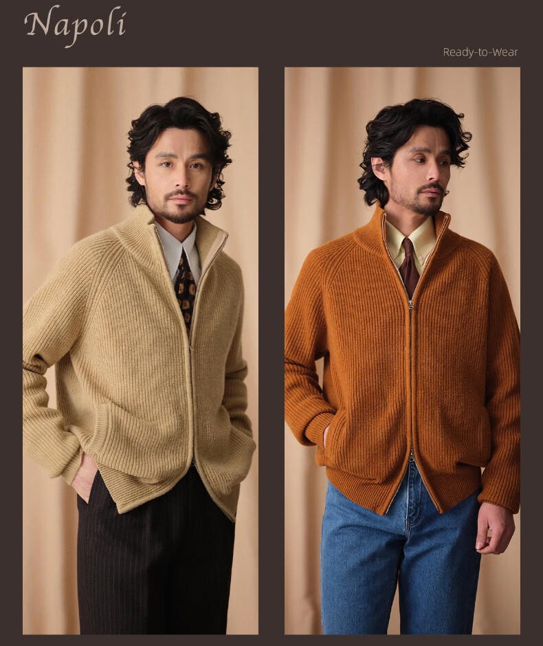 CULTUM winter thickened 100% wool cardigan turtleneck sweater men's top double zipper coat sweater gold beige L