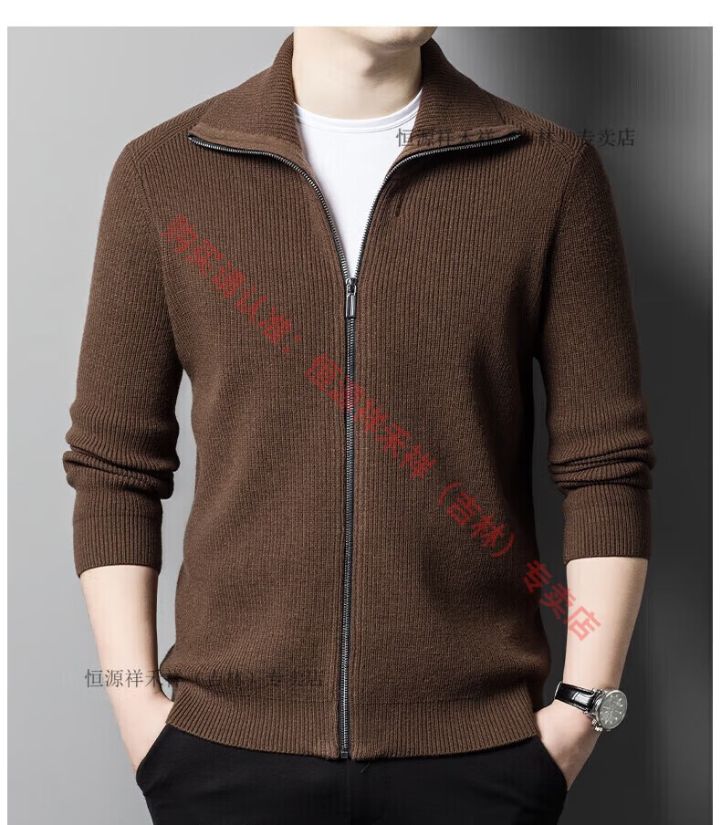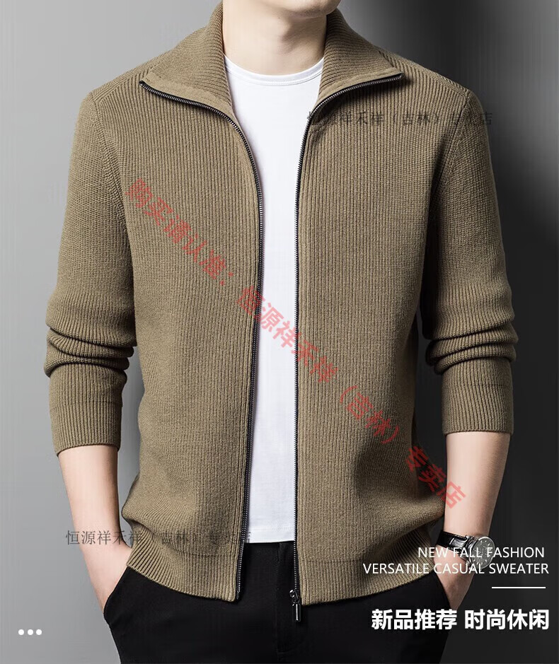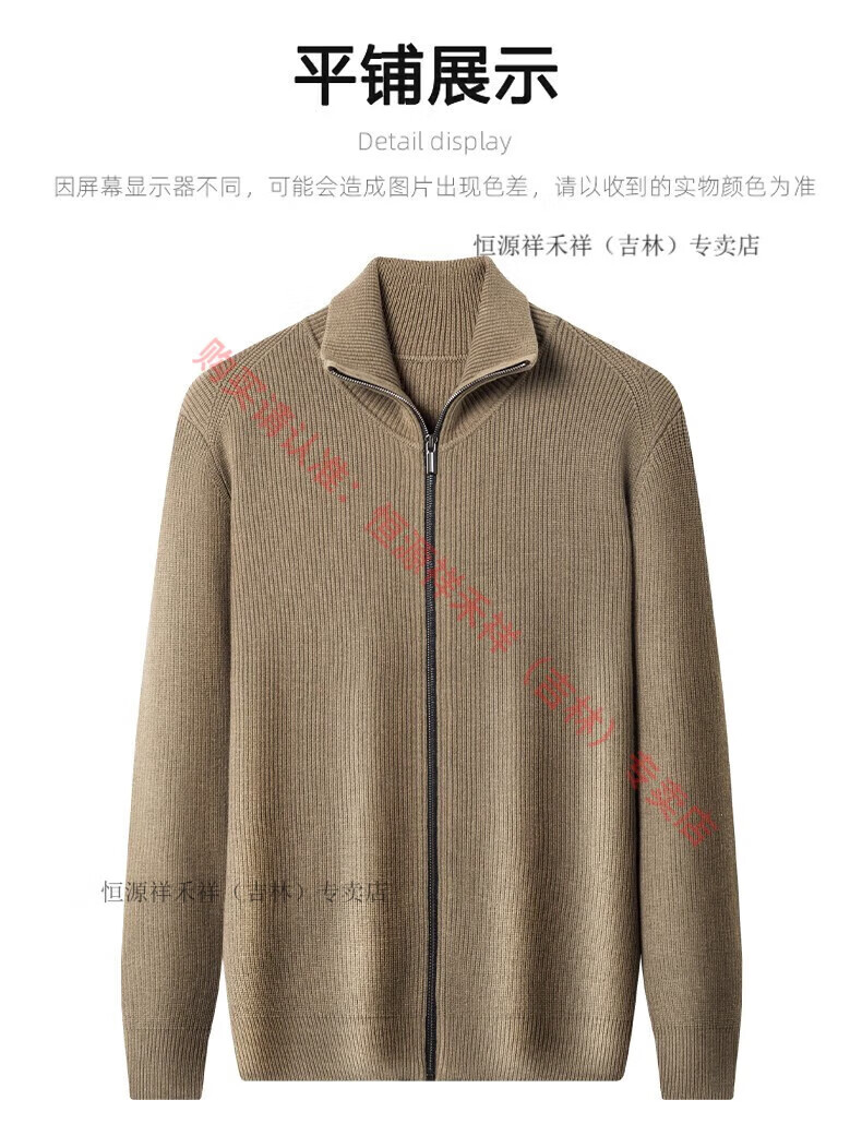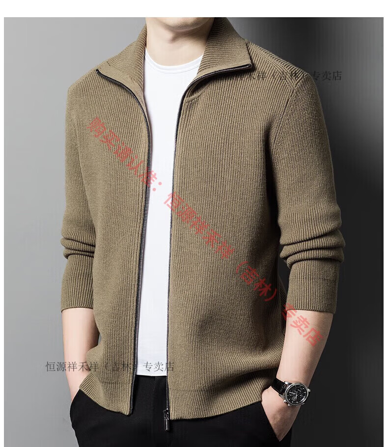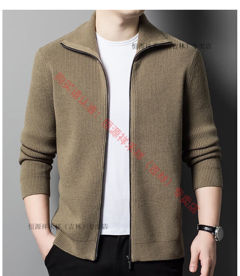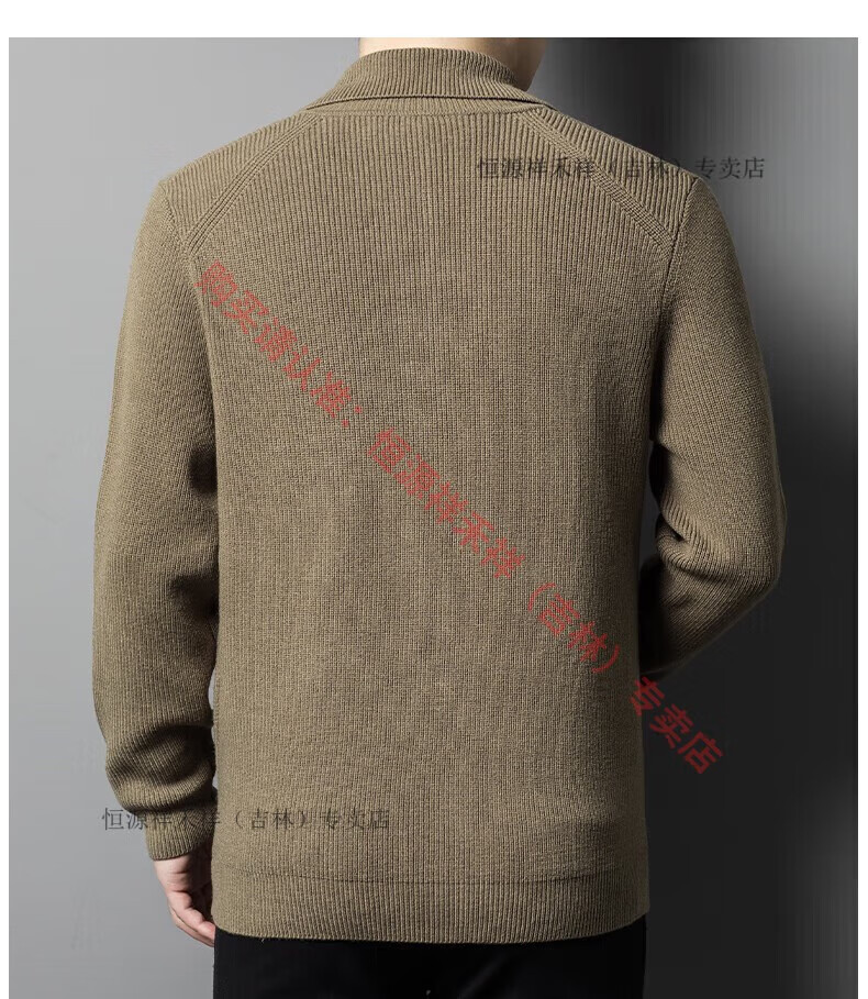 Hengyuanxiang Ordo pure wool cardigan men's autumn middle-aged plus thick lapel fashion sweater sweater zipper jacket tea green XL 175 size 140-160 Jin Jin equals 0.5 kg